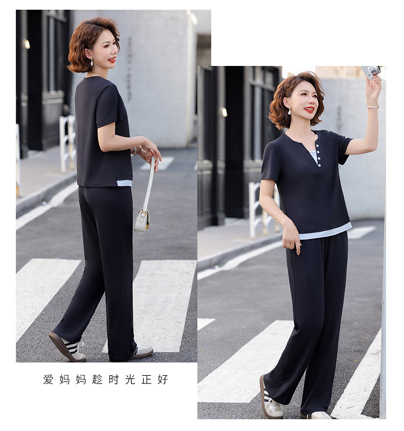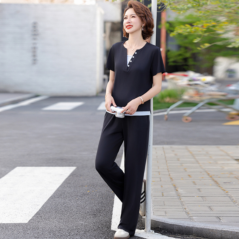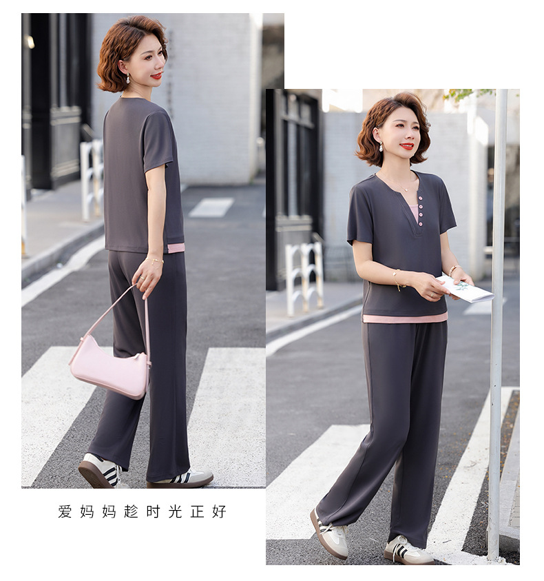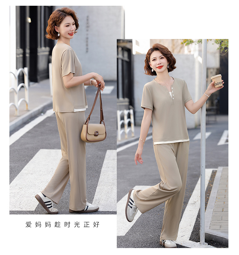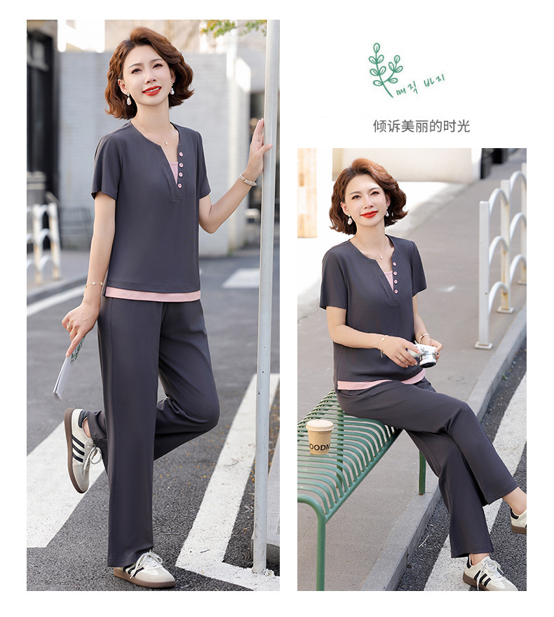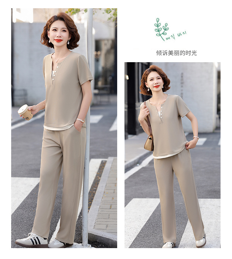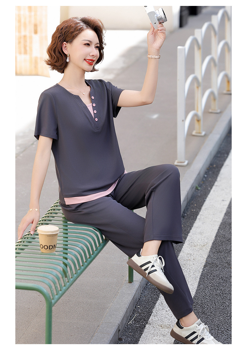 Модный повседневный костюм для женщин среднего и пожилого возраста, облегающий комплект из двух предметов, летняя одежда для женщин среднего возраста.