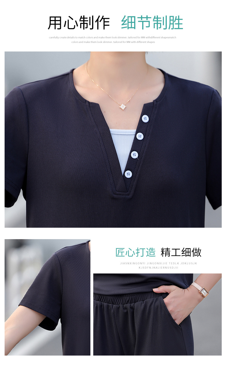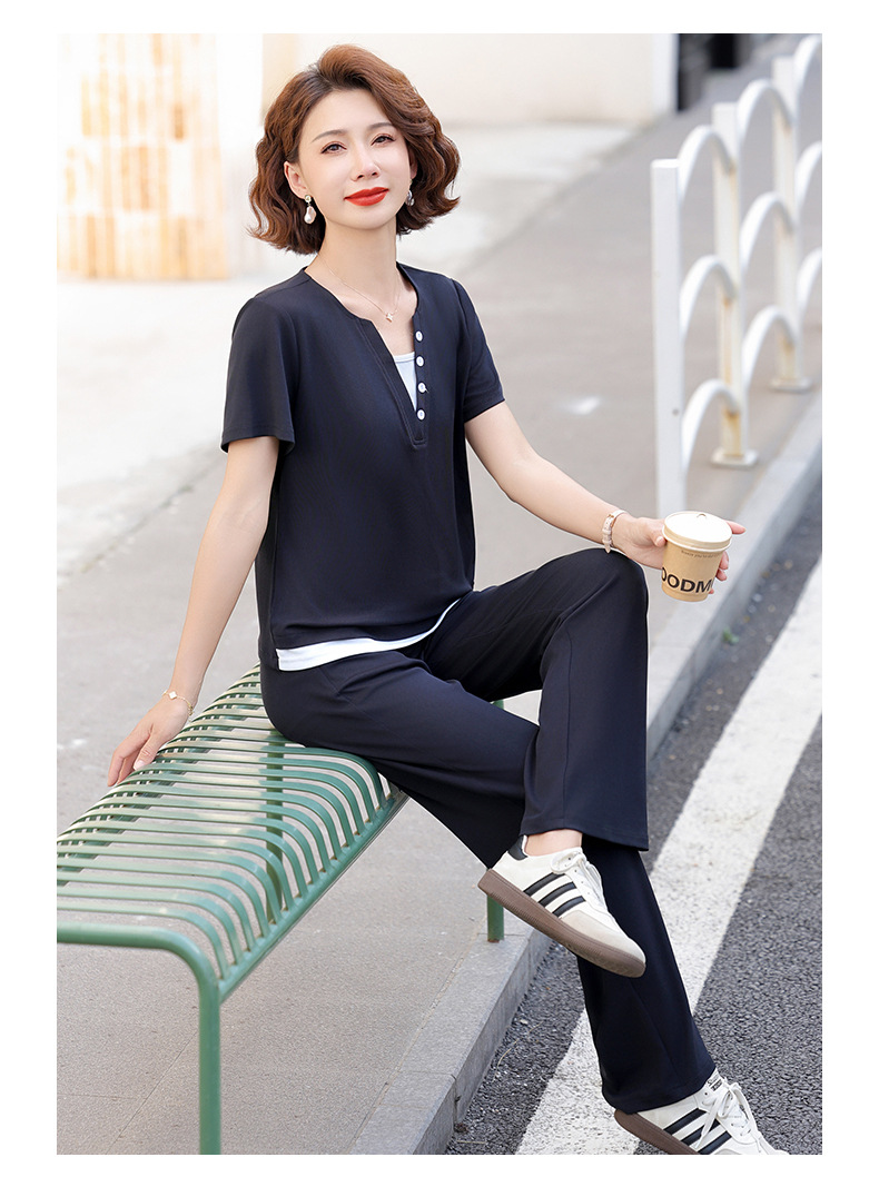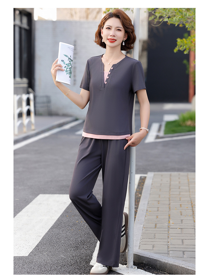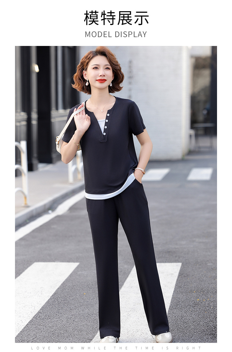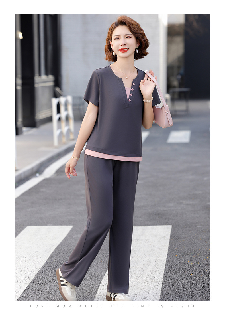 Модный повседневный костюм для женщин среднего и пожилого возраста, облегающий комплект из двух предметов, летняя одежда для женщин среднего возраста.