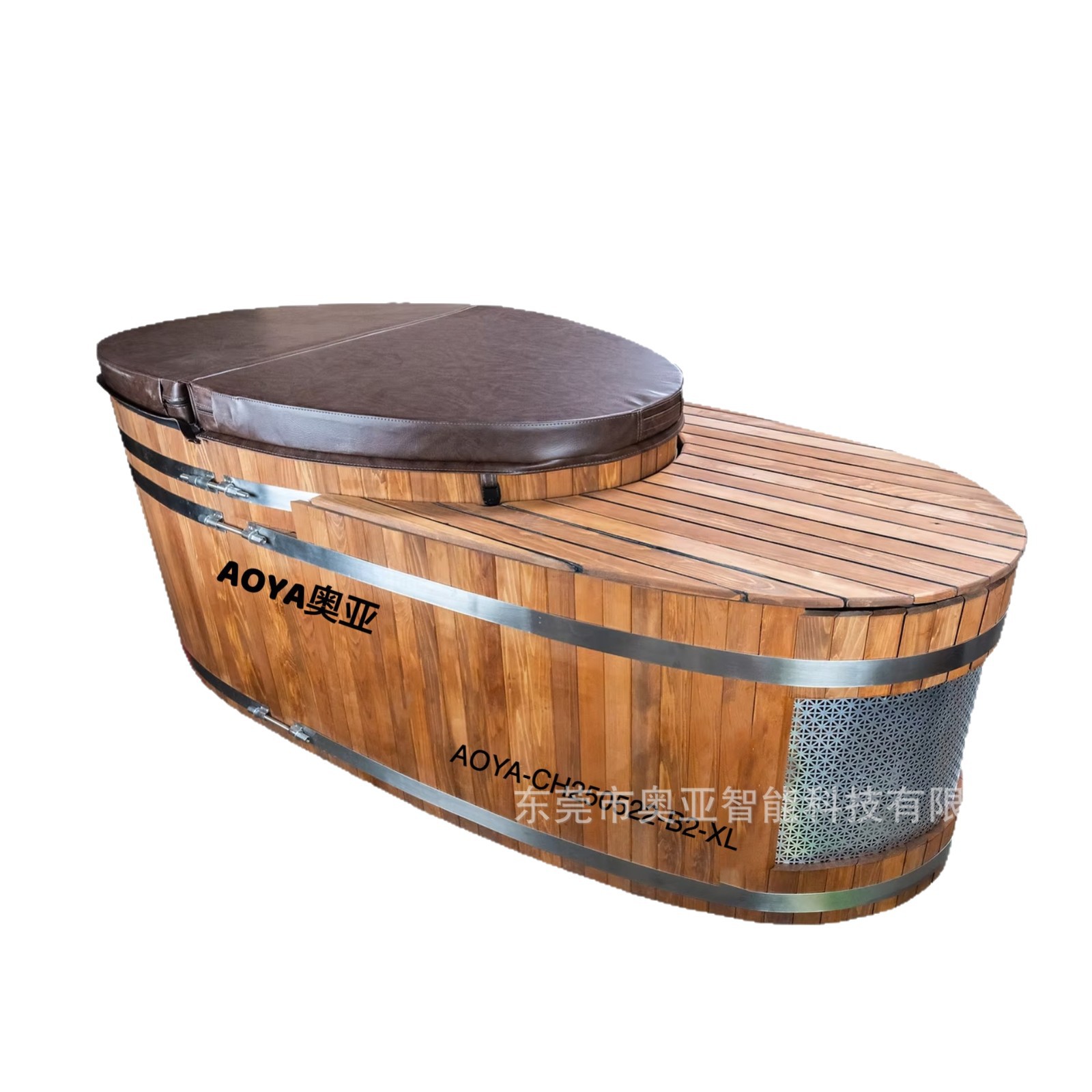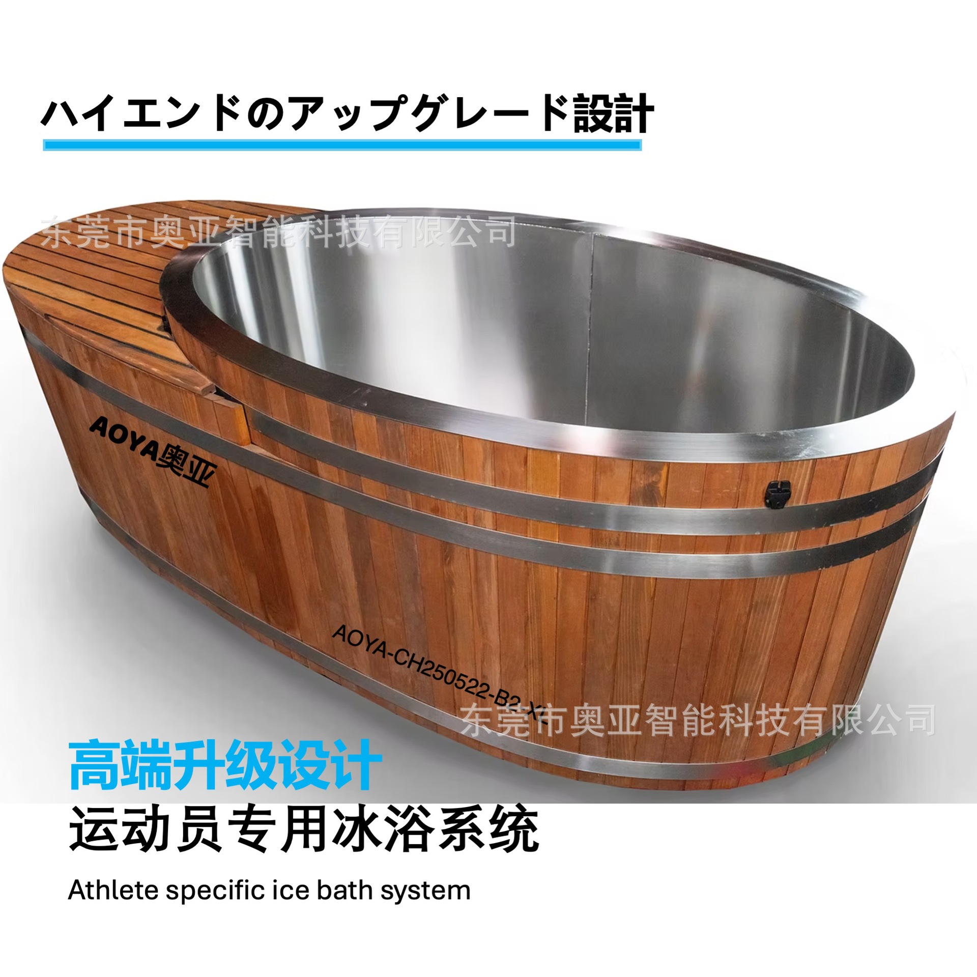 东莞市奥亚智能科技有限公司,主要开发设计高端运动员专用冰浴制冷设备浴缸,浴缸主要进口原木和不锈钢316材质组合合成,内部具有完善的冷却制冰系统,和低温水质循环系统,包括电压控制系统,手机控制系统和水质优化系统,完全按照运动员需求设计,