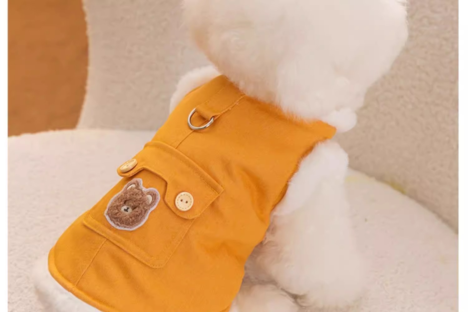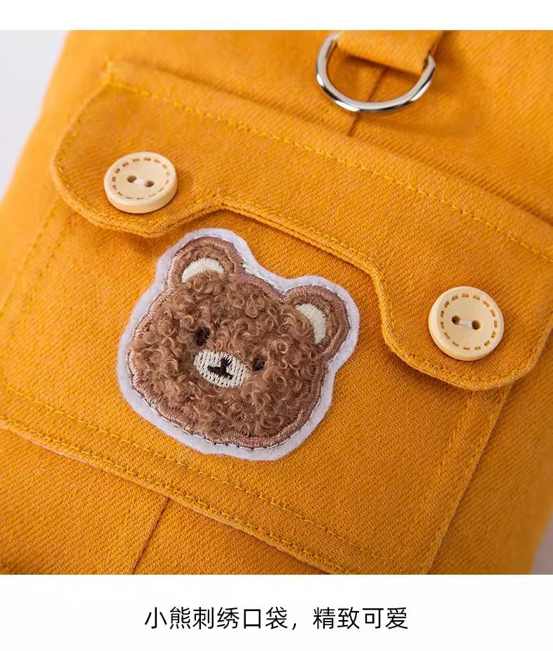 Осенне-зимний жилет с карманом для кошки и медведя, хлопковое пальто для собаки, теплое утолщенное плюшевое пальто для домашних животных, милая одежда