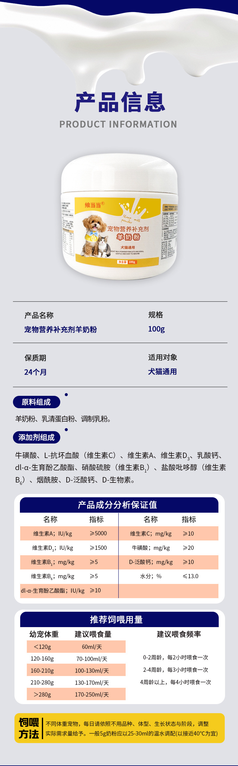 Сухое козье молоко для собак и кошек, специальная питательная добавка с высоким содержанием кальция для котят и щенков, питательный порошок с высокой степенью абсорбции, сухое козье молоко