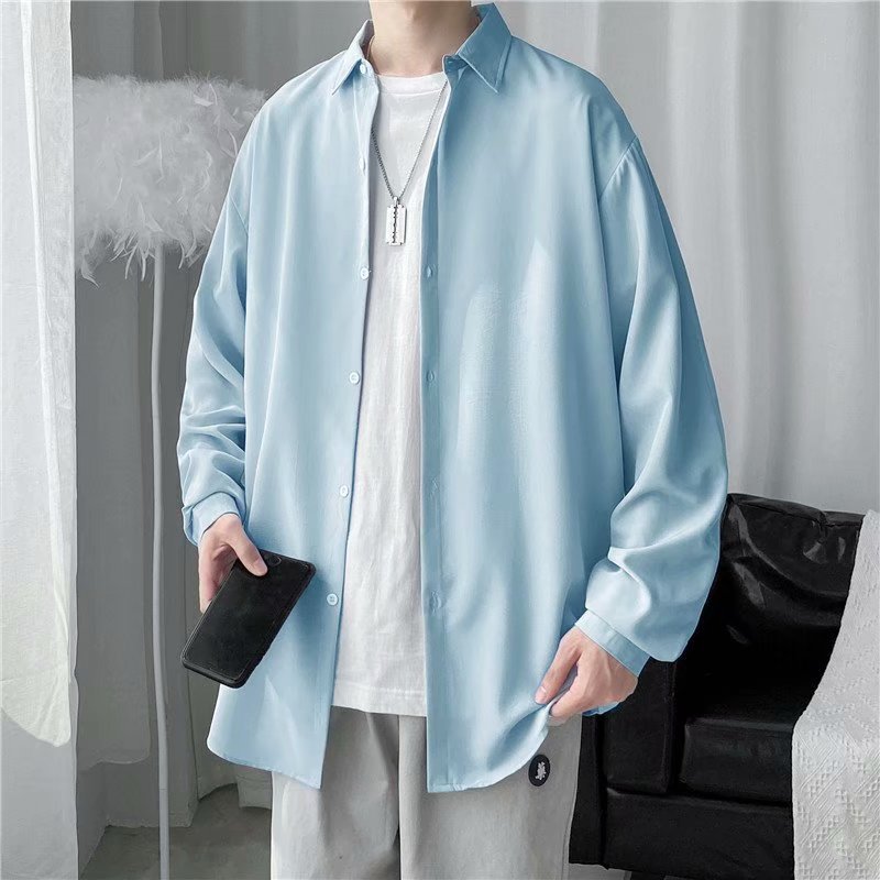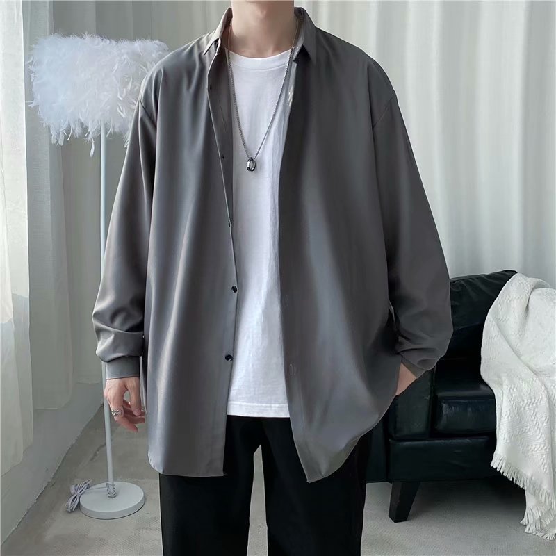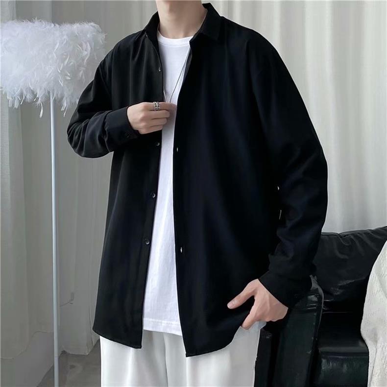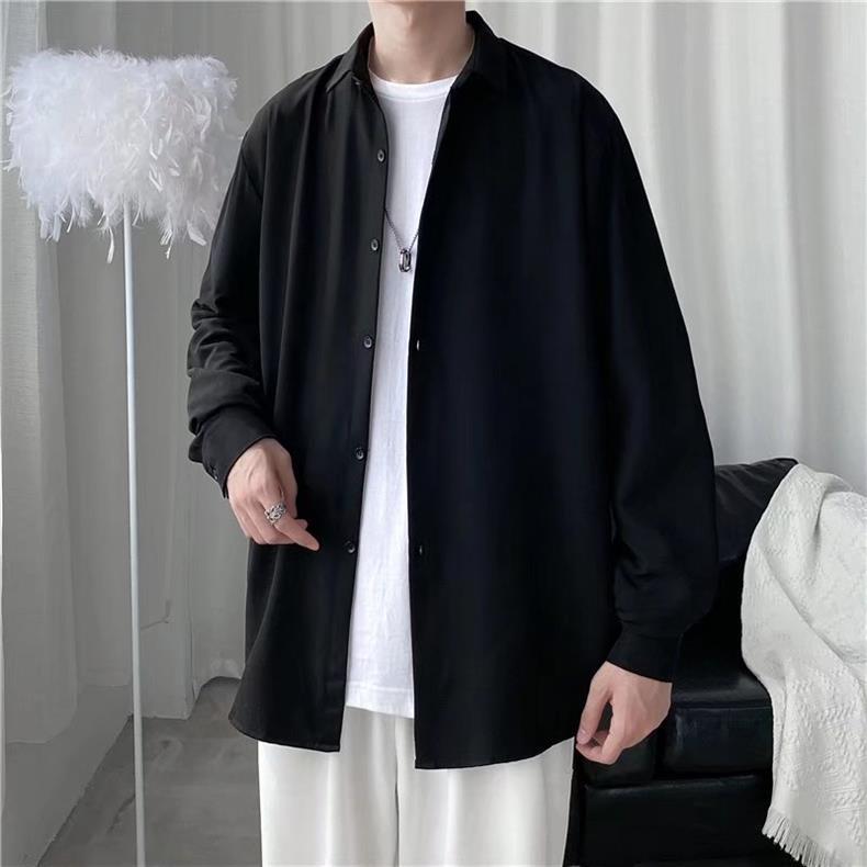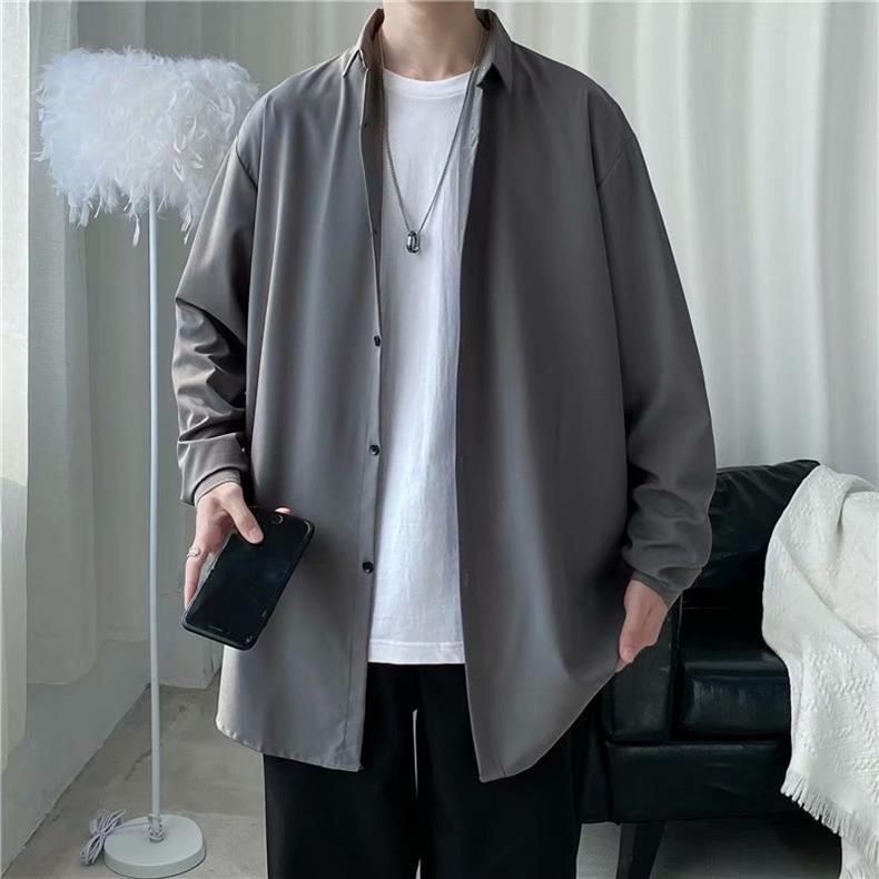 Мужская рубашка с длинными рукавами на весну и осень, тонкая японская однотонная рубашка в гонконгском стиле с уникальным дизайном, нишевая чистая мужская куртка.
