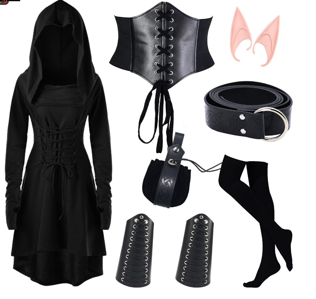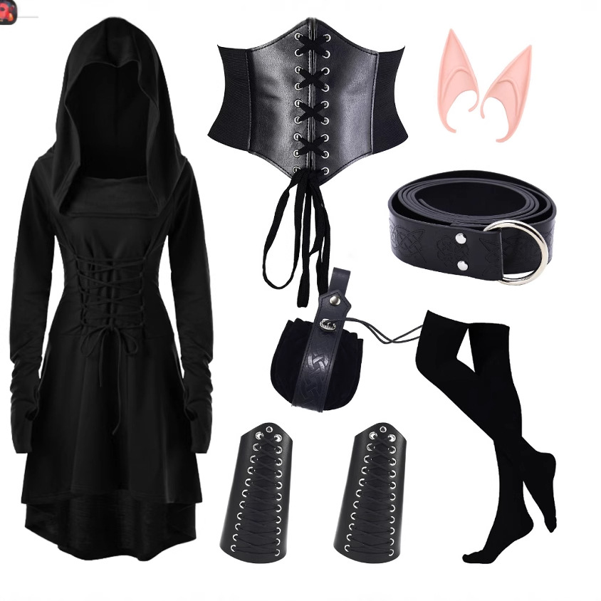 Женский костюм феи эпохи Возрождения, комплект из 7 предметов, средневековый халат с капюшоном, уши эльфа