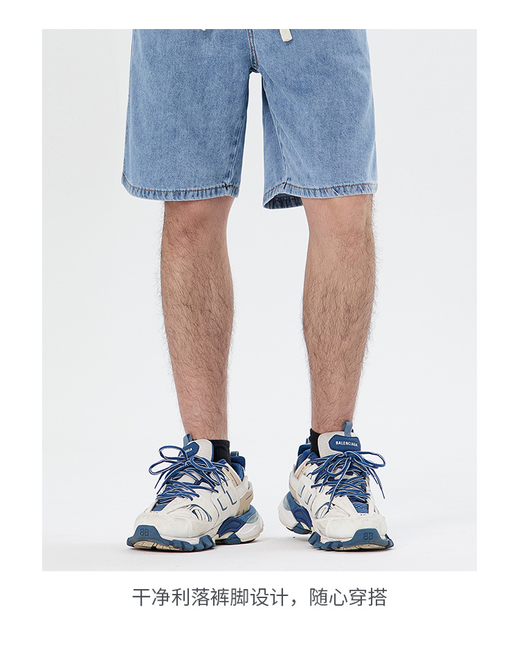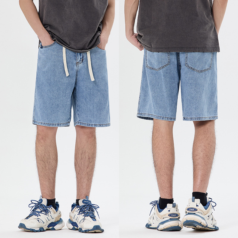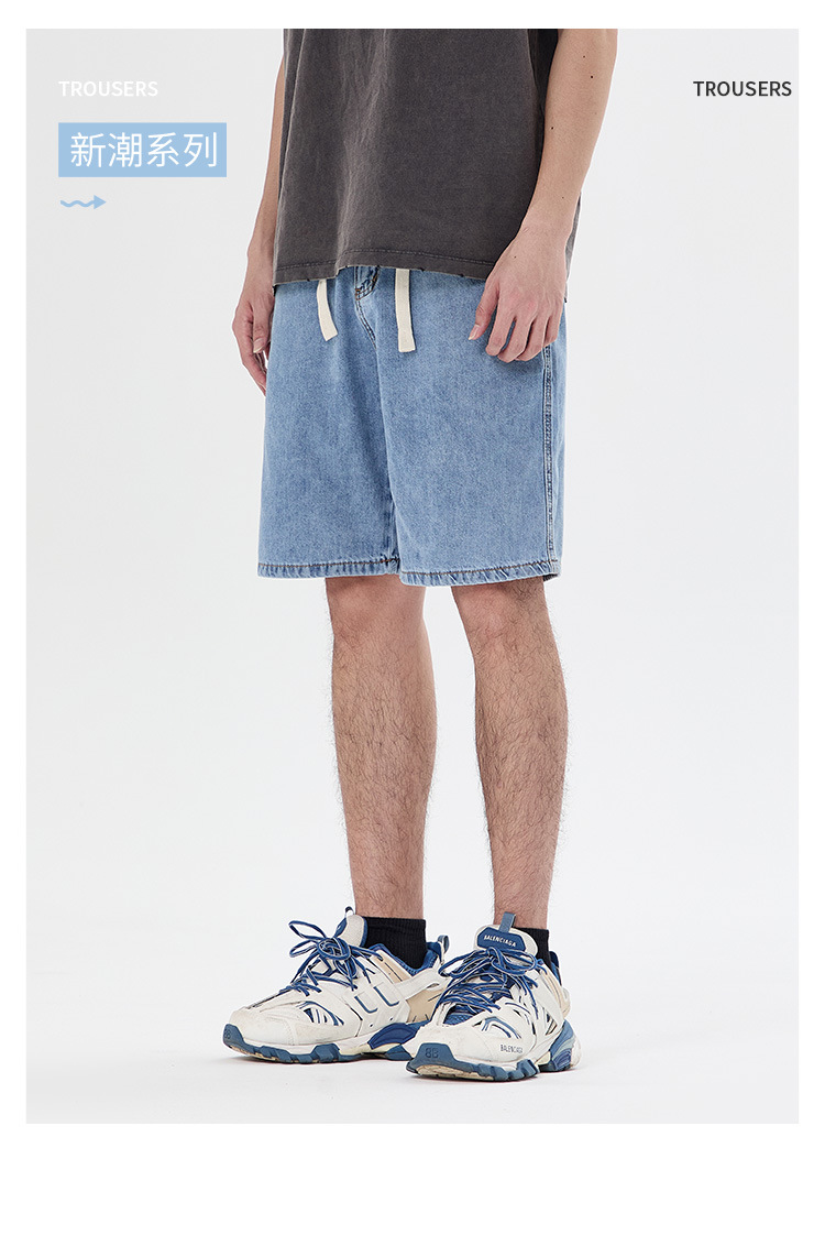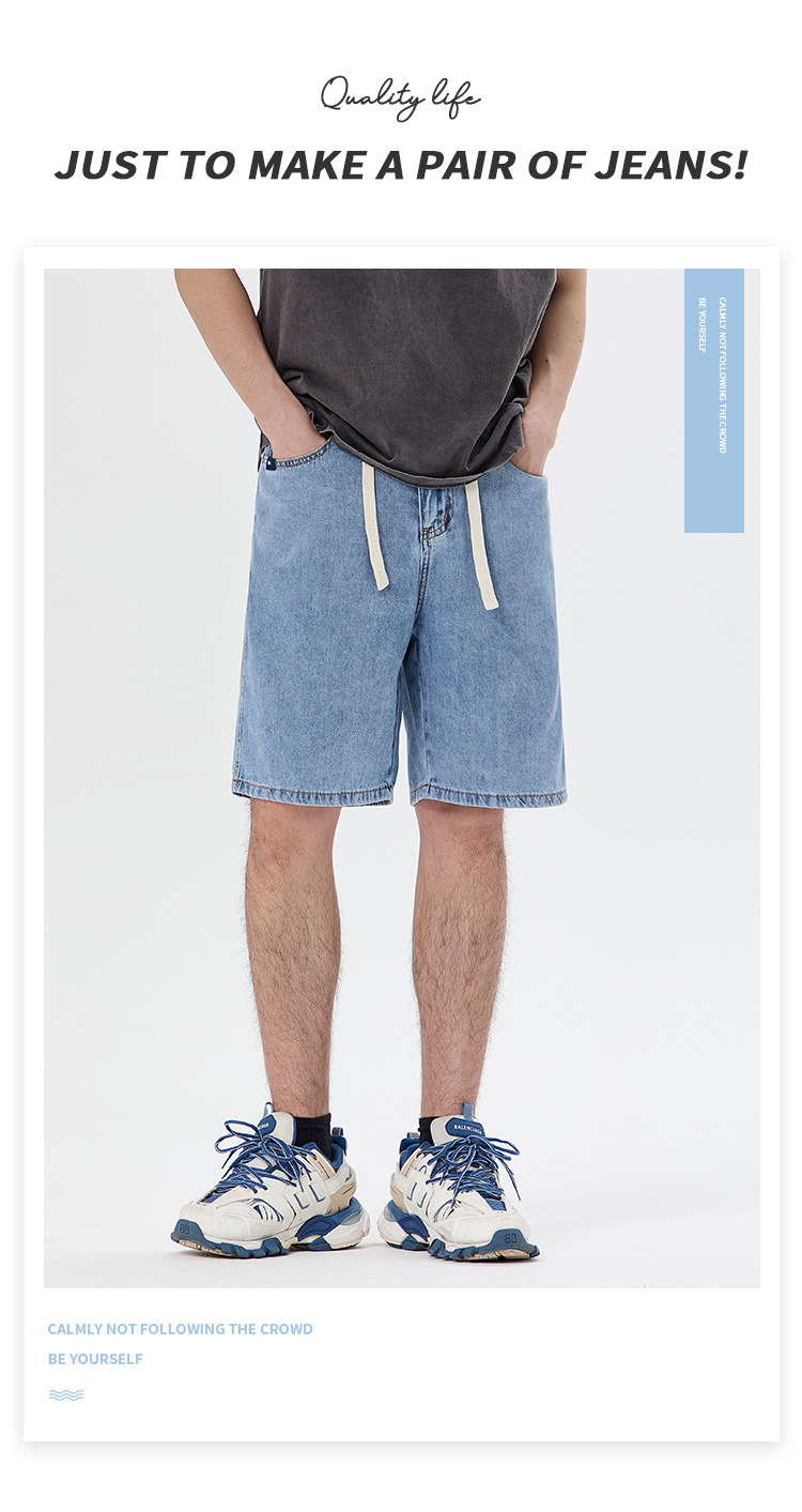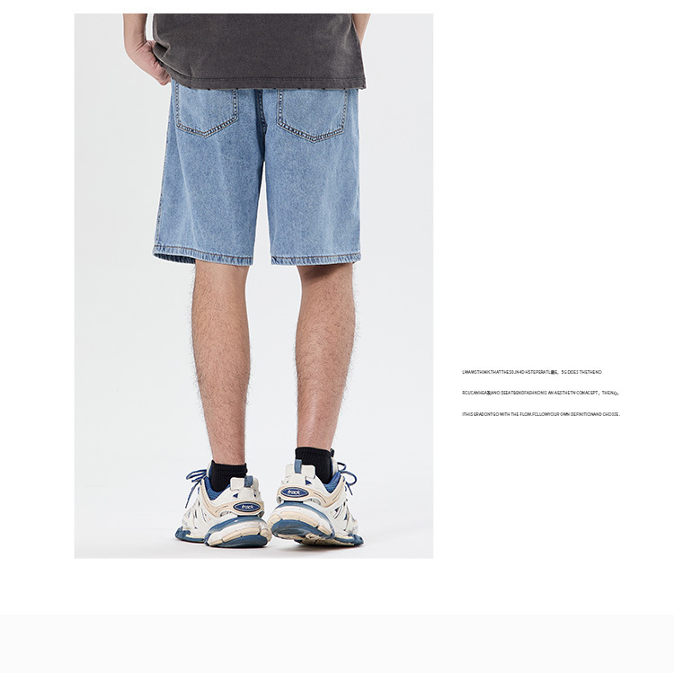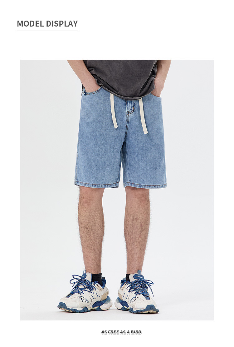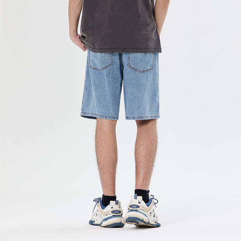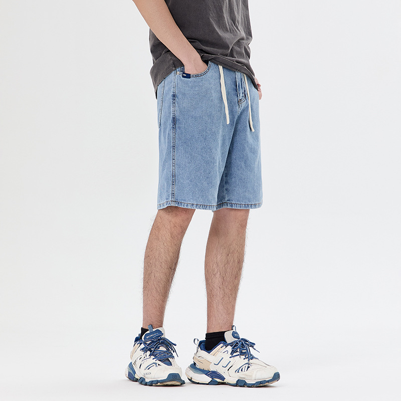 Модные джинсовые шорты в гонконгском стиле из лиоцелла, мужские простые модные свободные повседневные прямые брюки большого размера с пятью точками