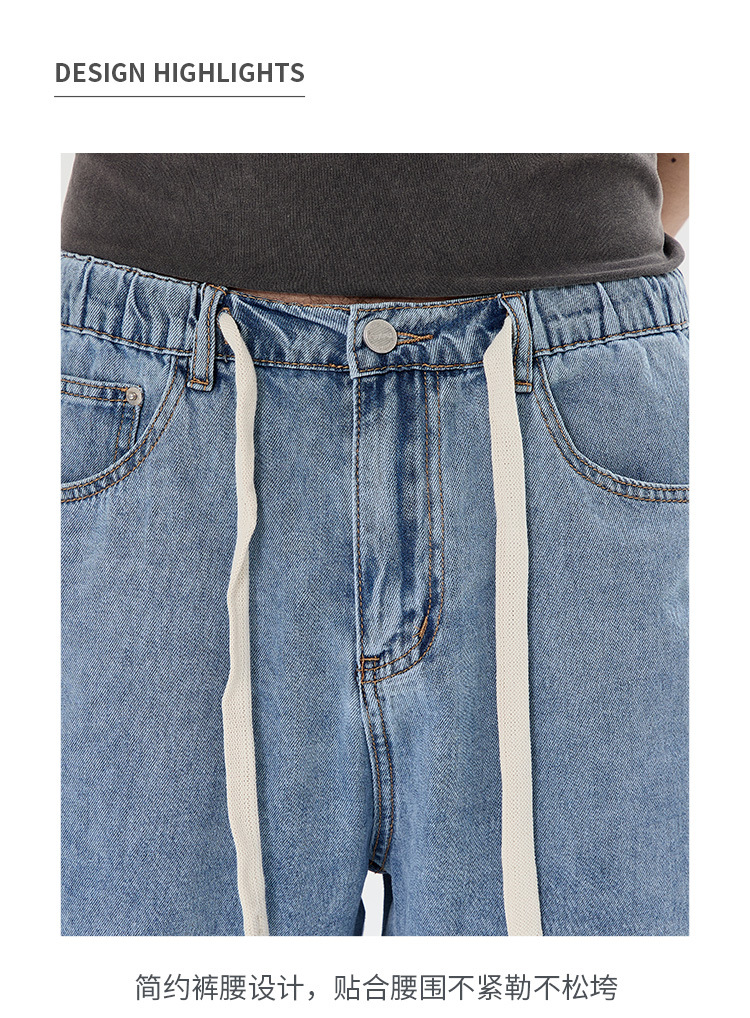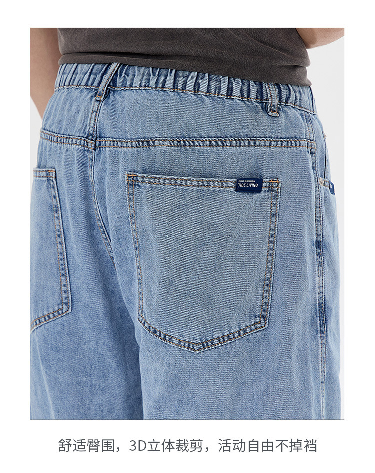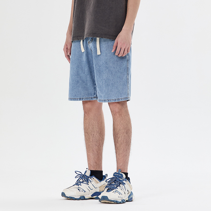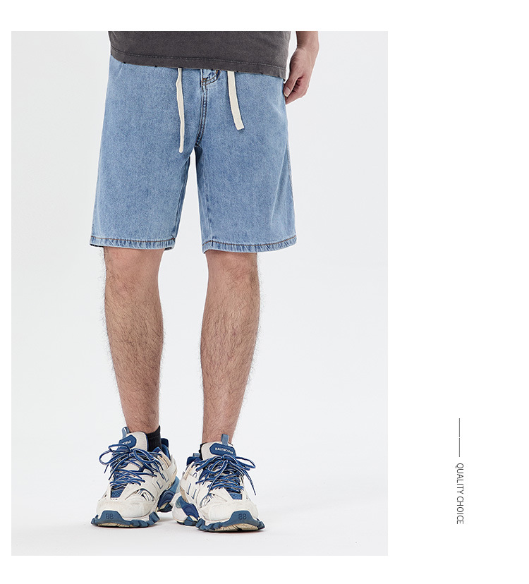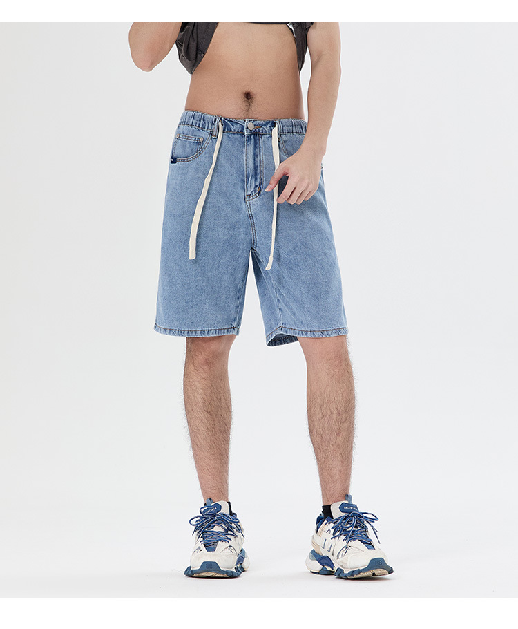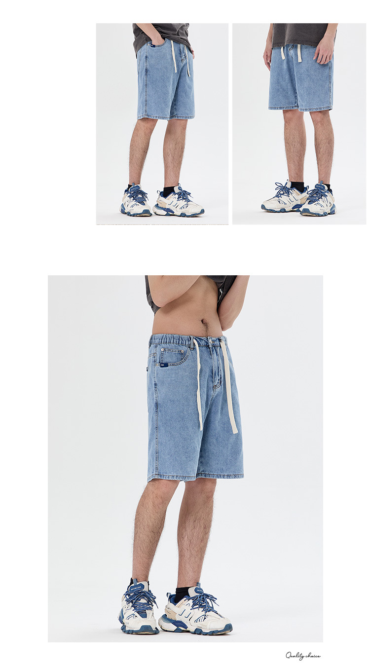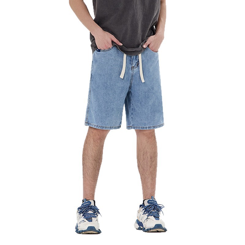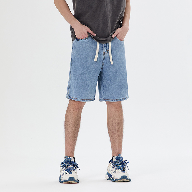 Модные джинсовые шорты в гонконгском стиле из лиоцелла, мужские простые модные свободные повседневные прямые брюки большого размера с пятью точками