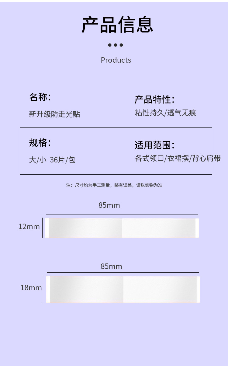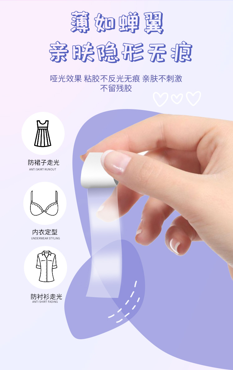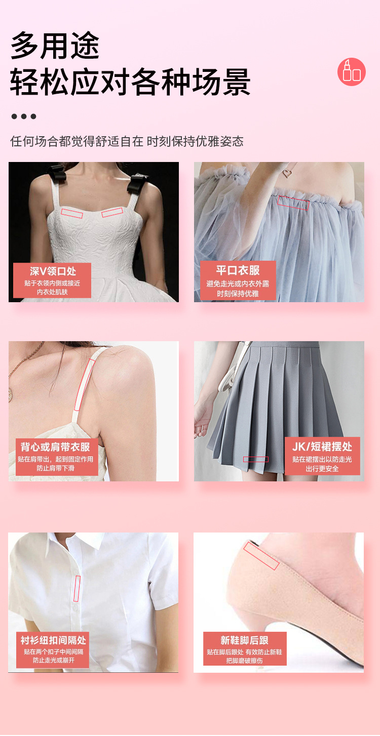 Клейкая пленка с защитой от воздействия, плечевой ремень, подтяжка, юбка, противоскользящий артефакт, защита от протечек, нашивка на груди, вырез одежды, невидимая нашивка на груди