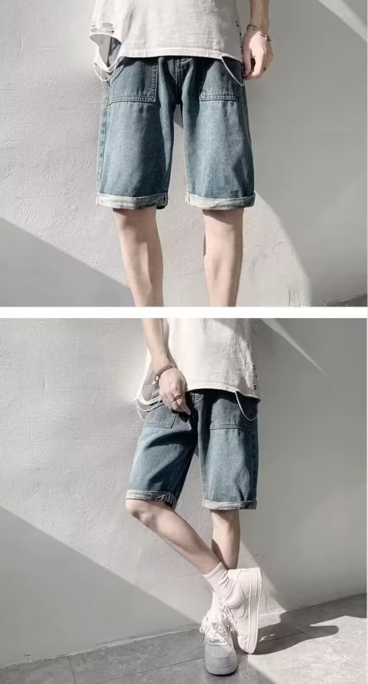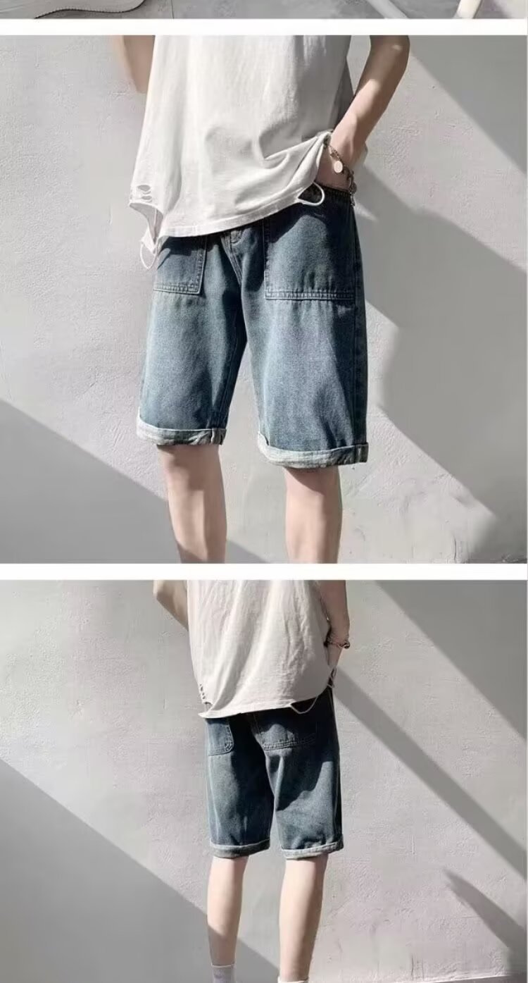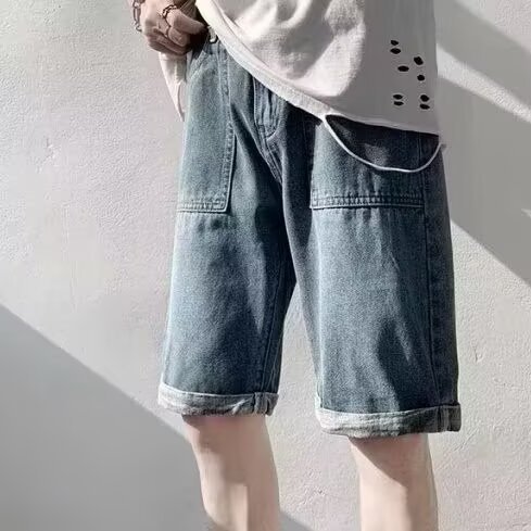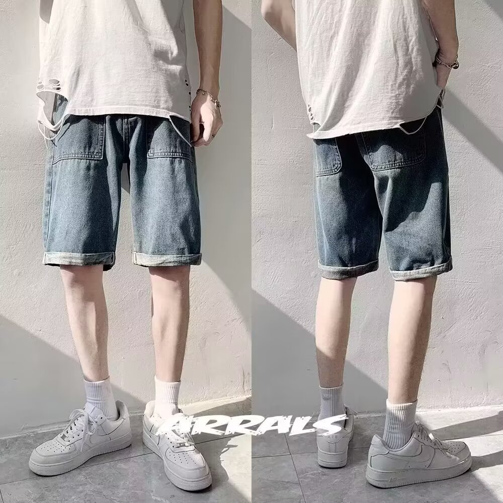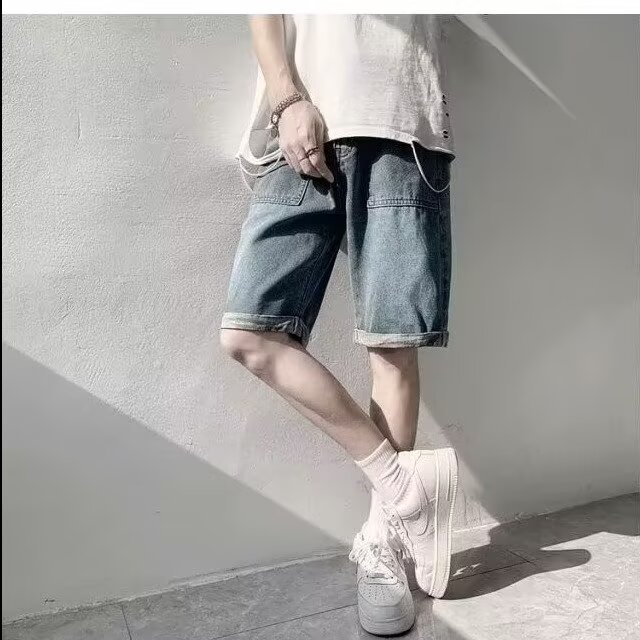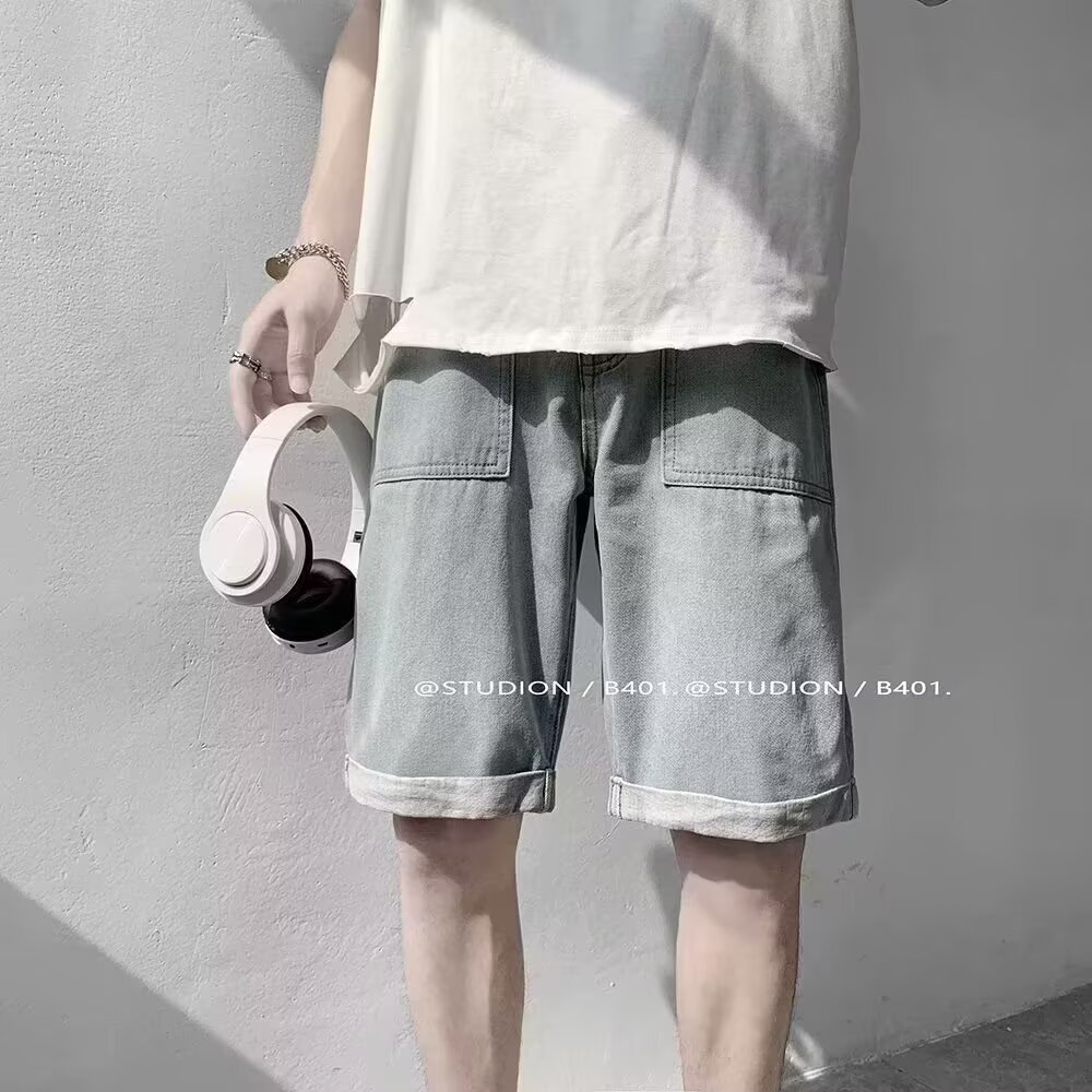 Мужские свободные джинсовые шорты в японском стиле ретро, летние тонкие модные однотонные шорты до колена с закатанными штанинами, универсальные для студентов.
