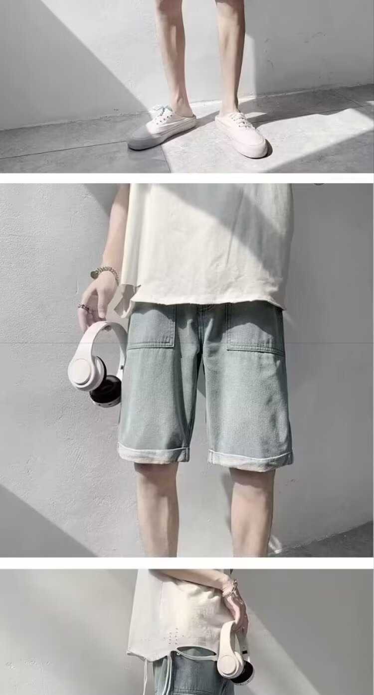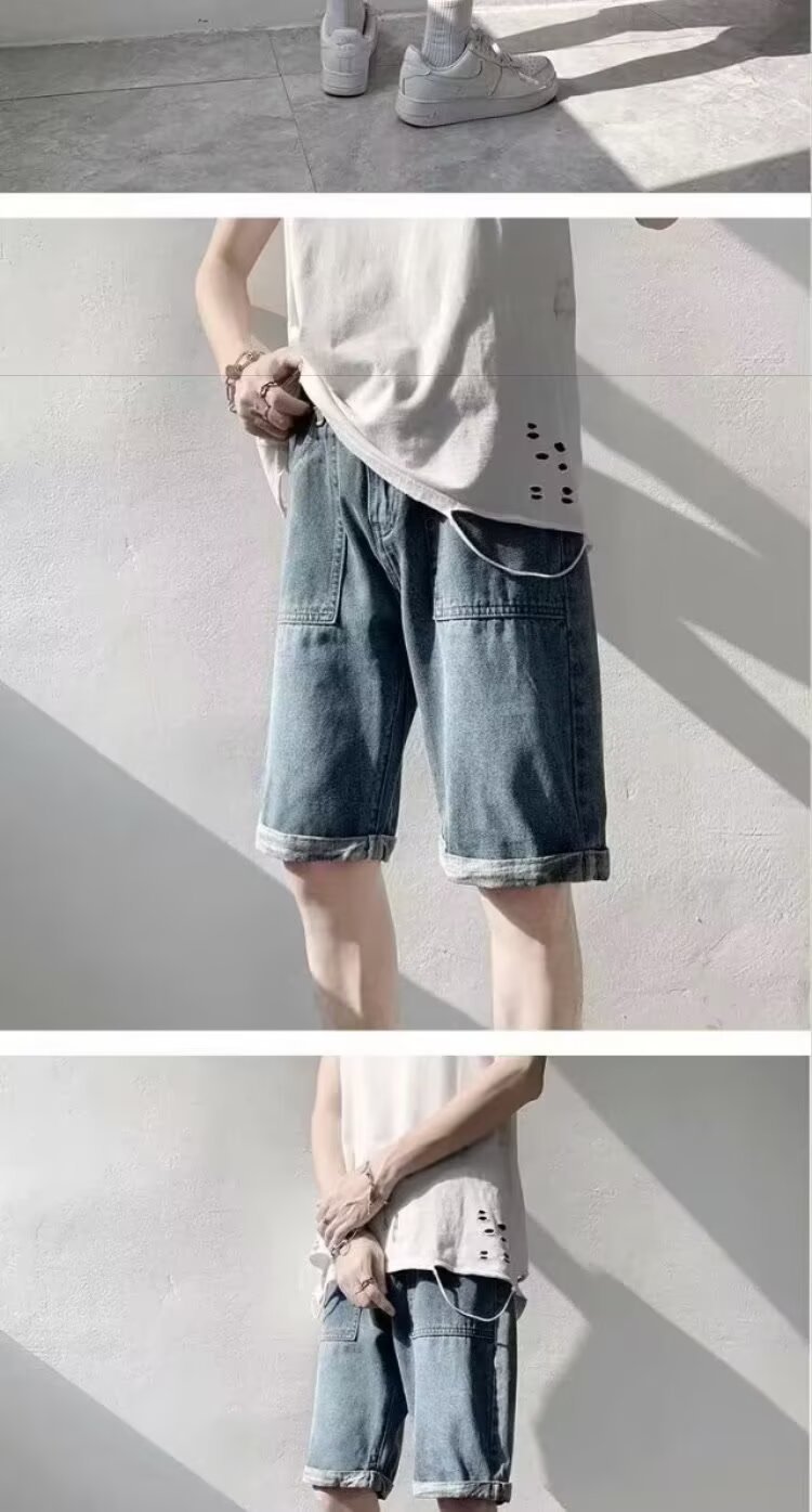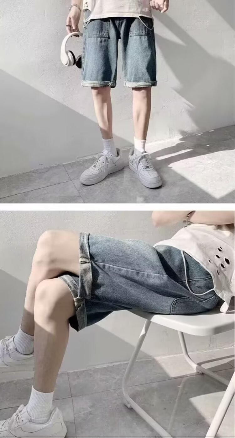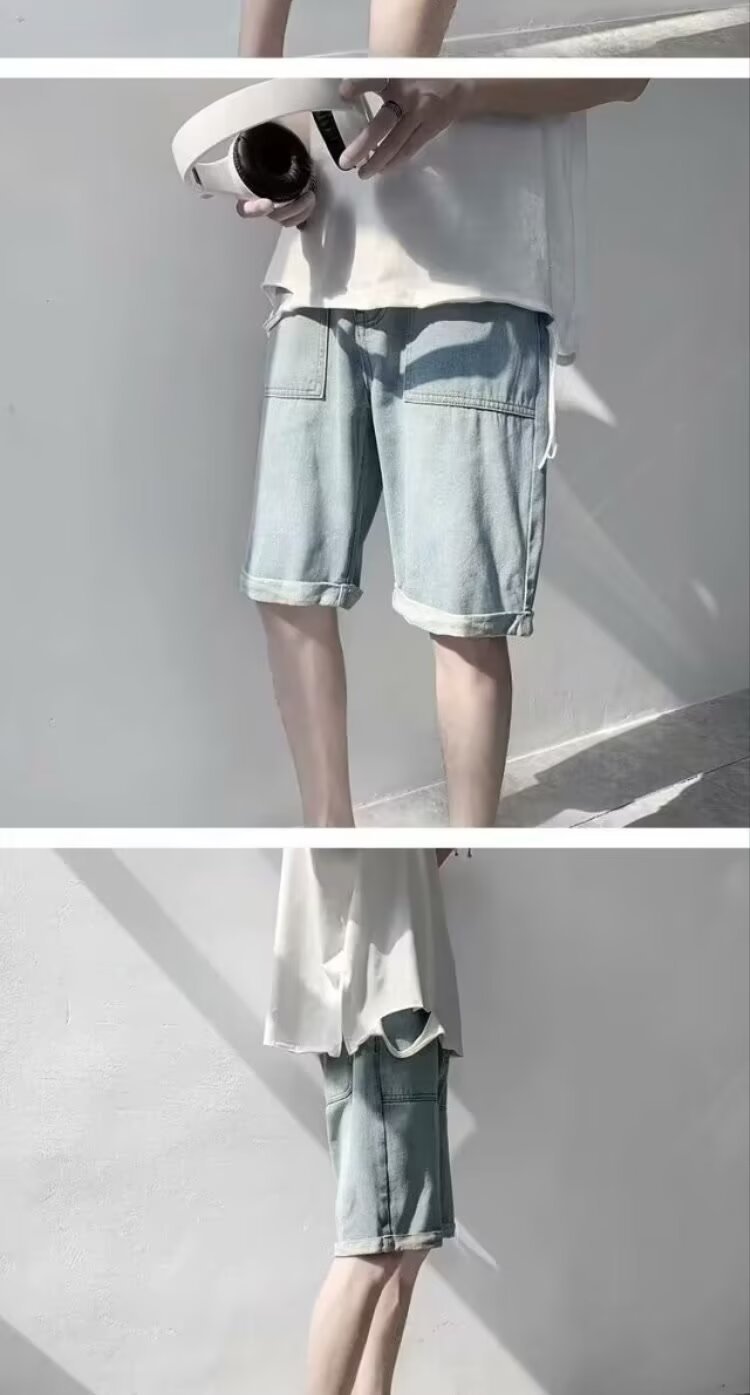 Мужские свободные джинсовые шорты в японском стиле ретро, летние тонкие модные однотонные шорты до колена с закатанными штанинами, универсальные для студентов.