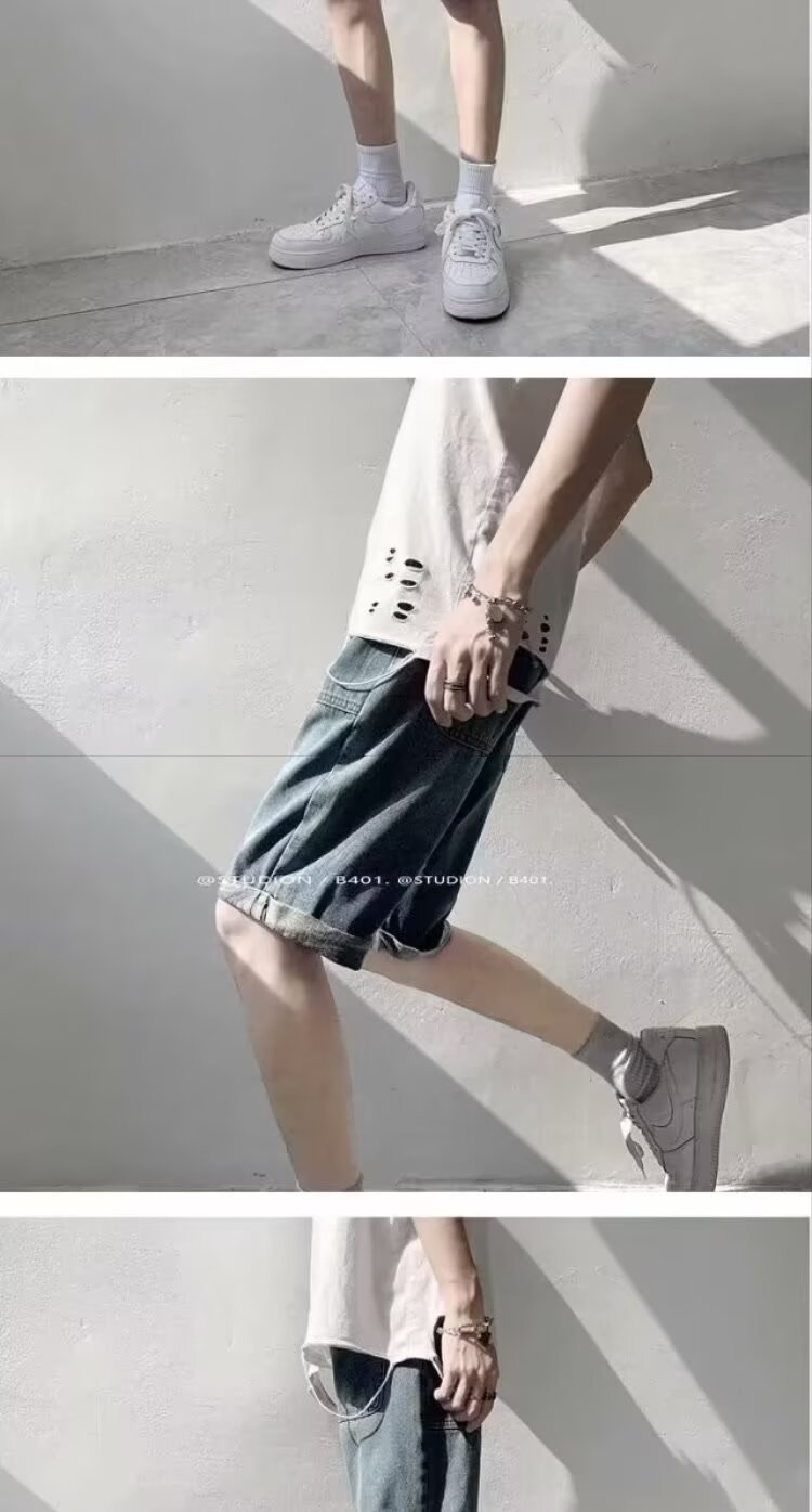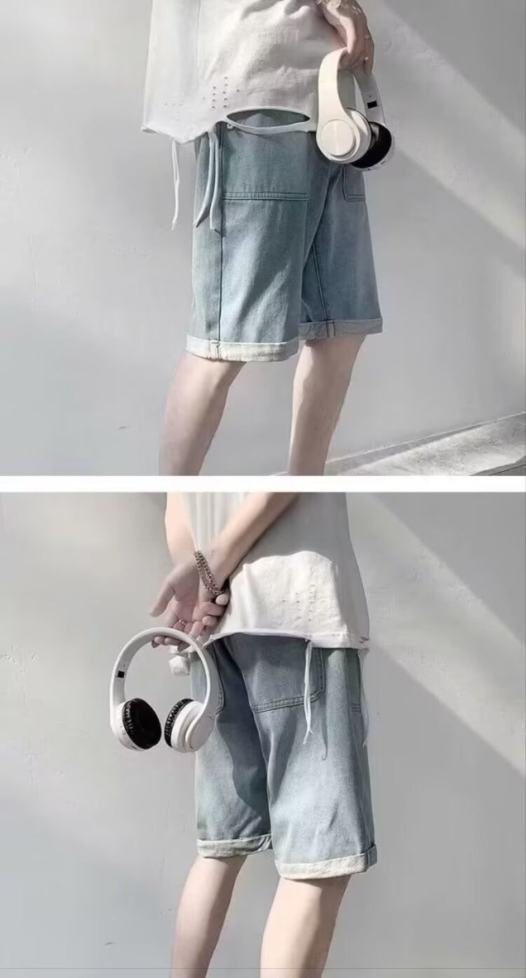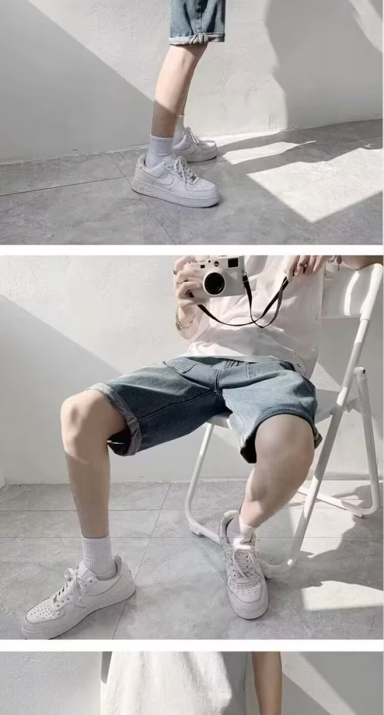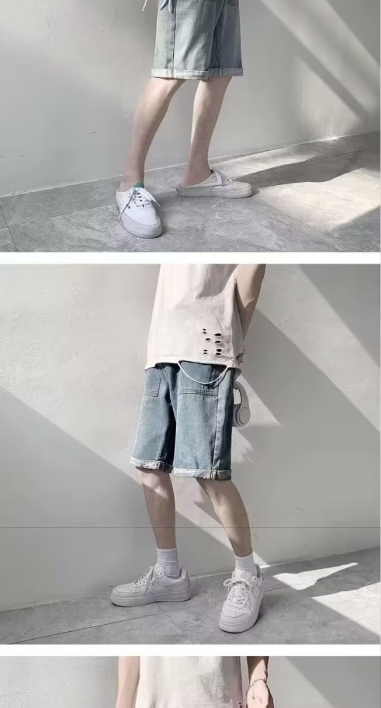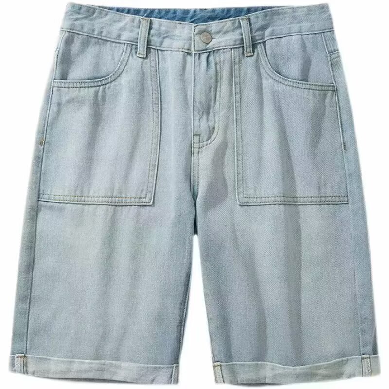 Мужские свободные джинсовые шорты в японском стиле ретро, летние тонкие модные однотонные шорты до колена с закатанными штанинами, универсальные для студентов.