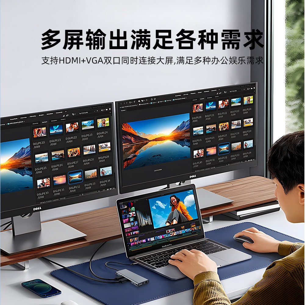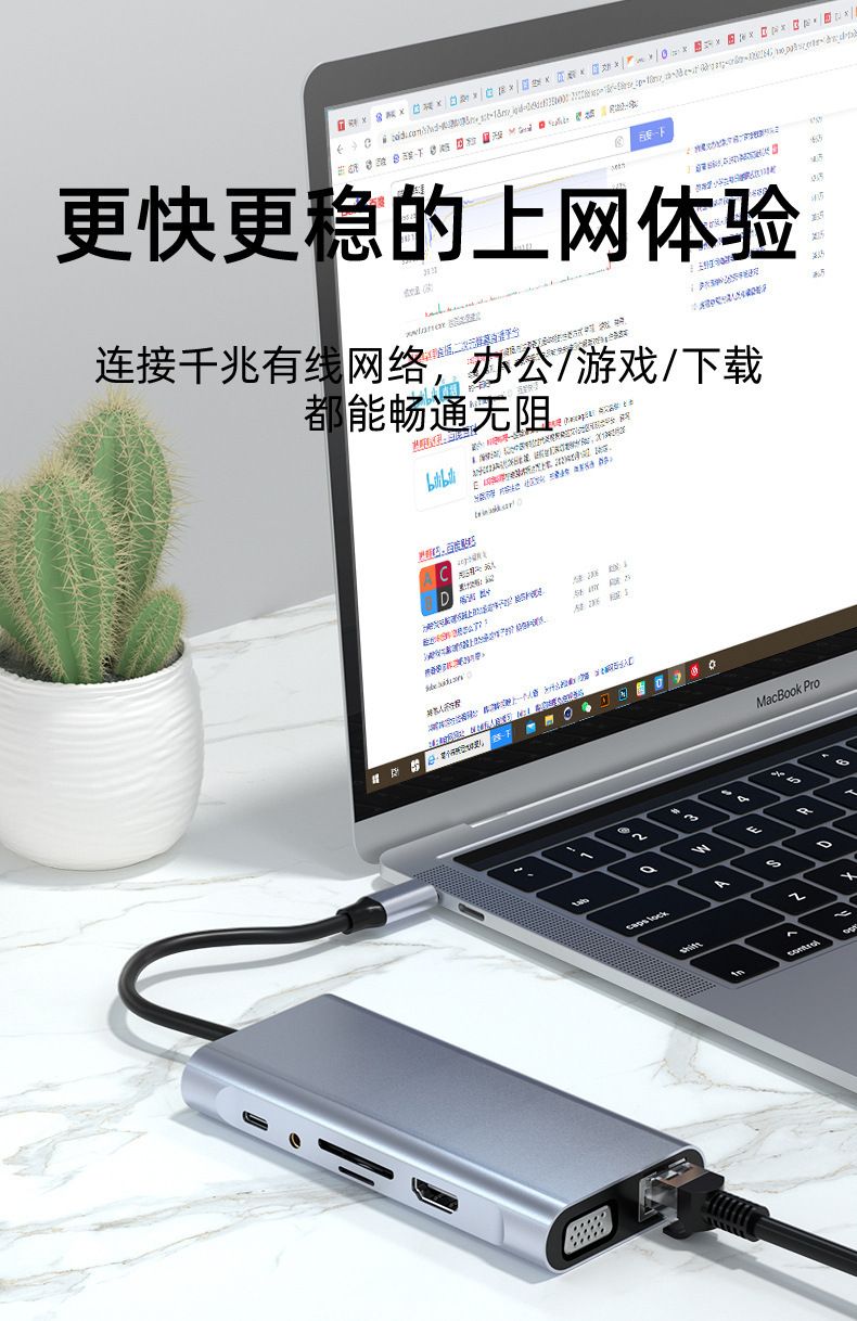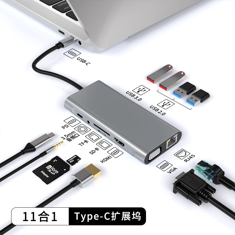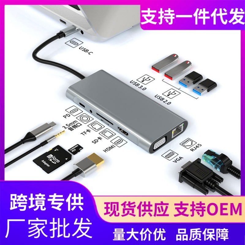 Док-станция typec 11-в-1 USB/HDMI/VGA/PD/SD/TF/аудиопорт/сетевой порт RJ45 100M