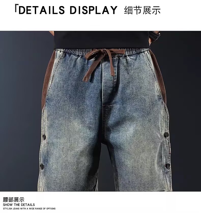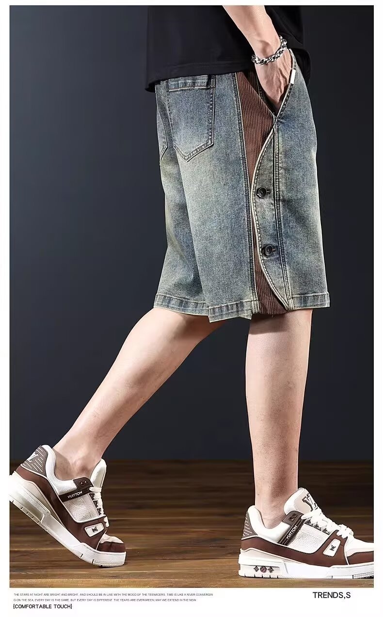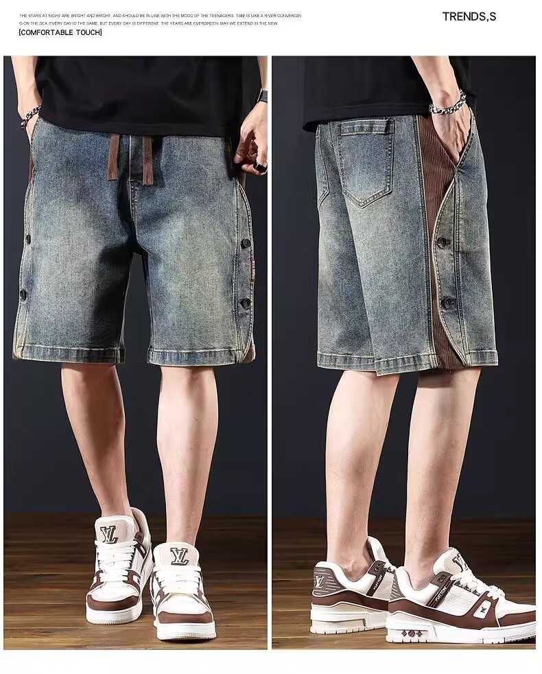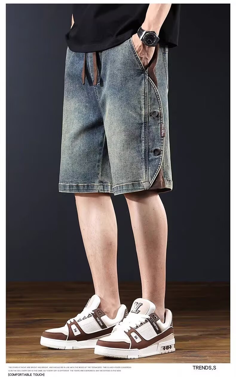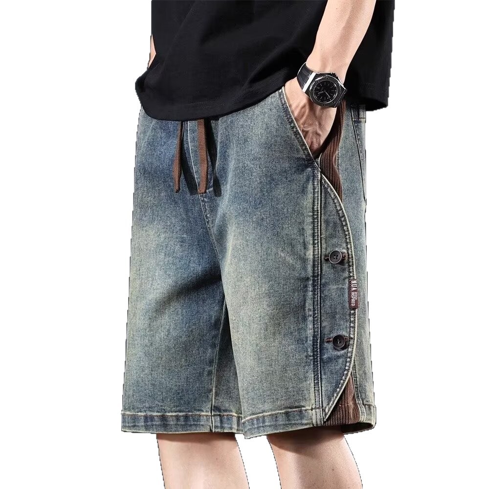 Американские джинсовые шорты для мужчин, лето 2025, новые свободные шорты с пятью карманами, эластичный пояс, большой размер, модный бренд, средние шорты