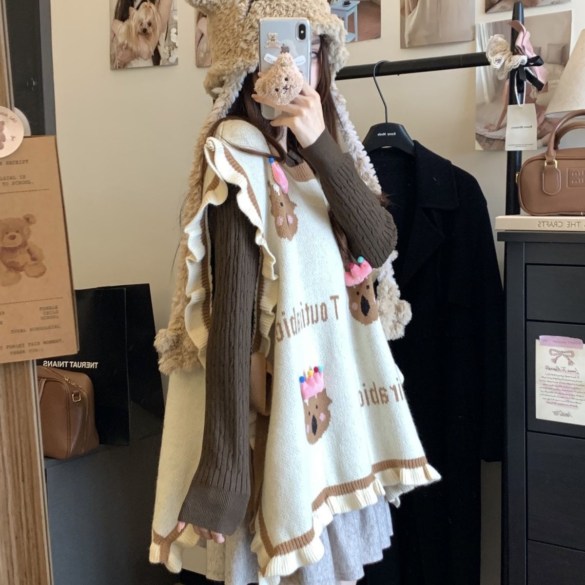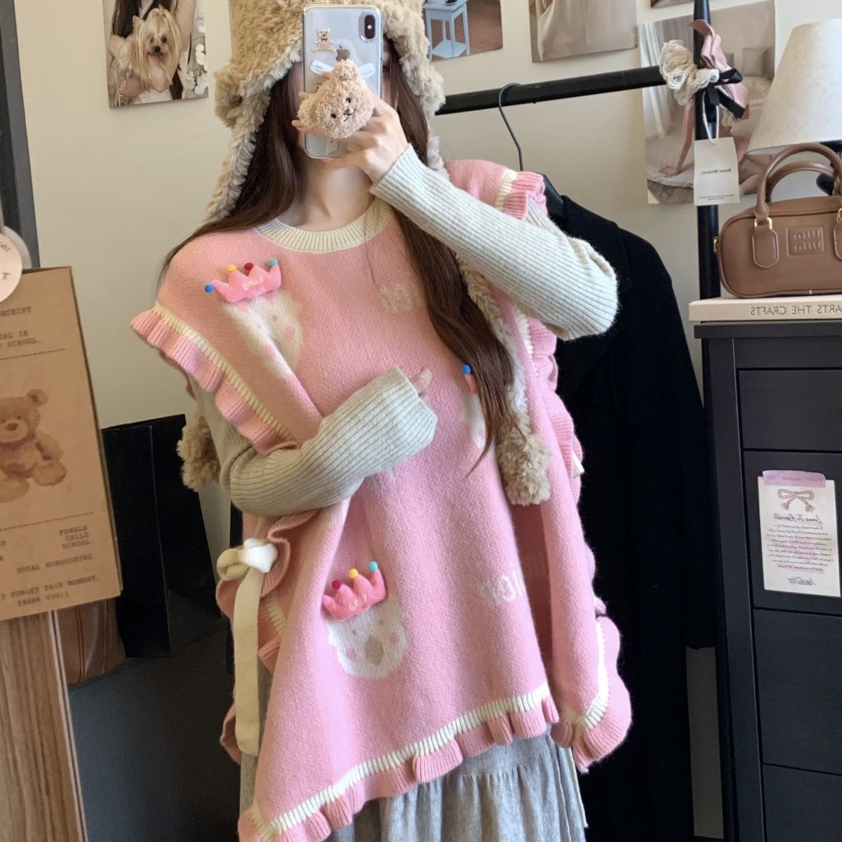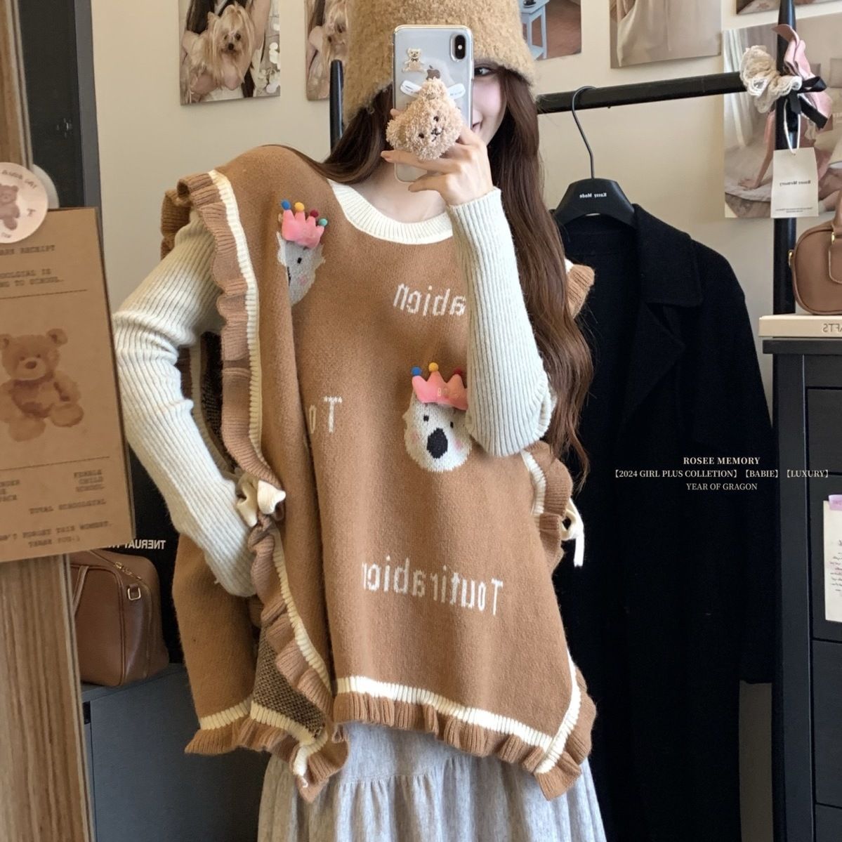 Оптовая продажа больших размеров новых осенне-зимних вязаных жилетов в стиле колледжа, свитеров, жилеток, курток для студенток, топов средней длины