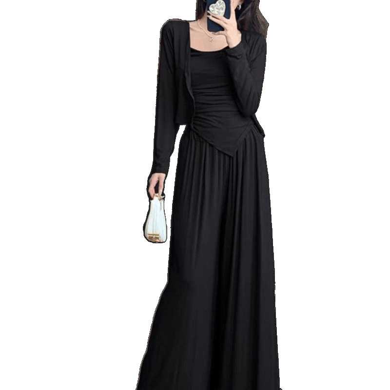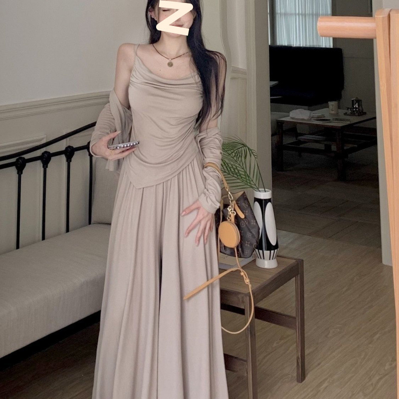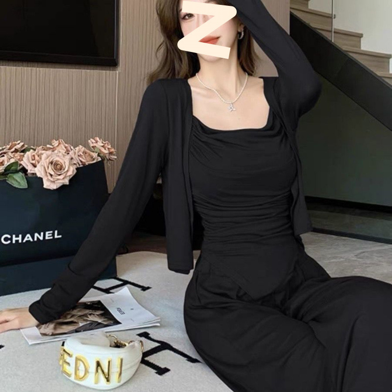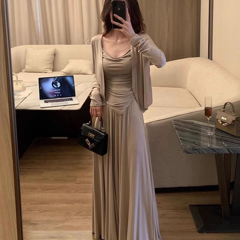 Летний новый костюм-кардиган, ленивый стиль, утягивающий и скрывающий кардиган на подтяжках + повседневная юбка, прямая продажа с фабрики