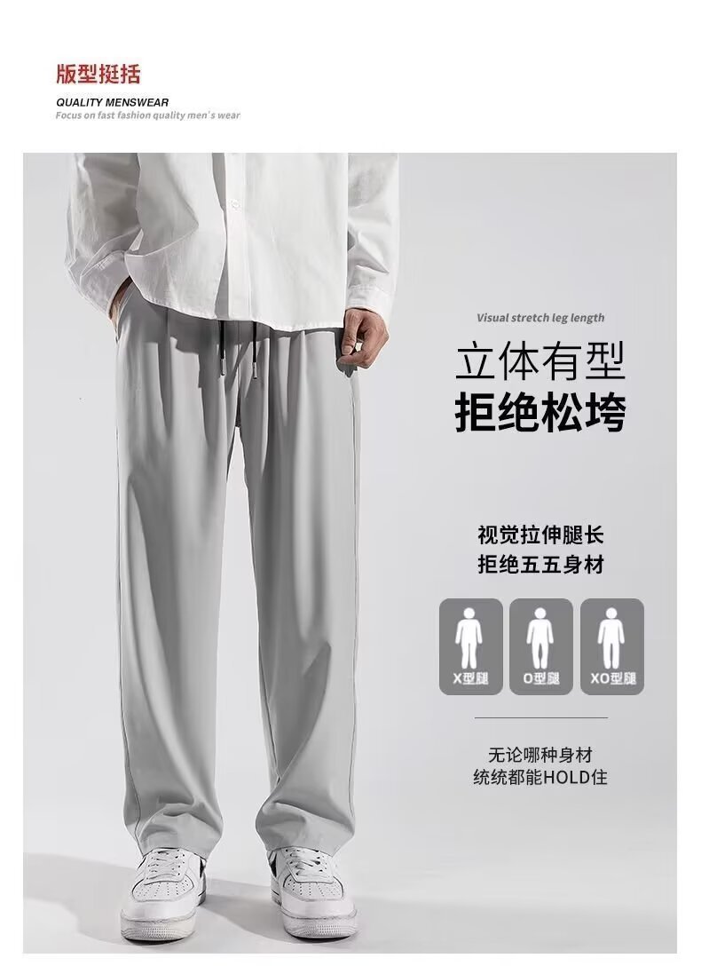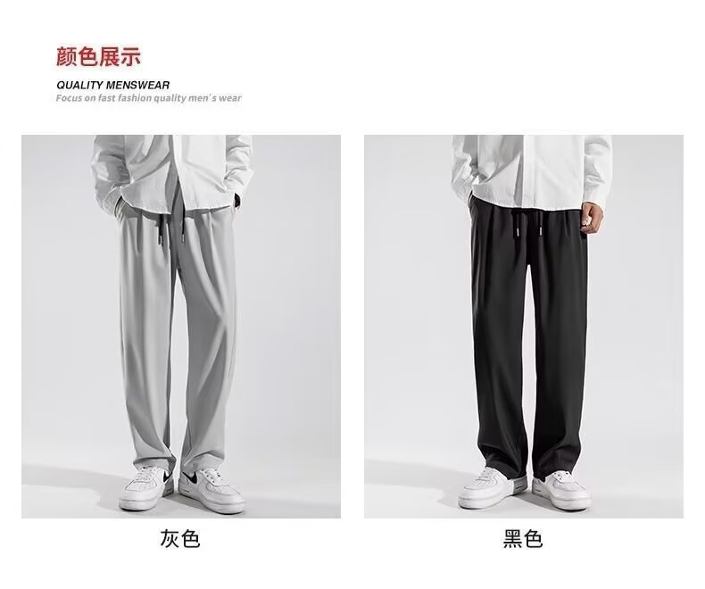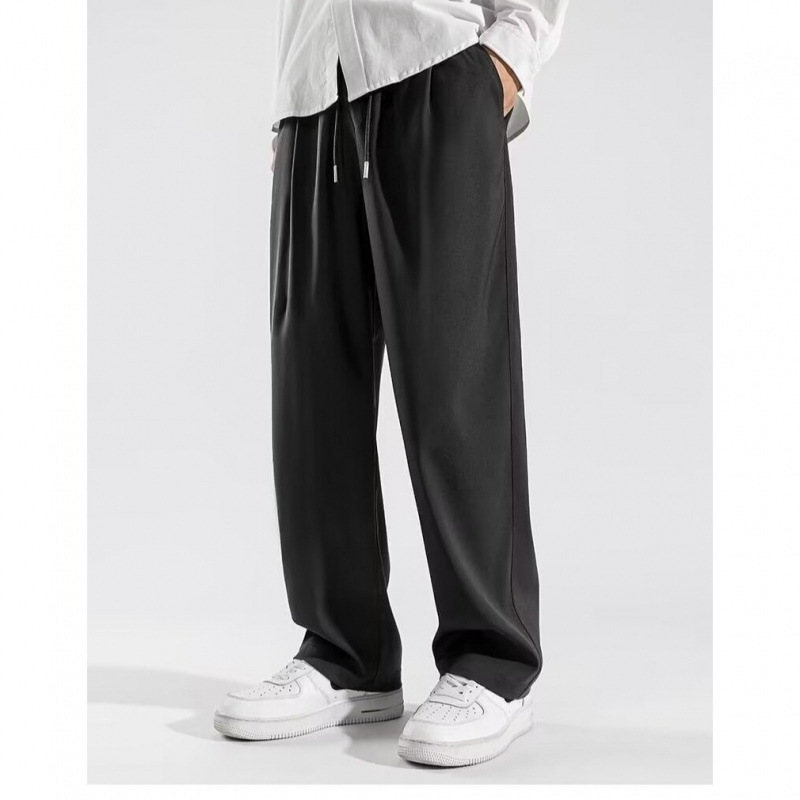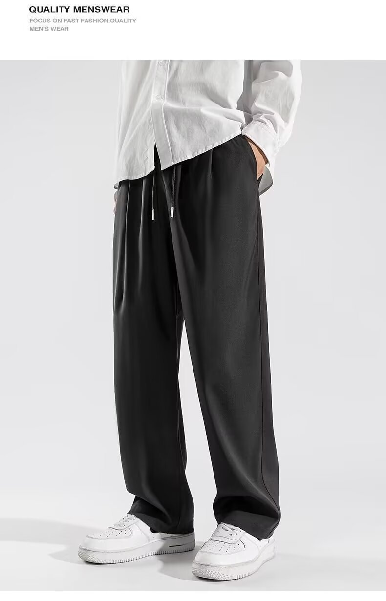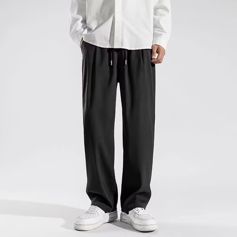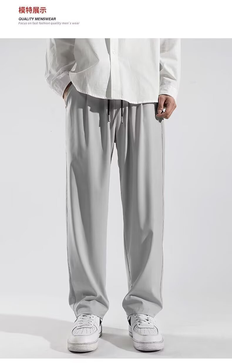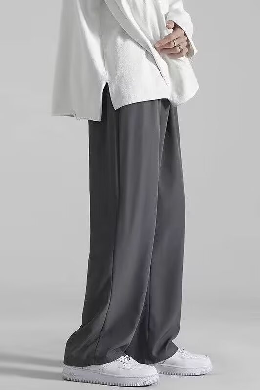 Новые летние прямые повседневные брюки из ледяного шелка для мужчин, тонкие, крутые, простые, универсальные, свободные и драпированные повседневные брюки с широкими штанинами.