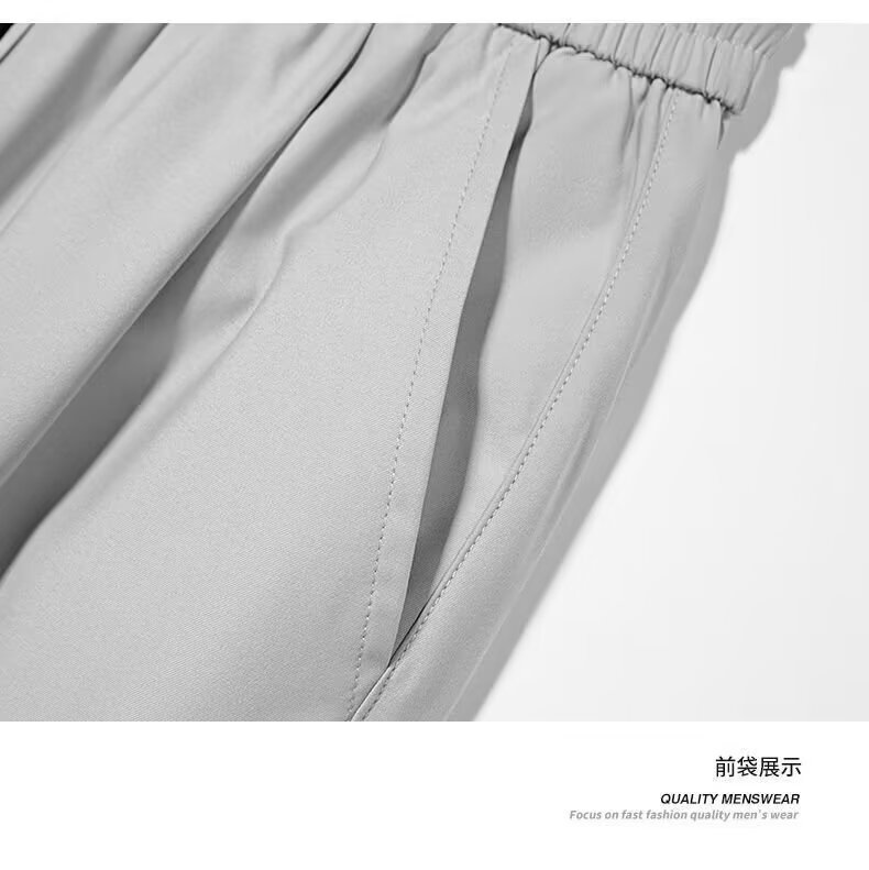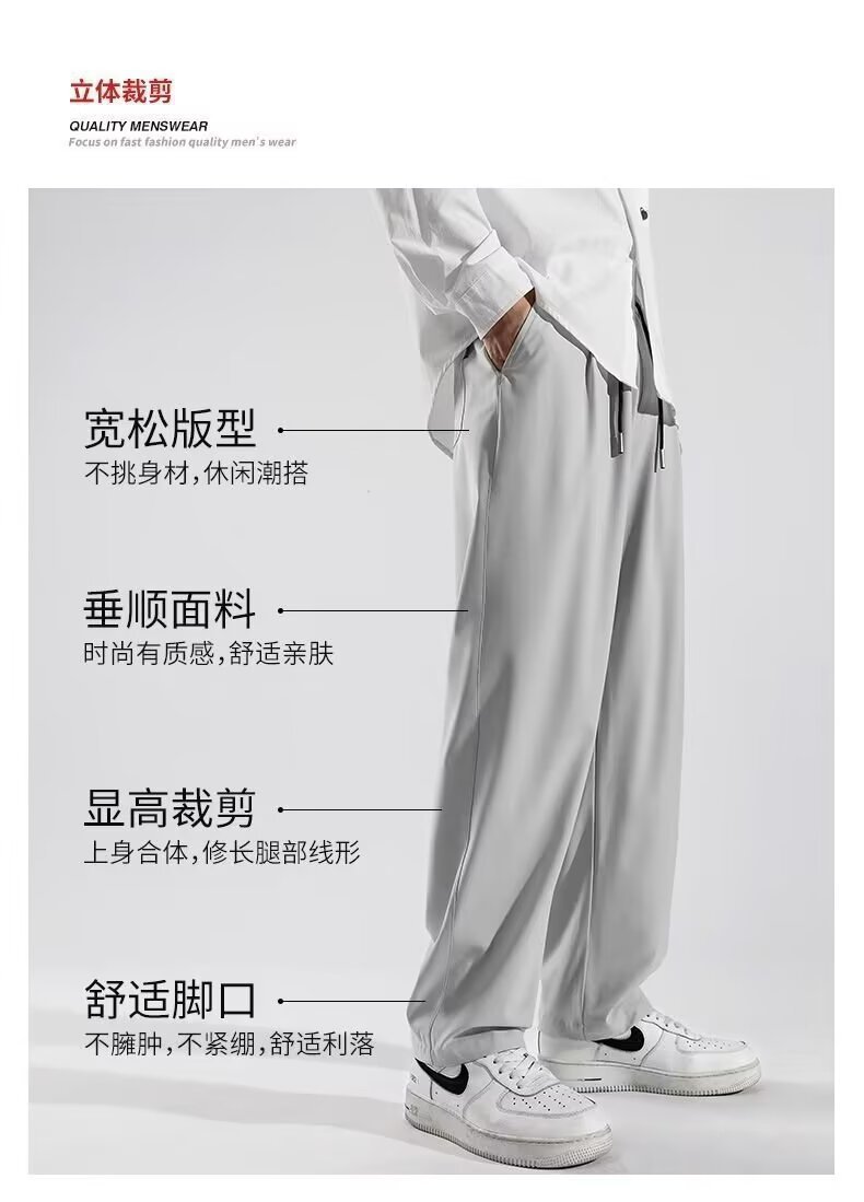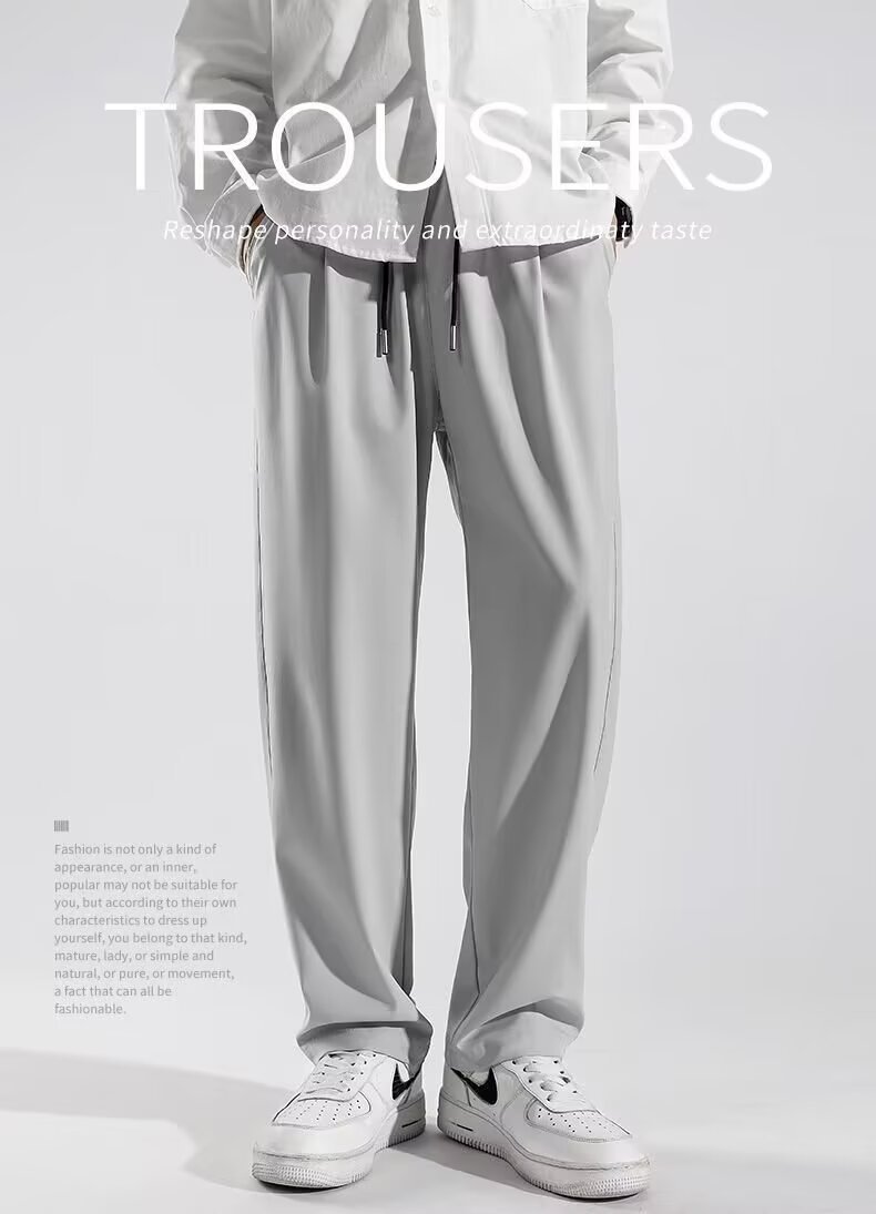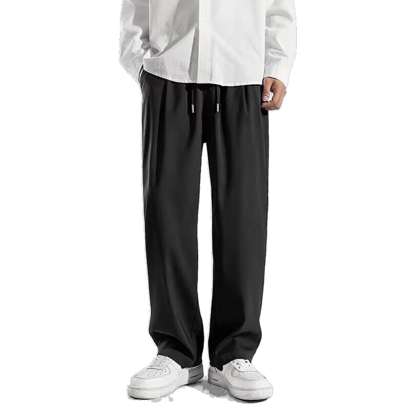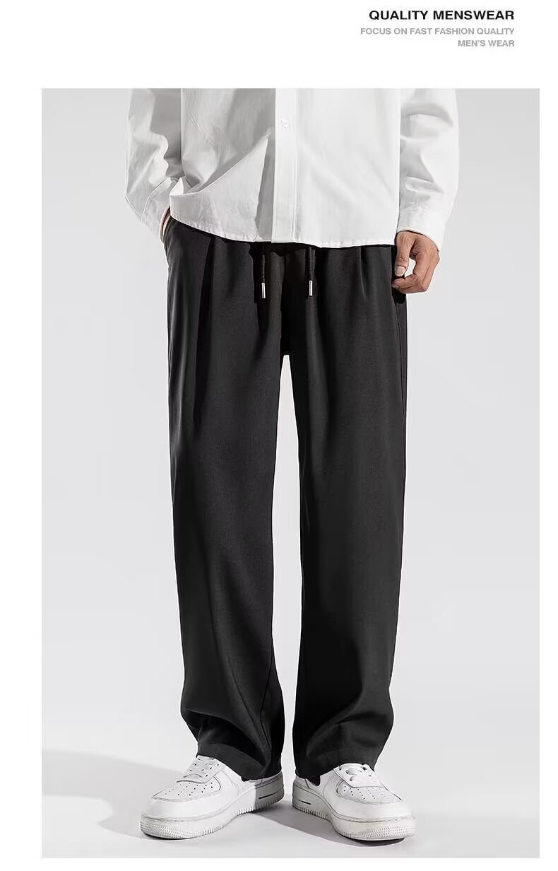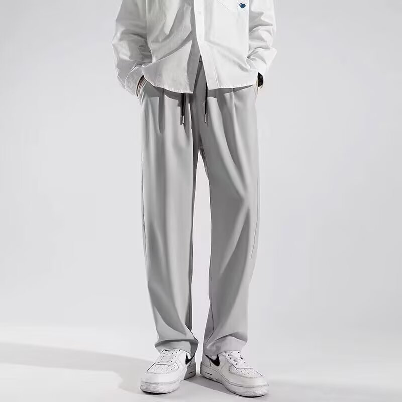 Новые летние прямые повседневные брюки из ледяного шелка для мужчин, тонкие, крутые, простые, универсальные, свободные и драпированные повседневные брюки с широкими штанинами.