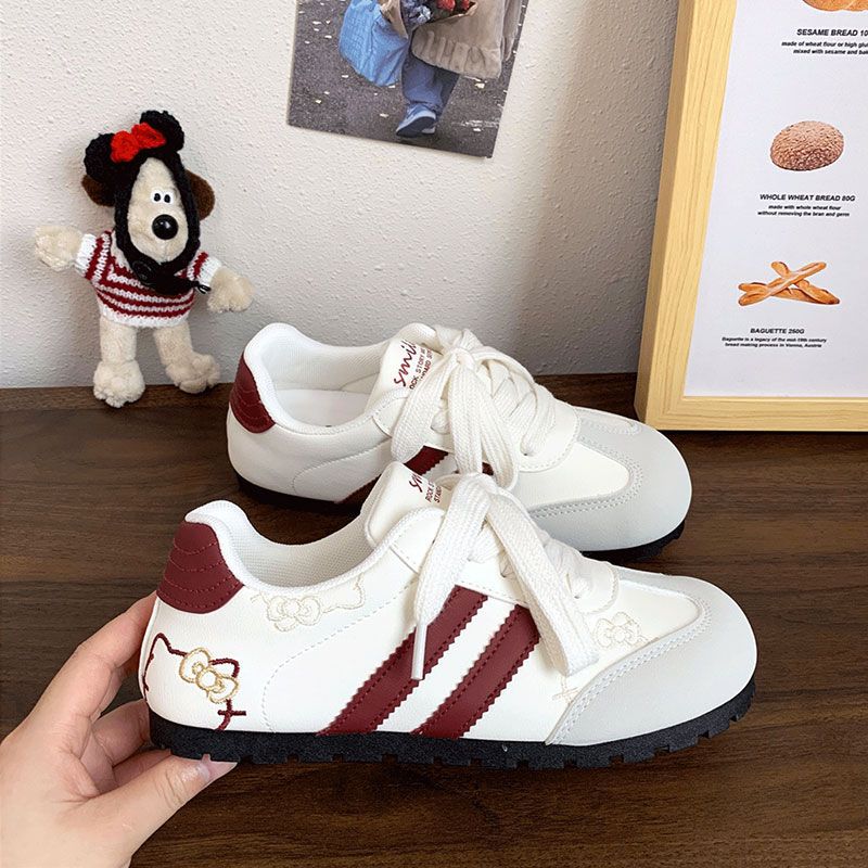 Женские кроссовки De Xun 2025 лето новые стильные нишевые корейские круглые носки студенческие спортивные повседневные белые туфли