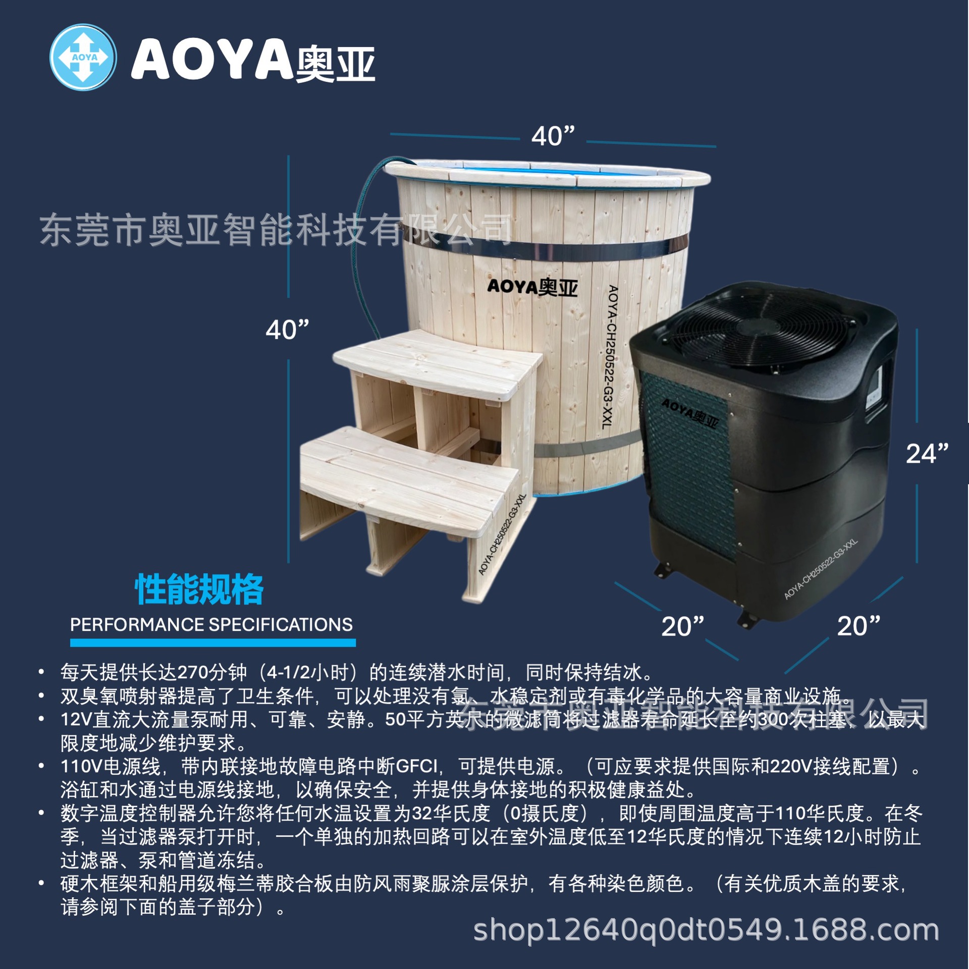 东莞市奥亚智能科技有限公司,主要开发设计运动员专用冰浴制冷设备浴缸,浴缸主要进口原木和不锈钢316材质组合合成,内部具有完善的冷却制冰系统,和低温水质循环系统,包括电压控制系统,手机控制系统和水质优化系统,完全按照运动员需求设计,