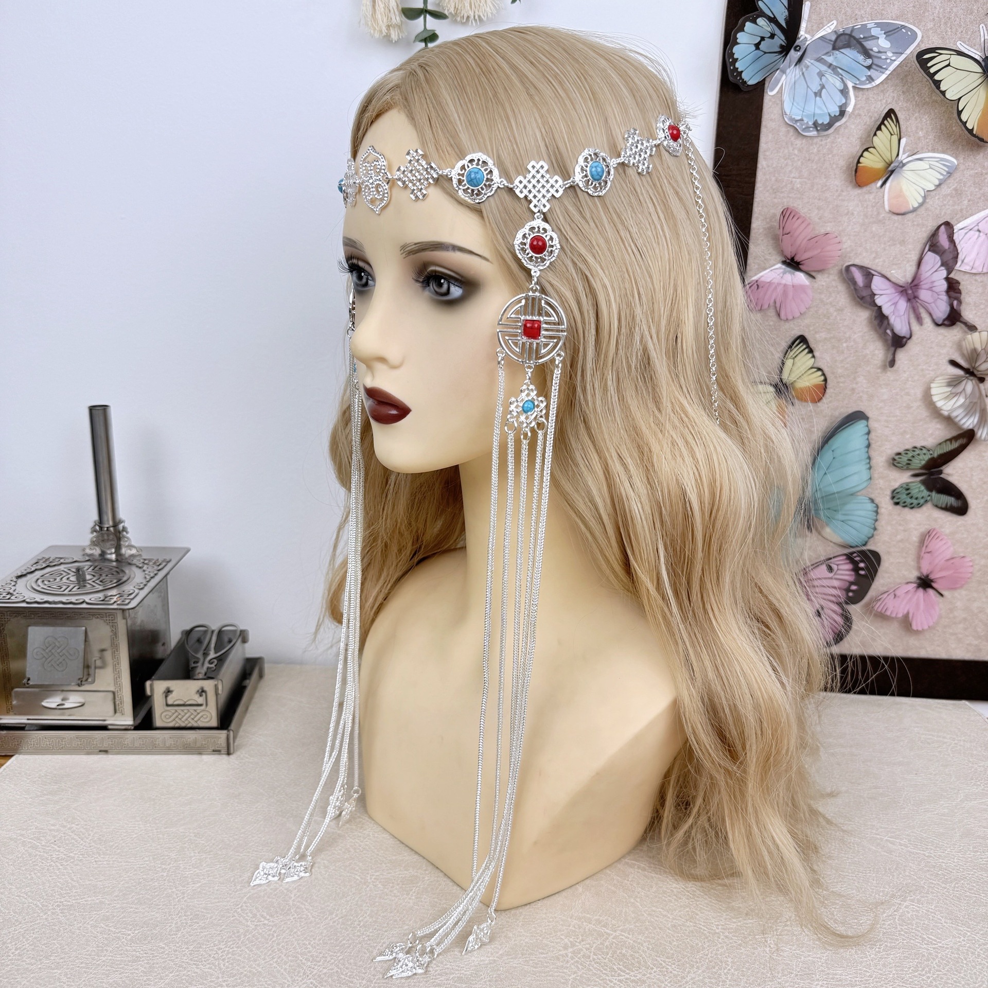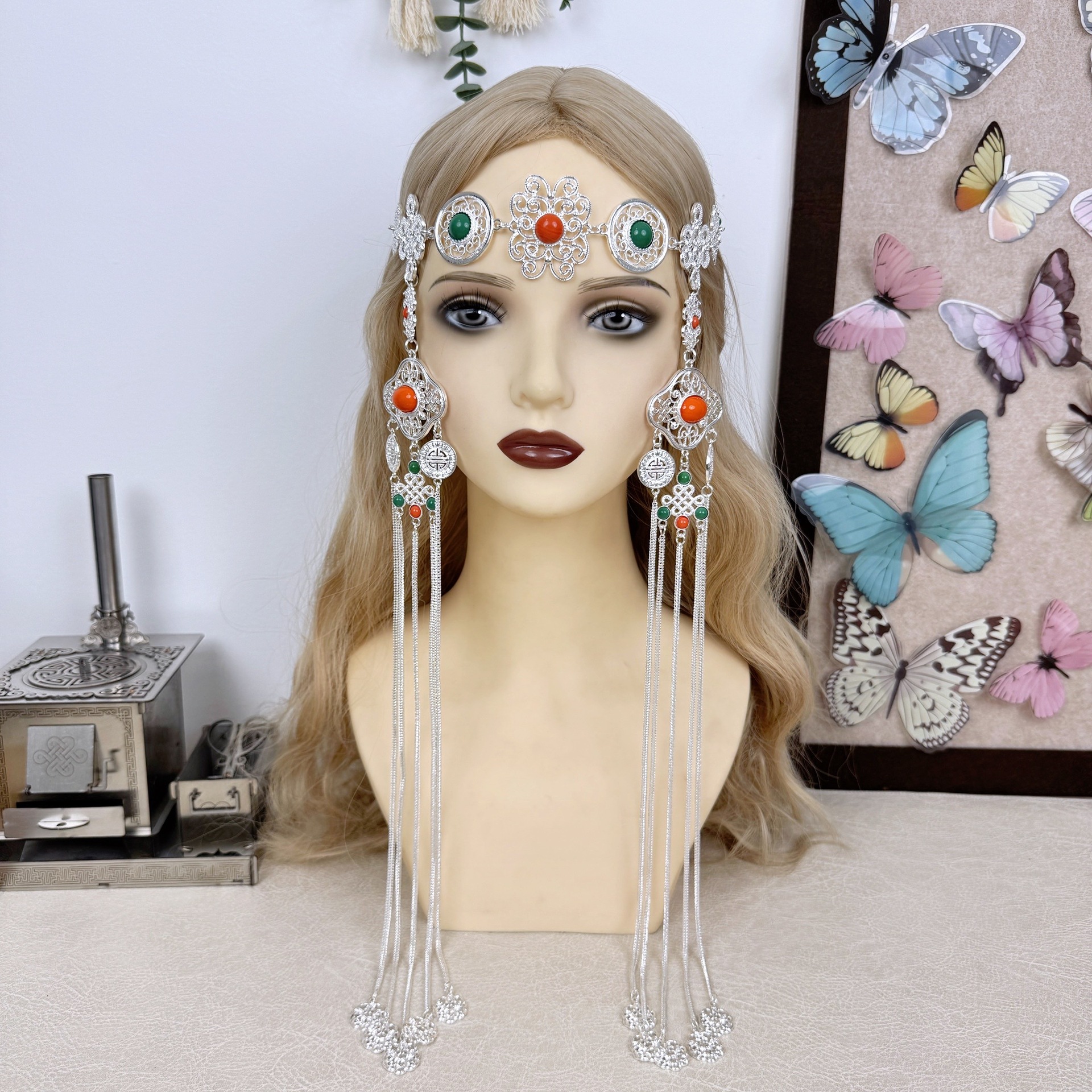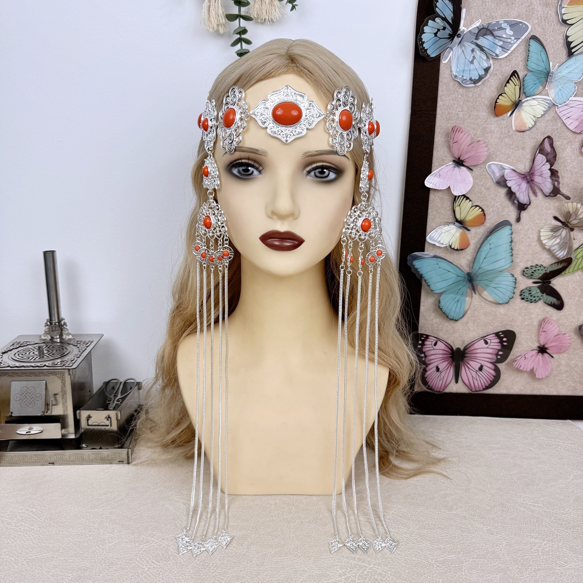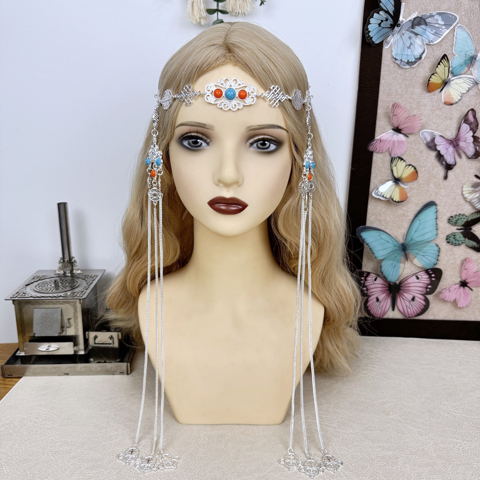 Монгольский головной убор с кисточками, повязка на голову, свадебный этнический стиль, аксессуары для волос, цепочка для волос, праздничные праздничные принадлежности