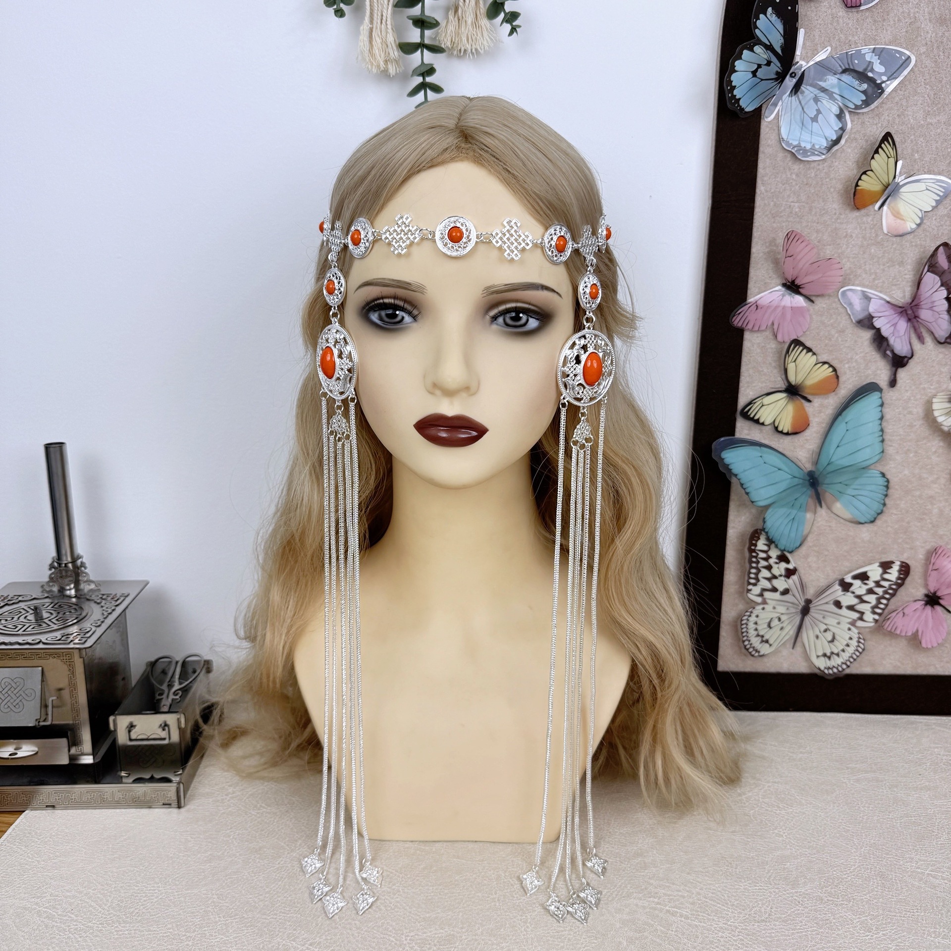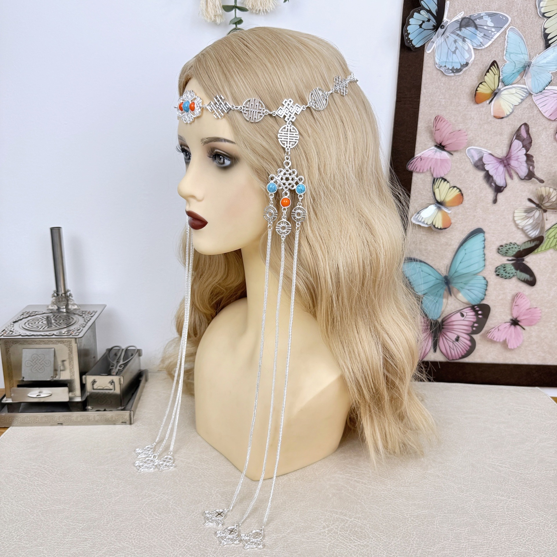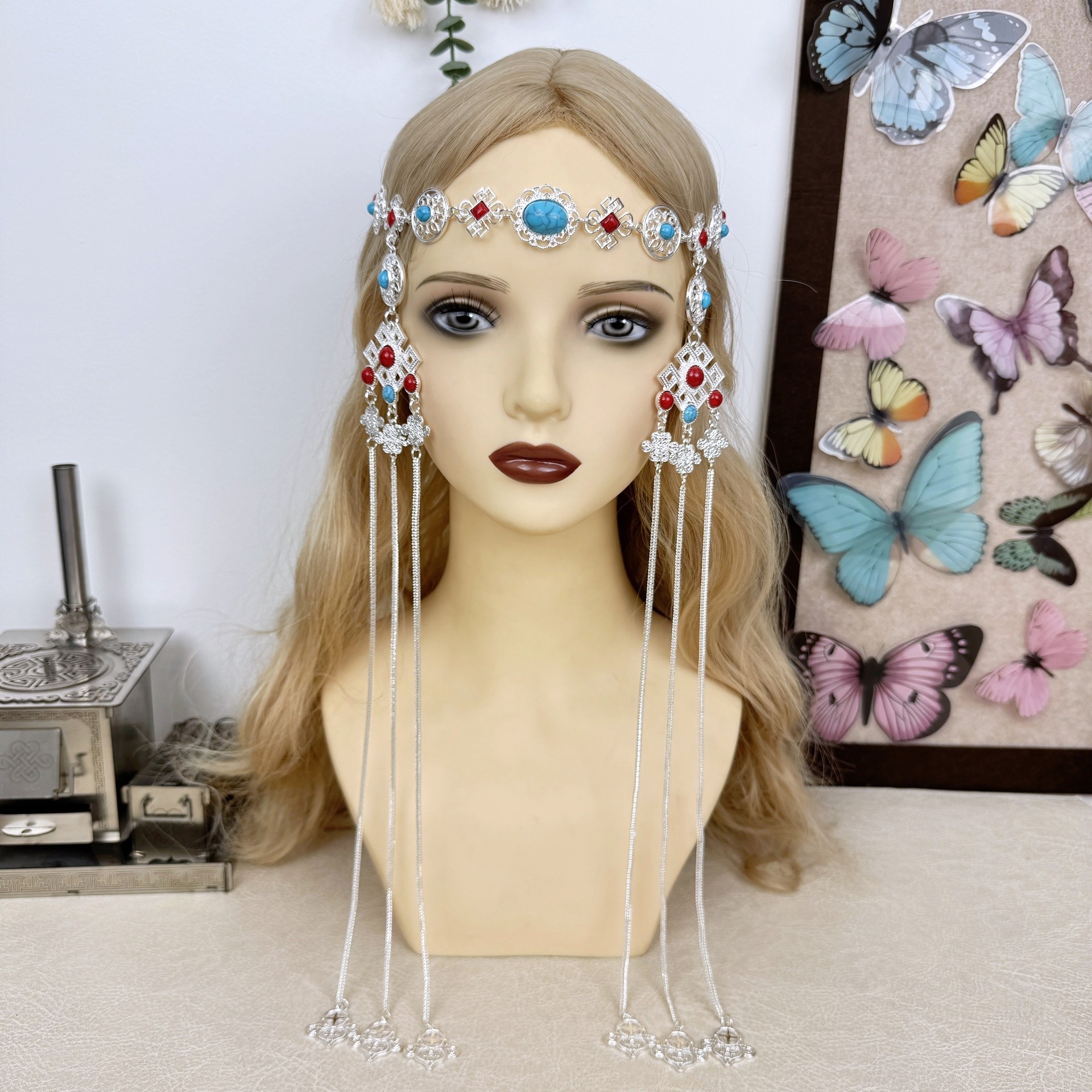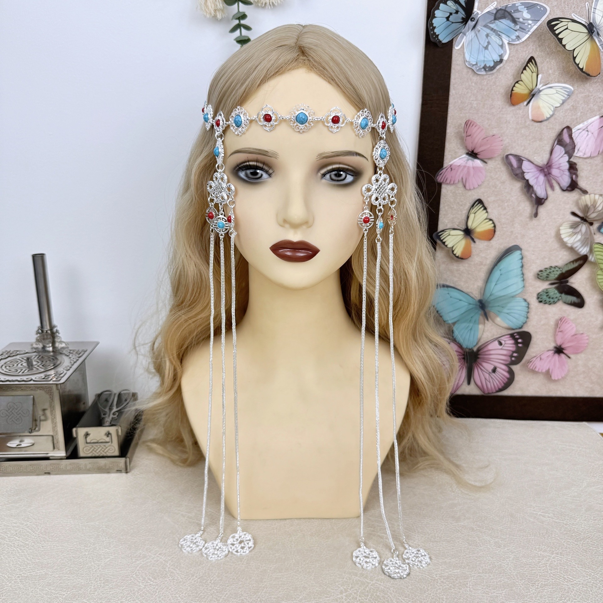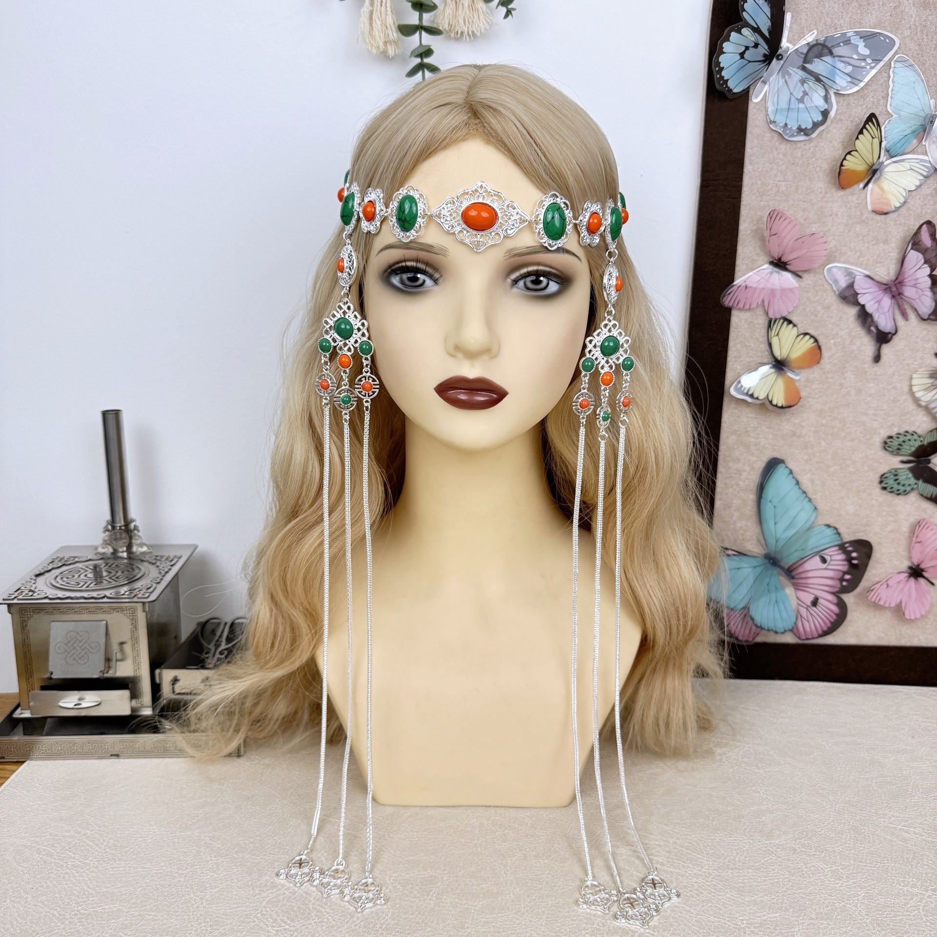 Монгольский головной убор с кисточками, повязка на голову, свадебный этнический стиль, аксессуары для волос, цепочка для волос, праздничные праздничные принадлежности
