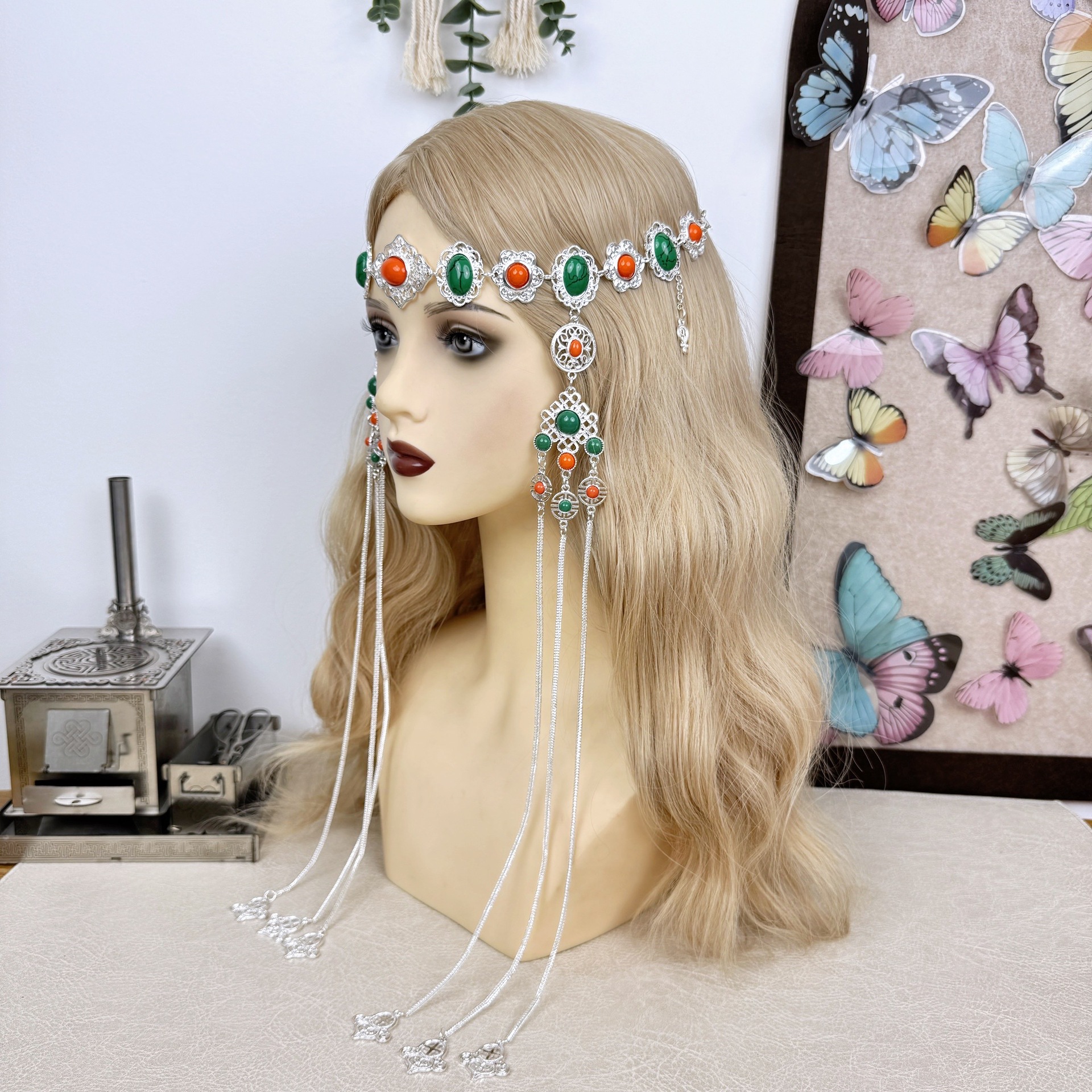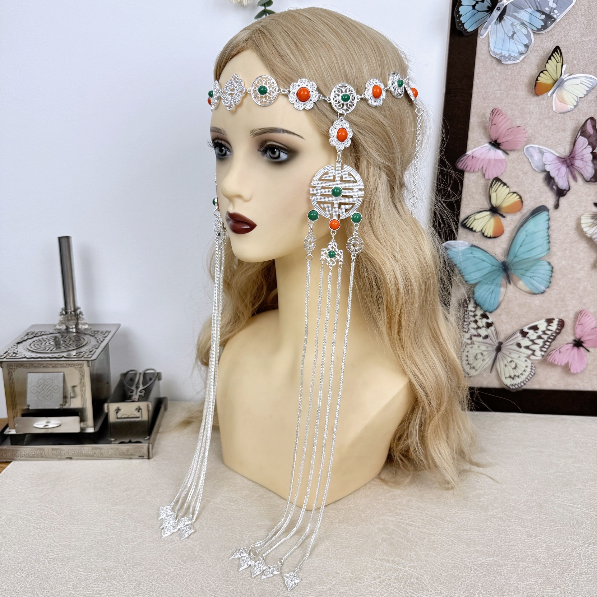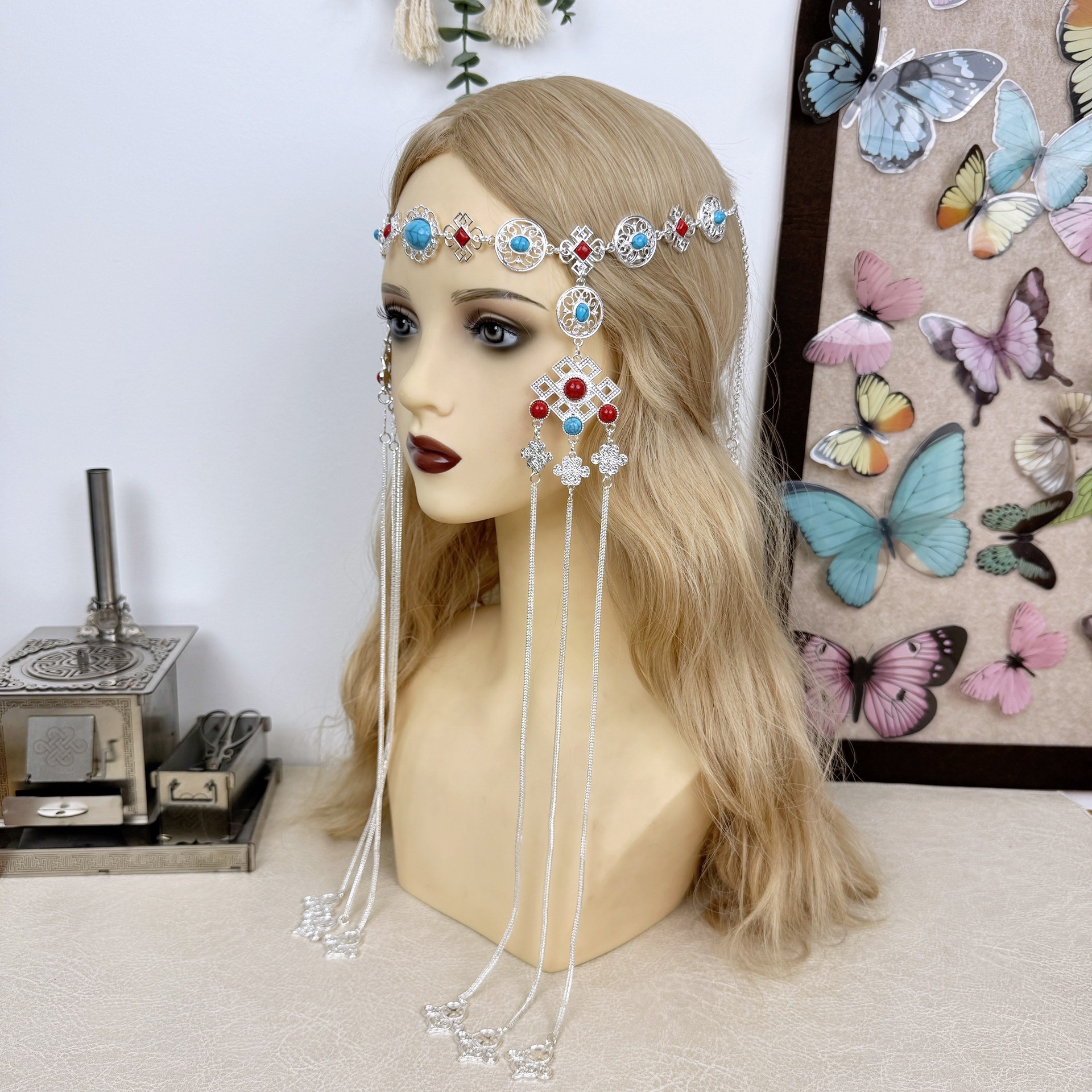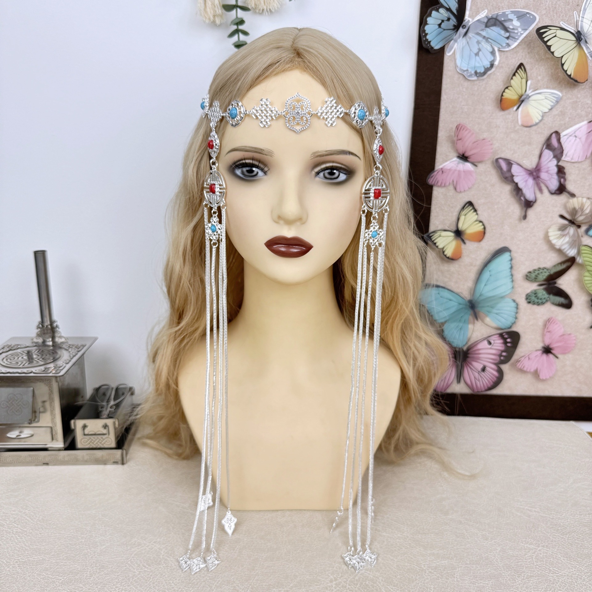 Монгольский головной убор с кисточками, повязка на голову, свадебный этнический стиль, аксессуары для волос, цепочка для волос, праздничные праздничные принадлежности