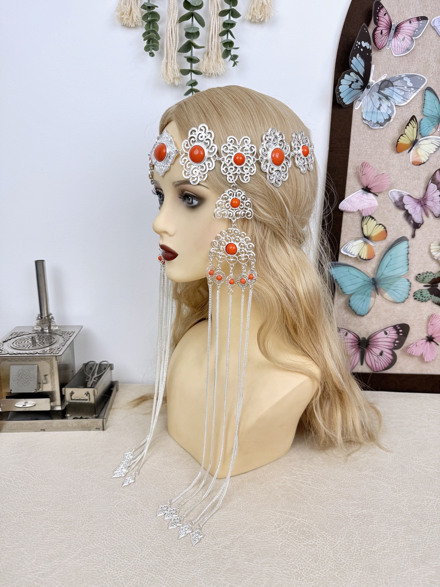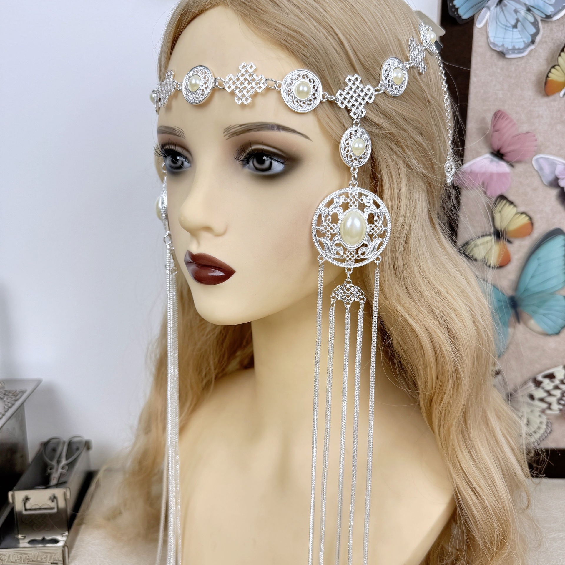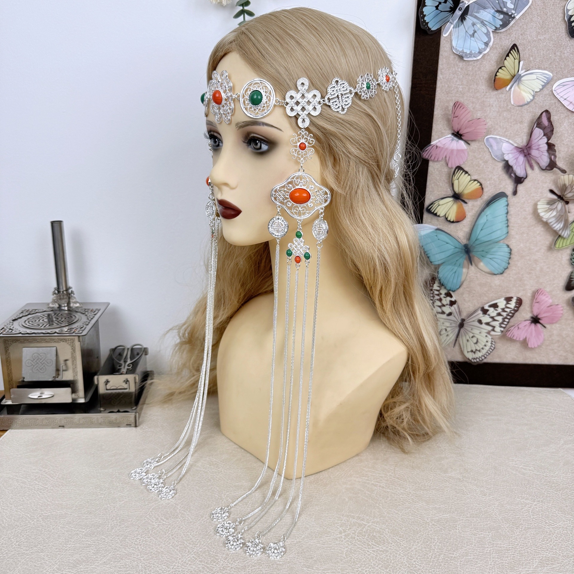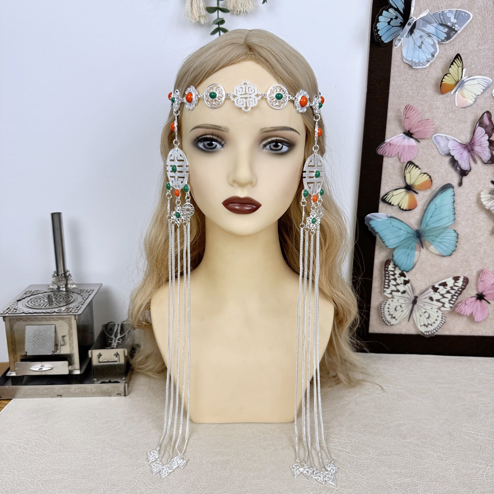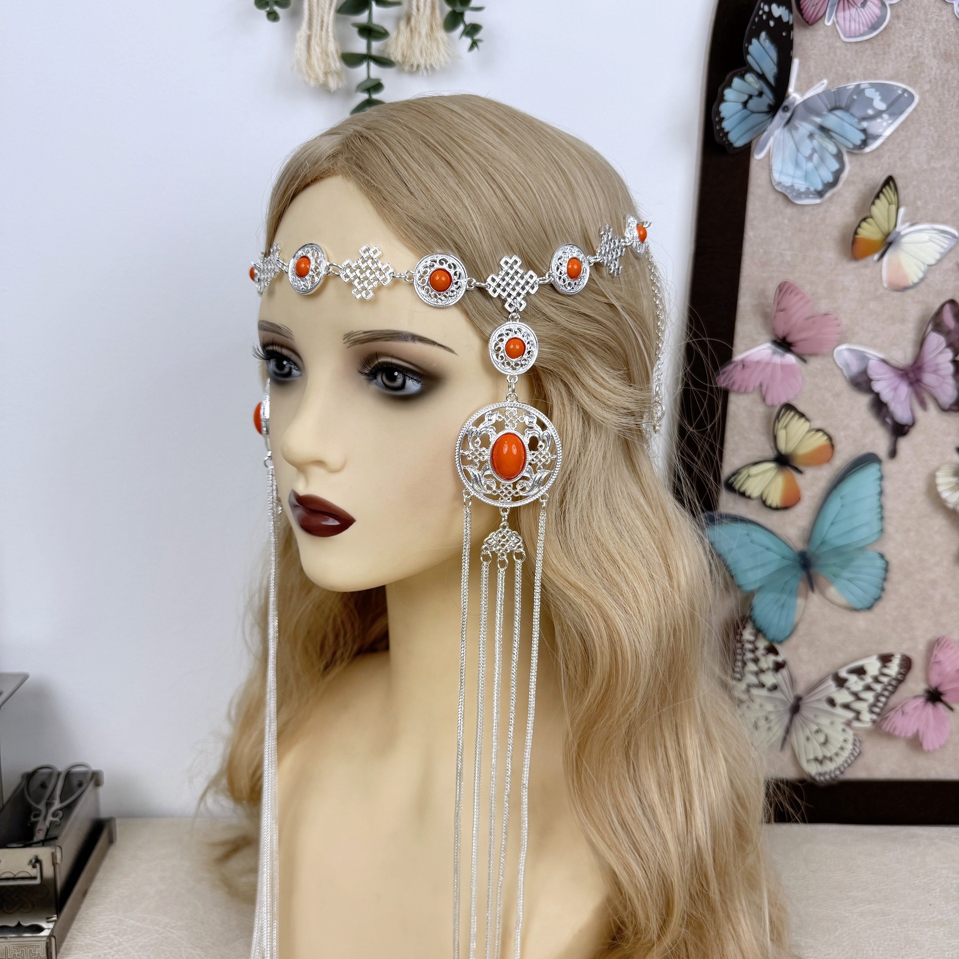 Монгольский головной убор с кисточками, повязка на голову, свадебный этнический стиль, аксессуары для волос, цепочка для волос, праздничные праздничные принадлежности