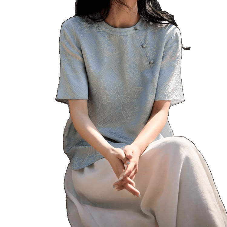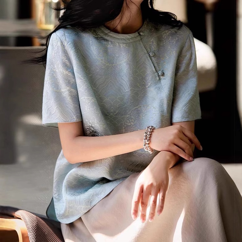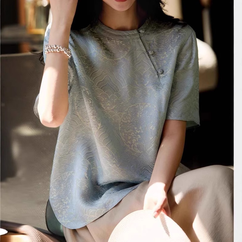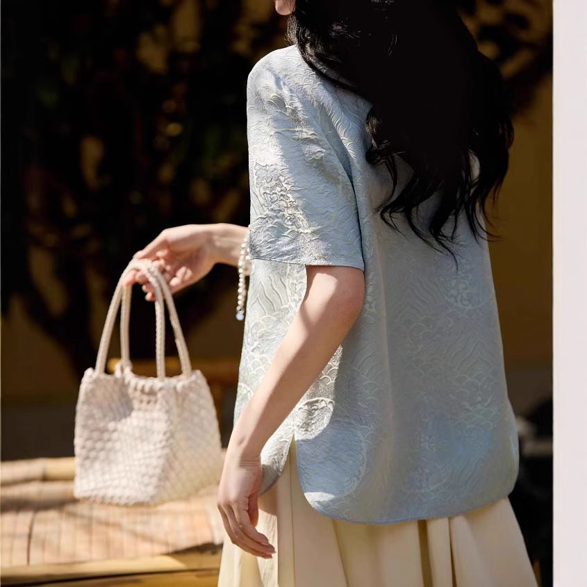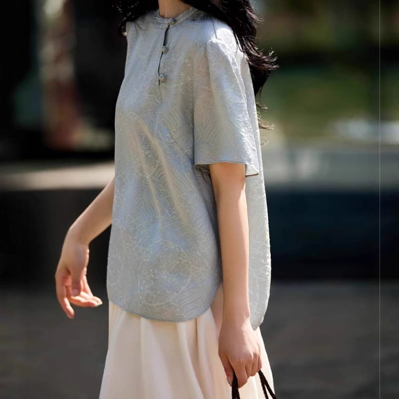 Маленькая рубашка Oriental Songya-Yunshu с жаккардовой косой планкой, свободный топ с короткими рукавами, лето 2025 г.