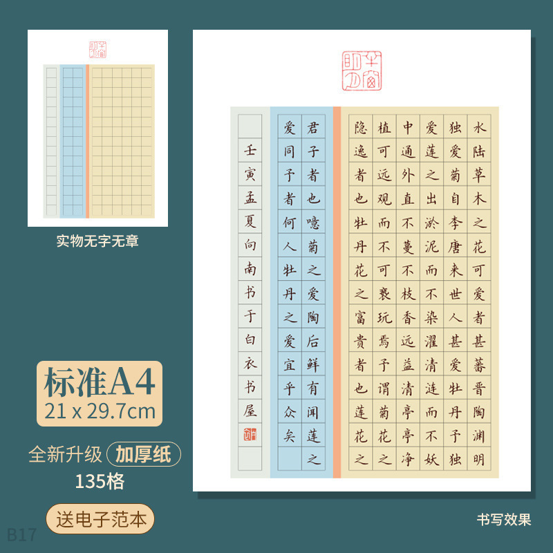 50 квадратов травяных насекомых; 56-сетчатая имитация монтажа; 56 сетка имитация шелка; 56 сетка античный лотос; 56 сетка сливовая; 70 сеток орхидей; 70 сетка розовый синий; 78 сетчатых чернил бамбук; 84 сетка бамбуковая; имбирно-желтый; Античная льняная бумага с сеткой 85; Китайская живопись 90-х годов; Хризантема из 98 сеток; 98-сетка с имитацией муаре; 98-сетчатая ландшафтная хижина; 100 квадратов Хели Хуаин; Рамка с имитацией красного цвета 102 сетки; 109-сетка, имитация кости оракула; Античная бумага с сеткой 112; 112 персонажей из бамбукового леса в сетке; 119-сеточная антикварная бумага для сращивания; 119 сетка Му Шань Фиолетовый; Карта имитации золота с 120 сетками; 120 кадров древних пейзажных картин; 120 сетка Ru фарфор лазурный; Крепление страницы альбома с имитацией 126 кадров; Антикварный альбом с 128 сетками; 135 сетка трехцветный минимализм; Классический узор дракона с сеткой 135; Бумага имитация льна с зеленой сеткой 135; 136 квадратов Предисловие к павильону короля Тенг; голубое озеро; 144 сетка бронза; хаки; лимонно-желтый; голубой; 56 знаменитых картин, сохранившихся с древних времен; 70 знаменитых картин, передаваемых из древних времен; Знаменитые картины, передаваемые из поколения в поколение 90 кадров; 105 сеток знаменитых картин, переданных из древних времен; 108 сеток знаменитых картин, переданных из древних времен; Знаменитые картины, передаваемые из древних времен 119 квадратов; 120 знаменитых картин, сохранившихся с древних времен; 132 сетки знаменитых картин, передаваемых из древних времен; Черный фон 84 сетки Пейзаж Поэзия; Черный фон 112 сеточных плиток; черный; ярко-желтый; Армейский зеленый; 20 квадратов Чунхэ Цзинмин; 20 квадратов летающей бабочки-пиона; 28 решеток цветов лотоса; 28-сетчатая горная белка; 40 кадров горных облаков; 40 квадратов «Сливовый цвет» Сорока; 56 квадратов цвета сливы; желтый; шампанское; светло-желтый; 56-сетчатое старое здание [красное]; 135 сетка Великая стена [красная]; Антикварная крафт-бумага без рамки; Безрамочный антикварный двухцветный монтаж.; Без рамки вертикальная старинная бумага; Антикварное сращивание без рамы; абрикос; Белый цвет; красный; бордовый; Цвет лотоса
