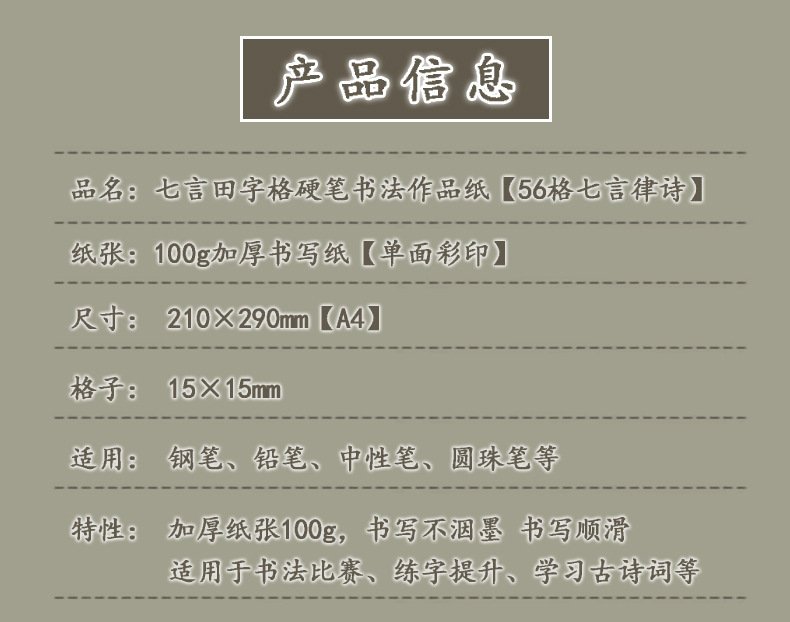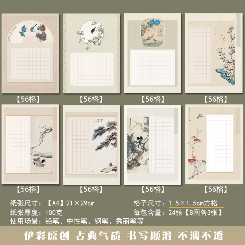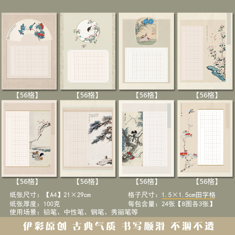 A4, древний стиль, бумага для работы с жесткой ручкой, каллиграфия, 56 сеток, полевые сетки, семизначная поэзия, студенческая бумага для соревнований для взрослых, бумага для практики письма