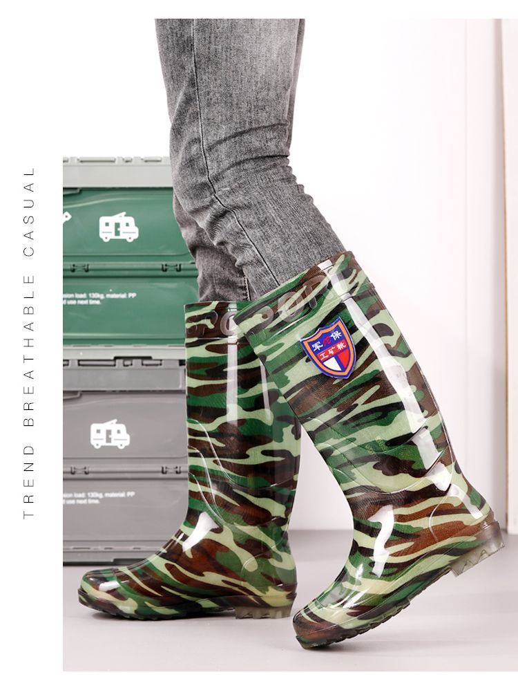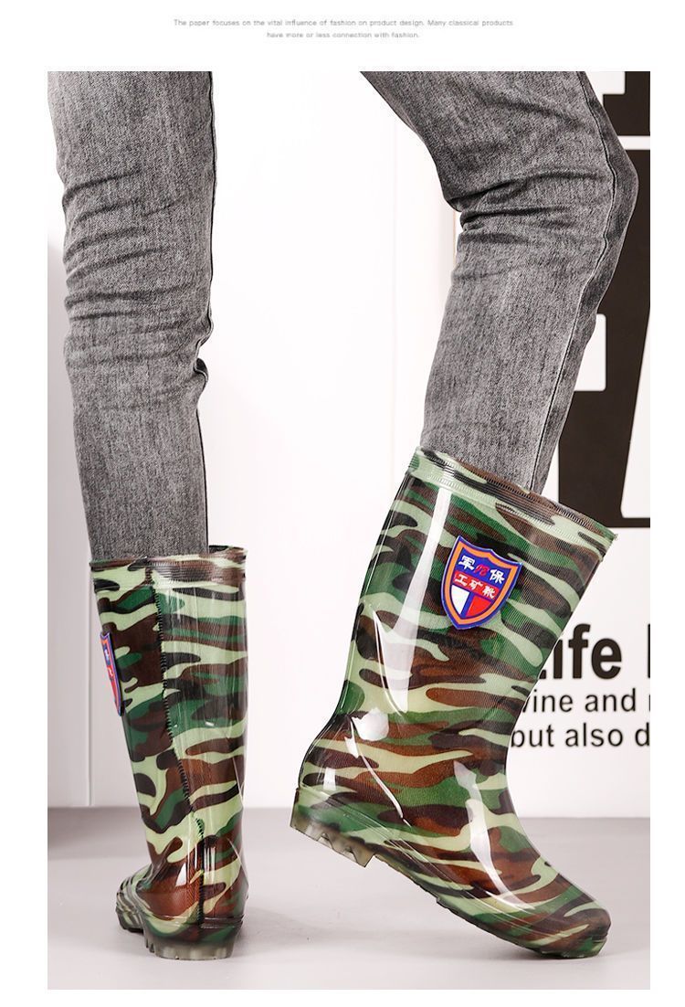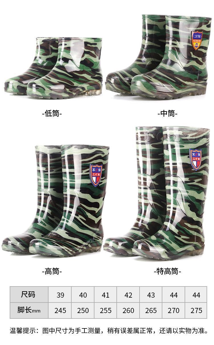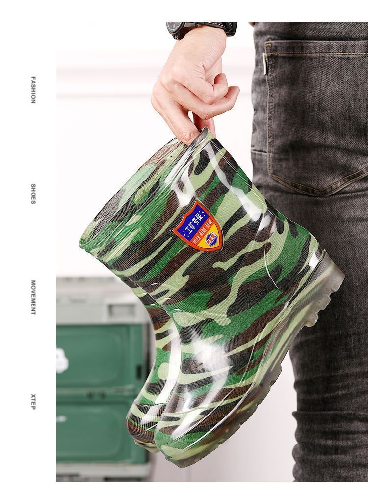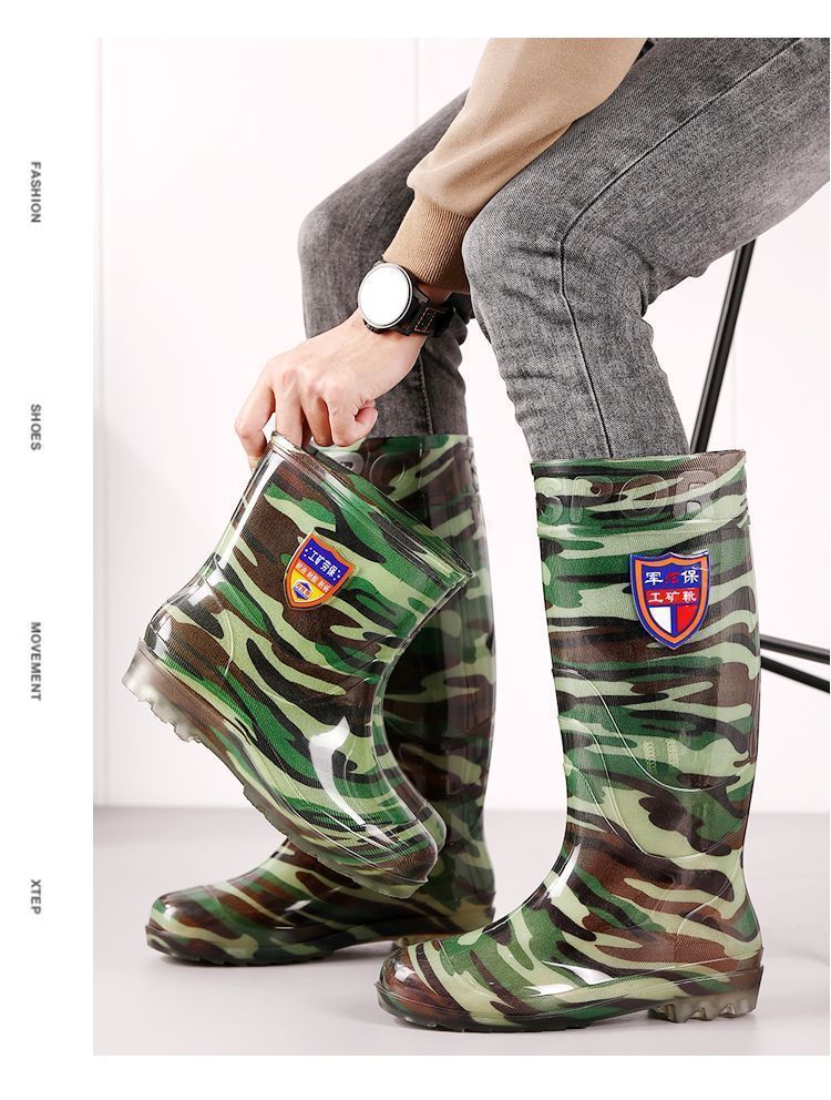 Дождевые сапоги, кухонные резиновые сапоги, резиновая обувь, водонепроницаемая обувь для воды, камуфляжная нескользящая толстая подошва для стройплощадки, мужская износостойкая четырехсезонная сухожильная обувь для автомойки