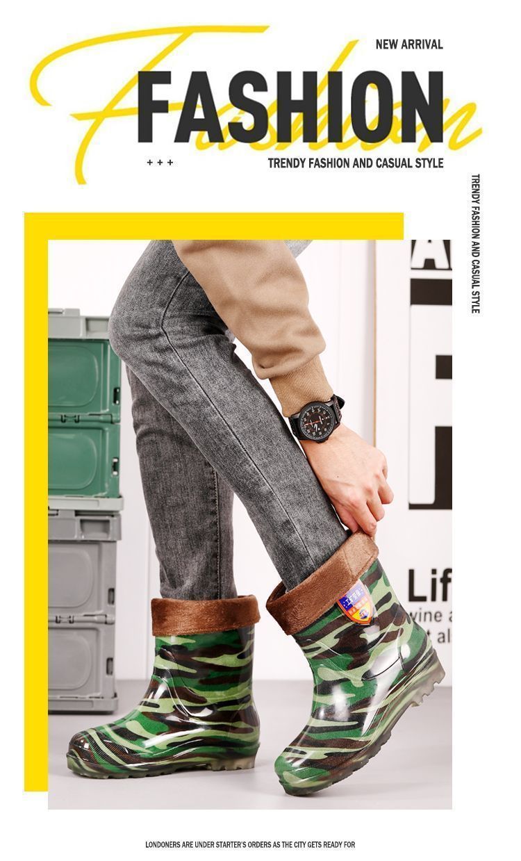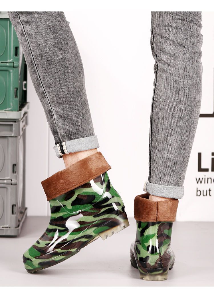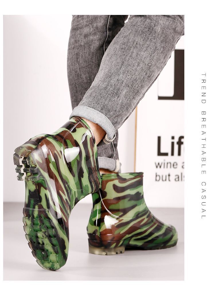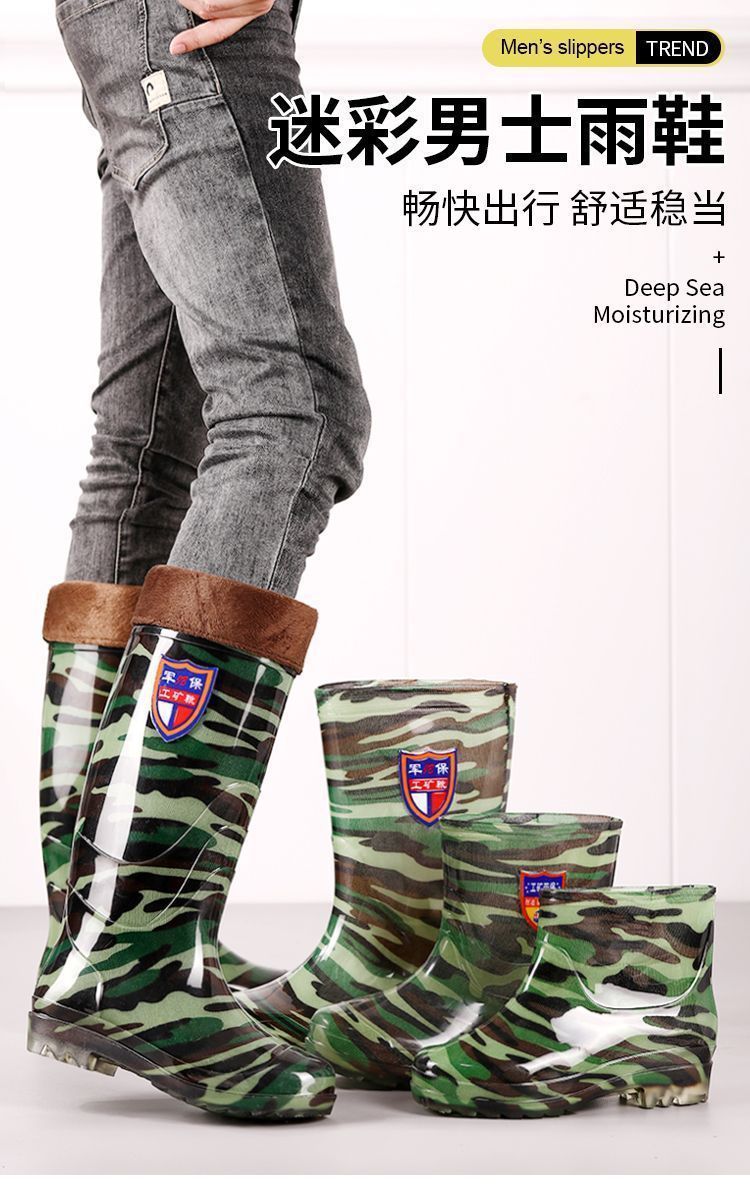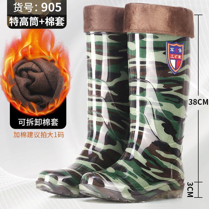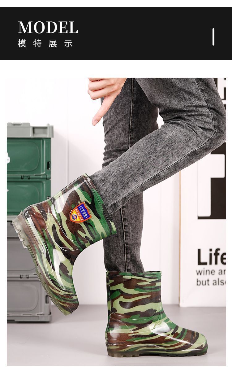Дождевые сапоги, кухонные резиновые сапоги, резиновая обувь, водонепроницаемая обувь для воды, камуфляжная нескользящая толстая подошва для стройплощадки, мужская износостойкая четырехсезонная сухожильная обувь для автомойки