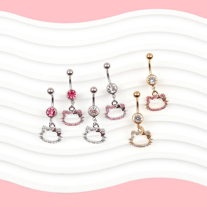 Кросс-бордерное украшение для пупка Hello Kitty с золотым кольцом, инкрустированным стразами, в виде мультяшного кота KT, сексуальный аксессуар для пирсинга пупка.