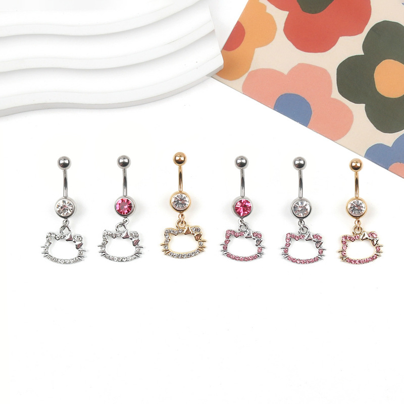 Пуповина для кошки KT с золотым белым бриллиантом; Золотое розовое бриллиантовое пуповина KT Cat; Кольцо для пуповины White Diamond KT Cat # 1; Кольцо для пуповины White Diamond KT Cat # 2; Розовое бриллиантовое пуповина для кошек KT # 1; Розовое бриллиантовое пуповина для кошек KT # 2