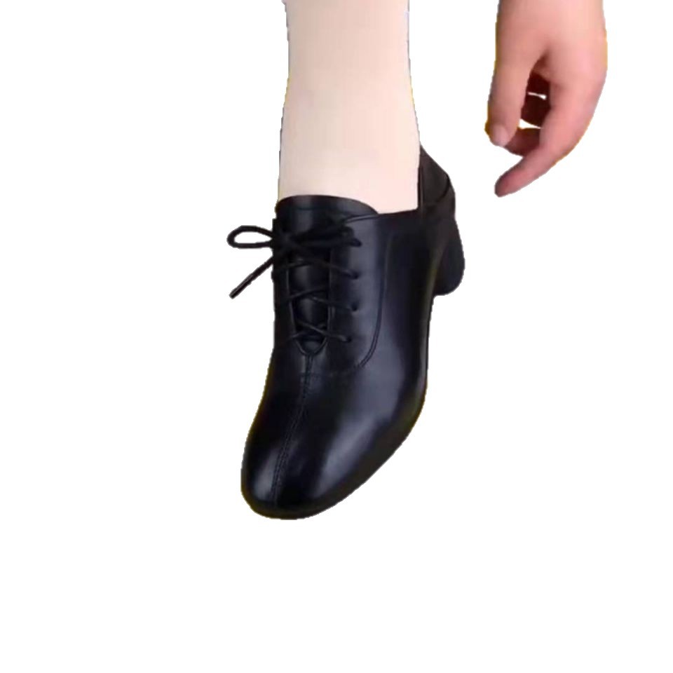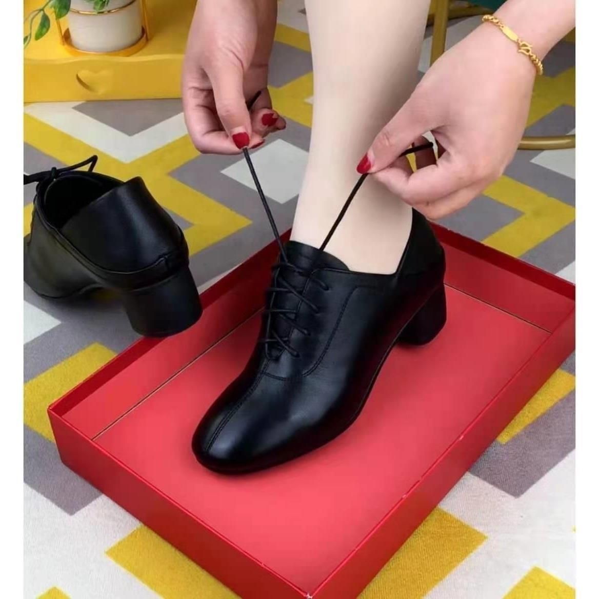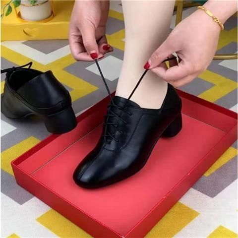 Женские туфли на среднем каблуке 2025 весна-осень шнуровка простые мягкая подошва для женщин среднего возраста на толстом каблуке