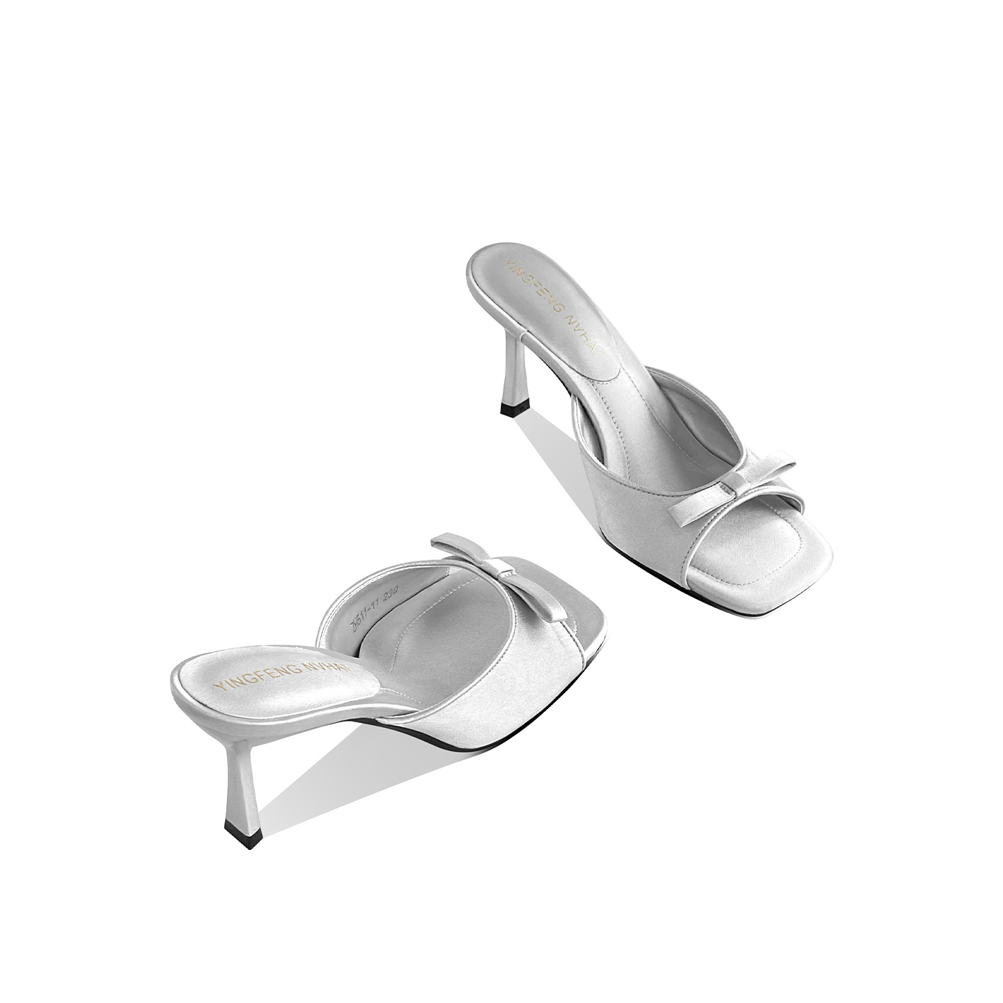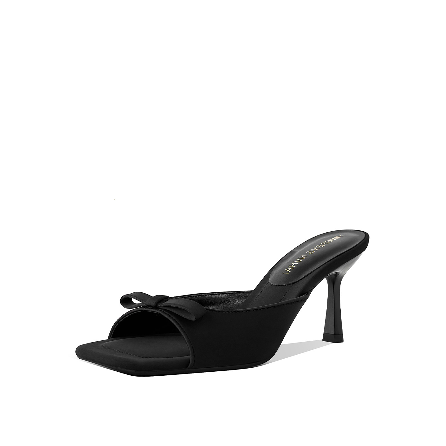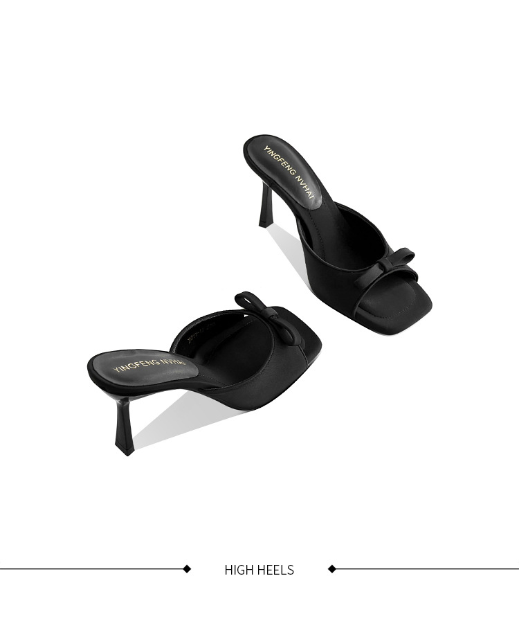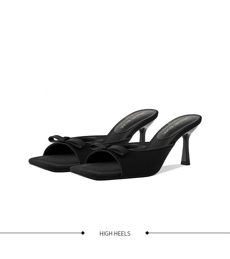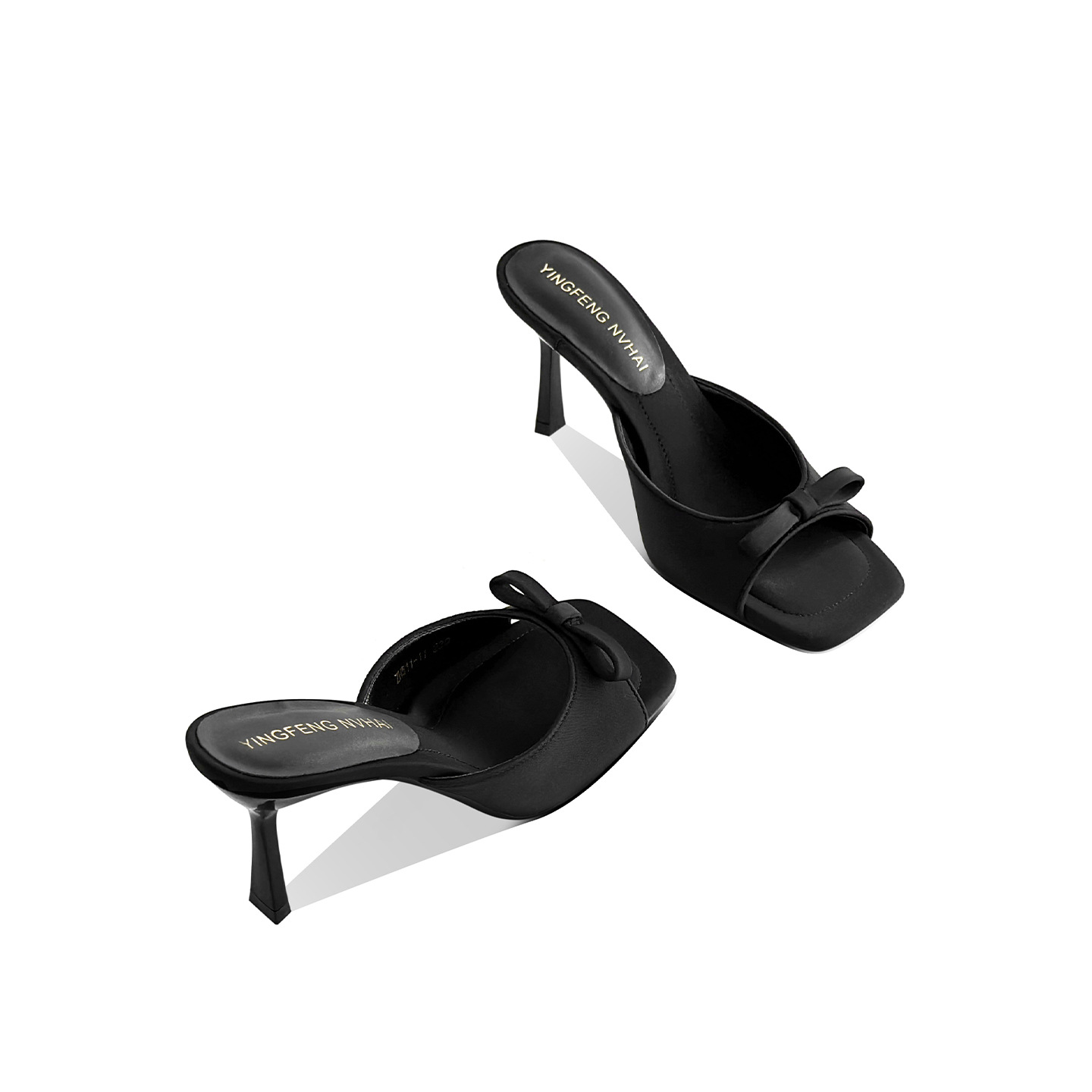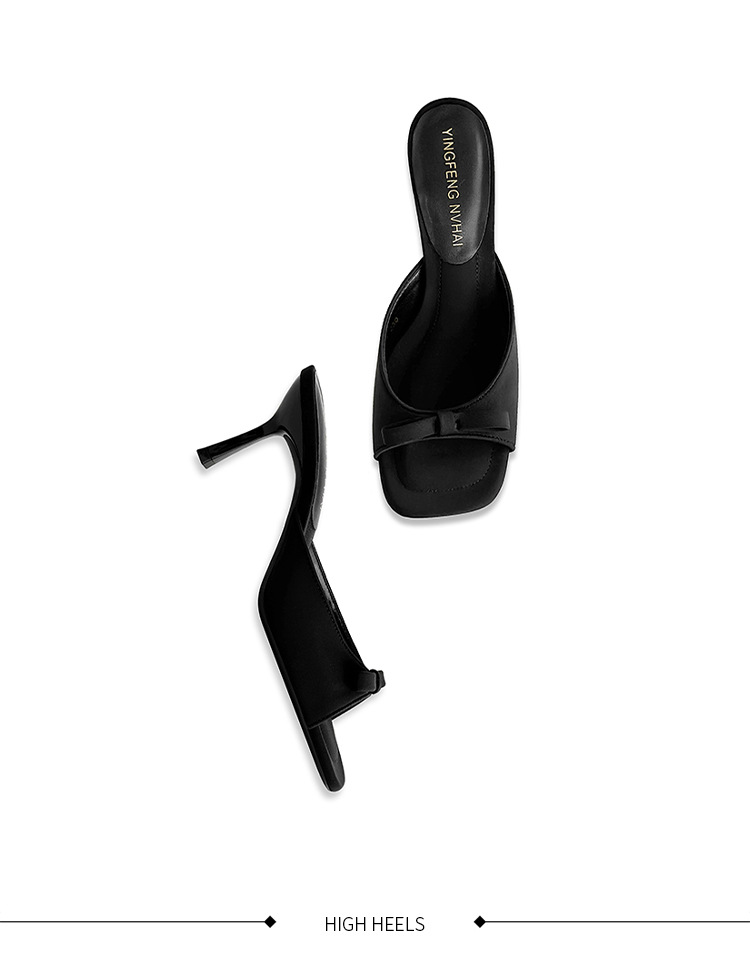 [Готовый склад] Нишевые черные туфли на высоком каблуке, босоножки с бантом, сказочные туфли, новый модный стиль 2025 года для верхней одежды.
