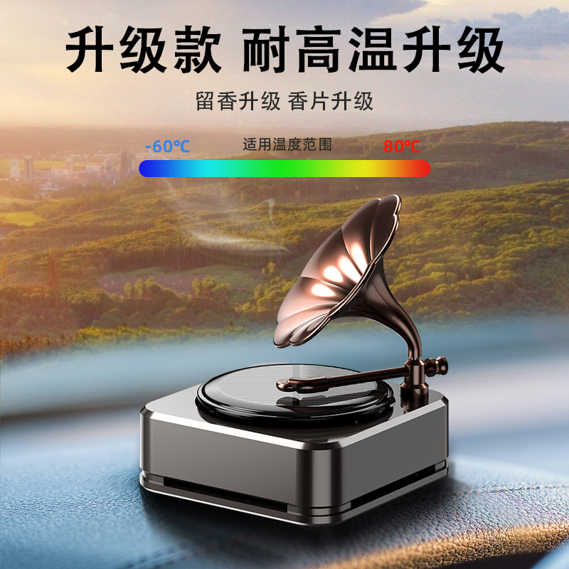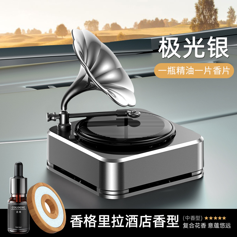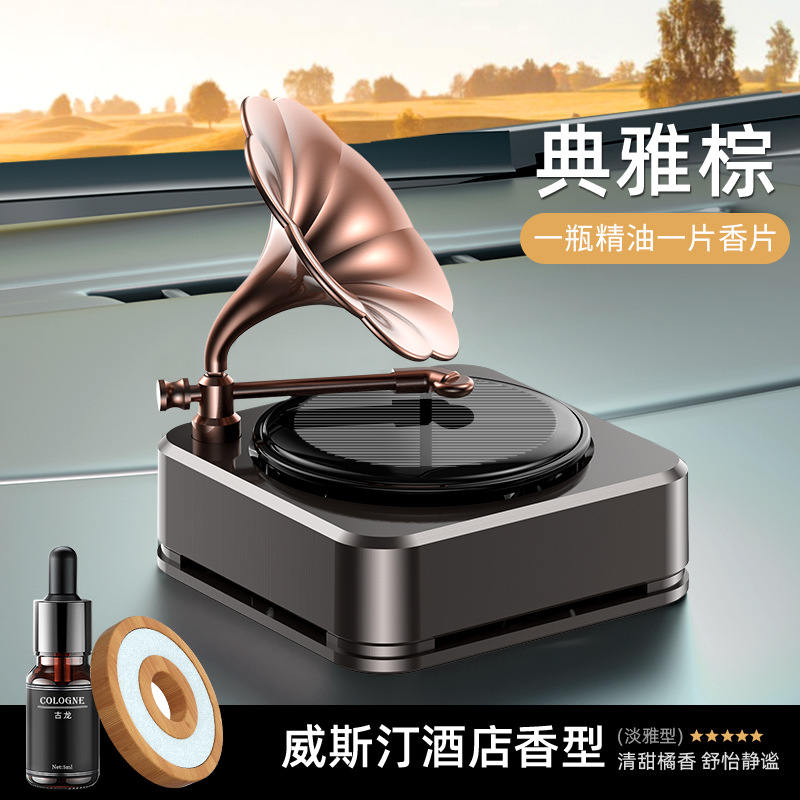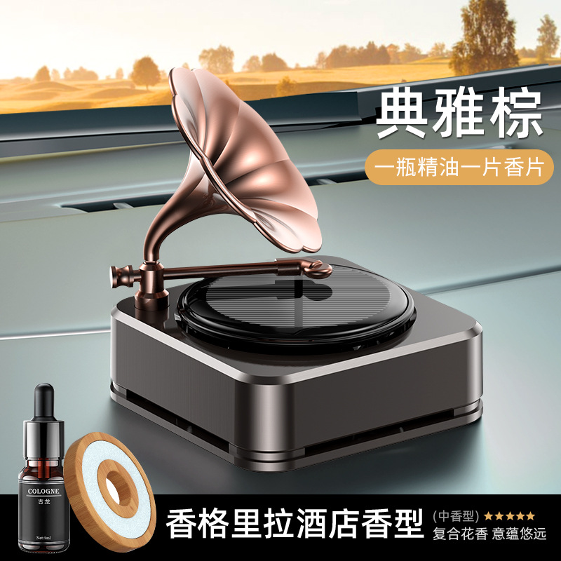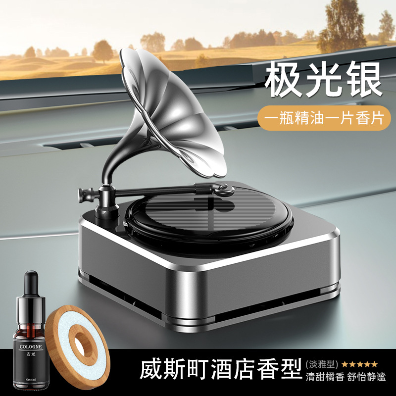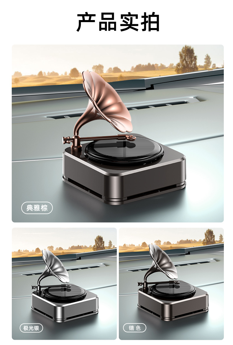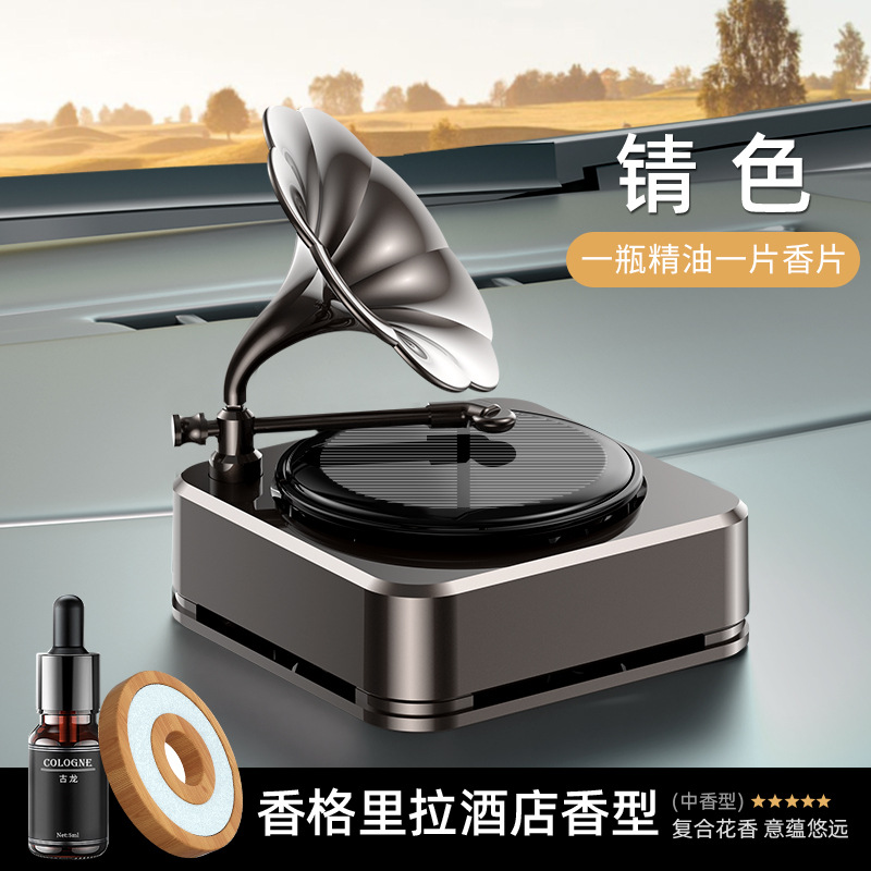 Автомобильный солнечный вращающийся парфюмерный автомобильный антикварный граммофон, ароматерапия, автомобильные бесшумные креативные декоративные украшения