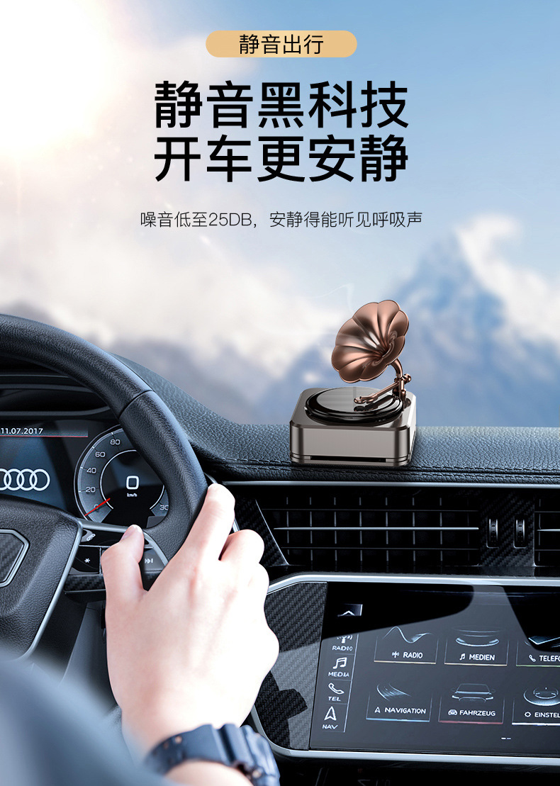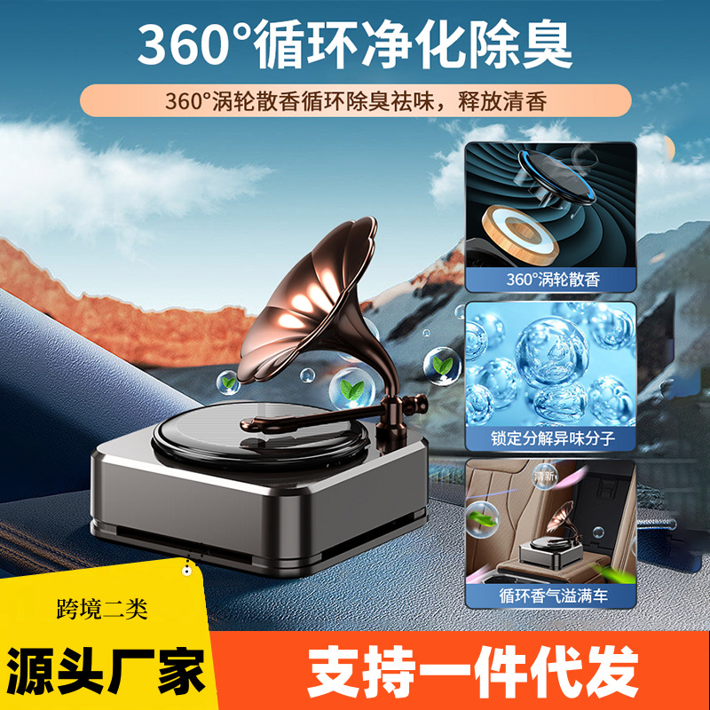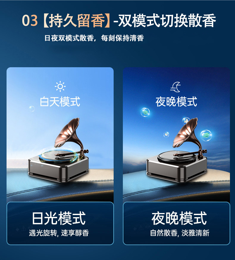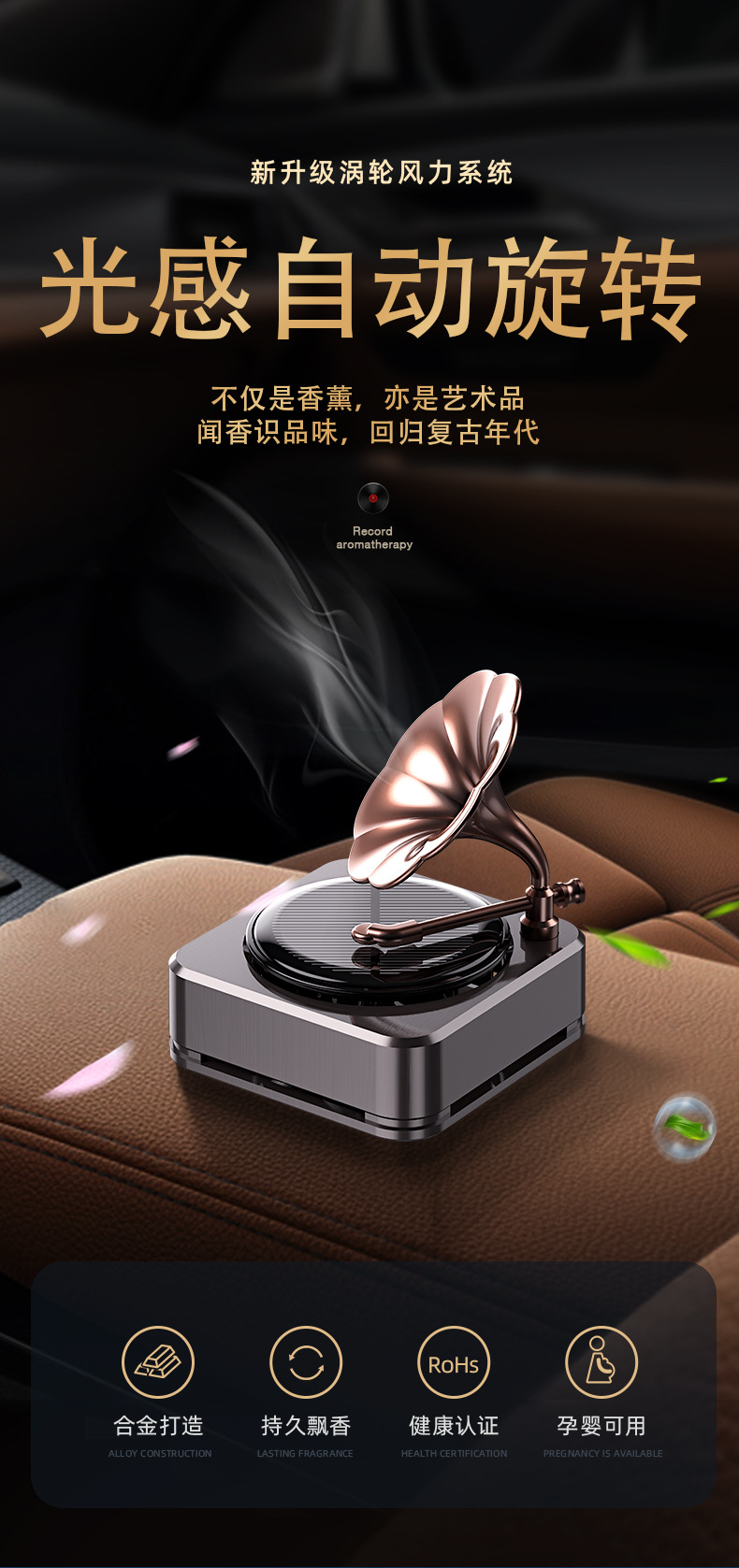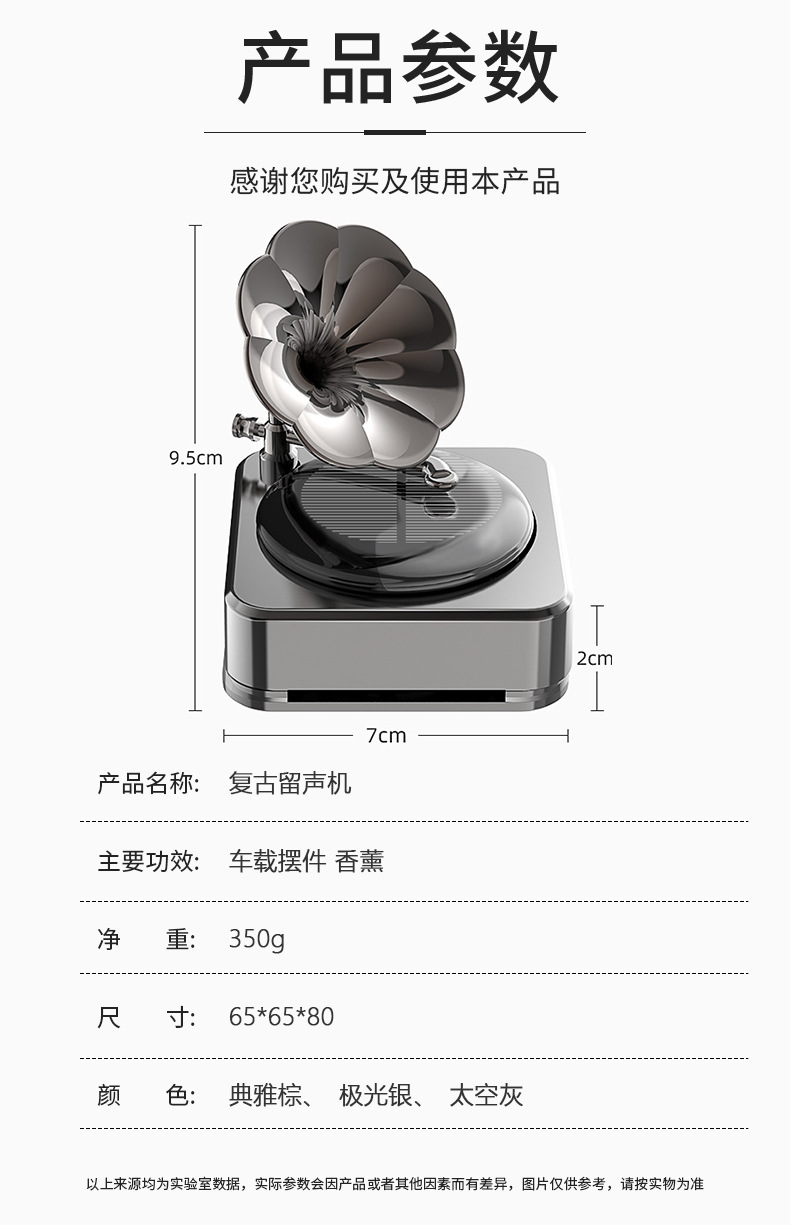 Автомобильный солнечный вращающийся парфюмерный автомобильный антикварный граммофон, ароматерапия, автомобильные бесшумные креативные декоративные украшения