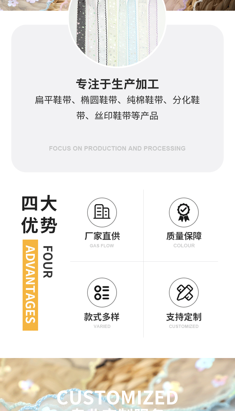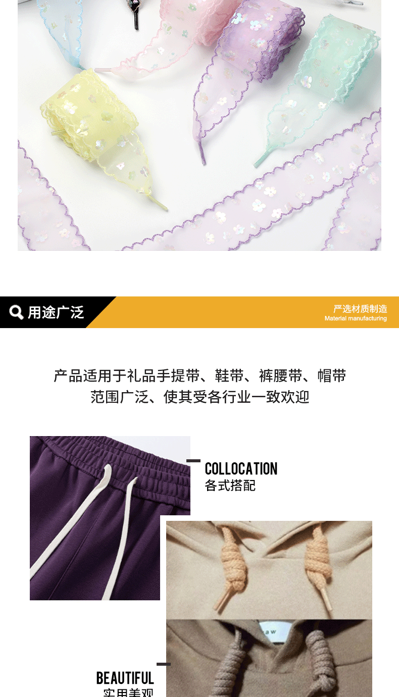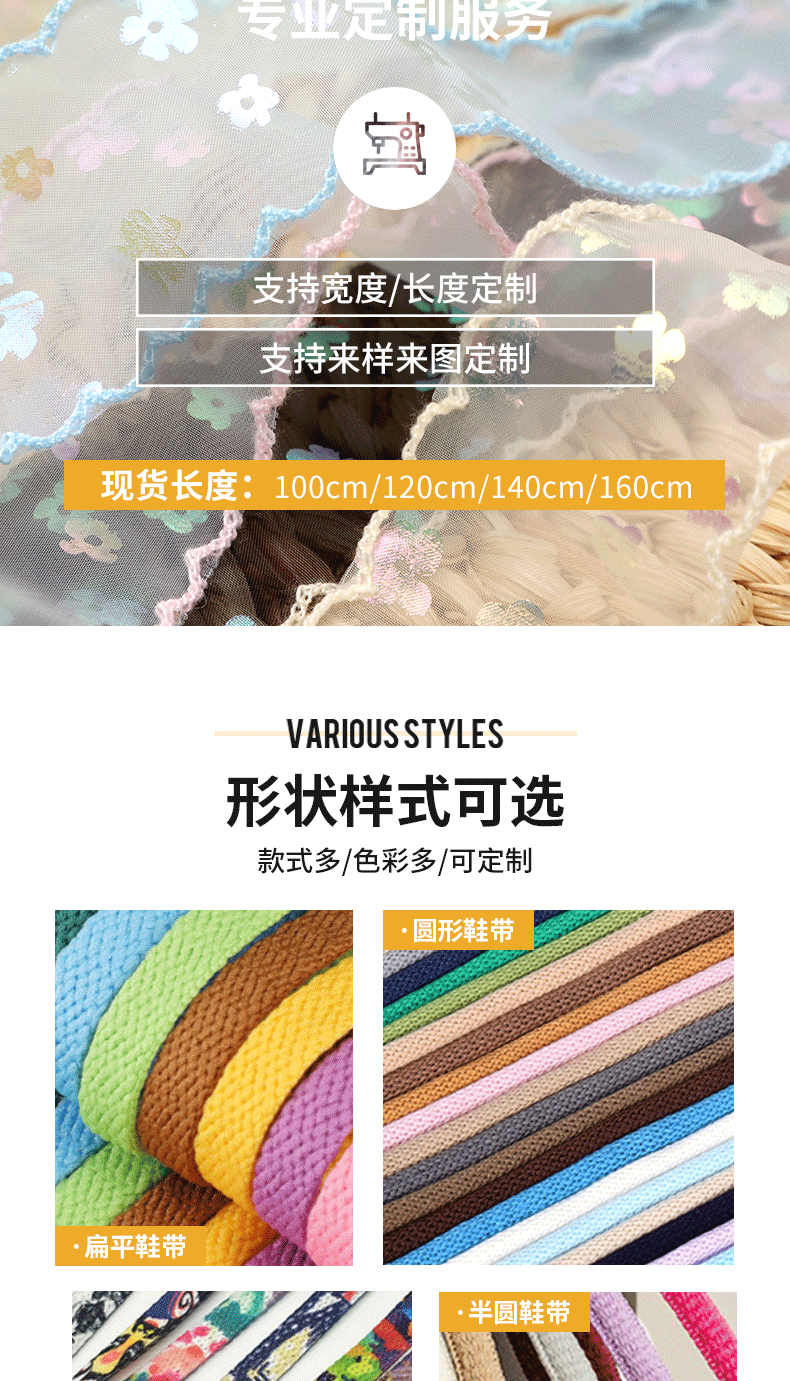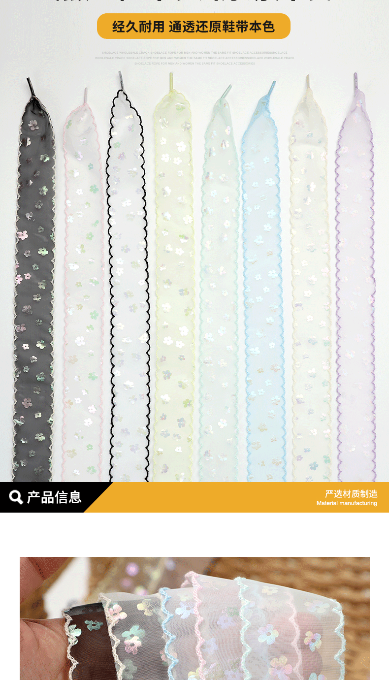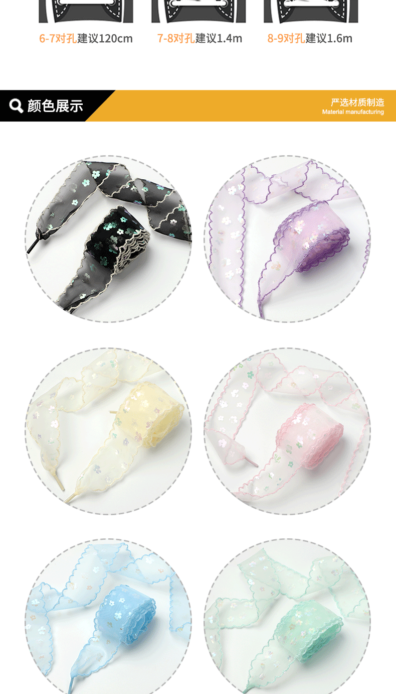 Белые разноцветные кружевные шнурки; Черные разноцветные кружевные шнурки; Абрикосовые разноцветные кружевные шнурки; Розовые разноцветные кружевные шнурки; Синие разноцветные кружевные шнурки; Фиолетовые разноцветные кружевные шнурки; Мятно-зеленые разноцветные кружевные шнурки; Желтые разноцветные кружевные шнурки