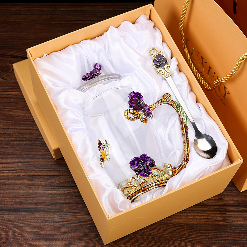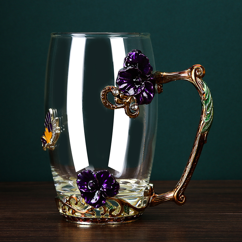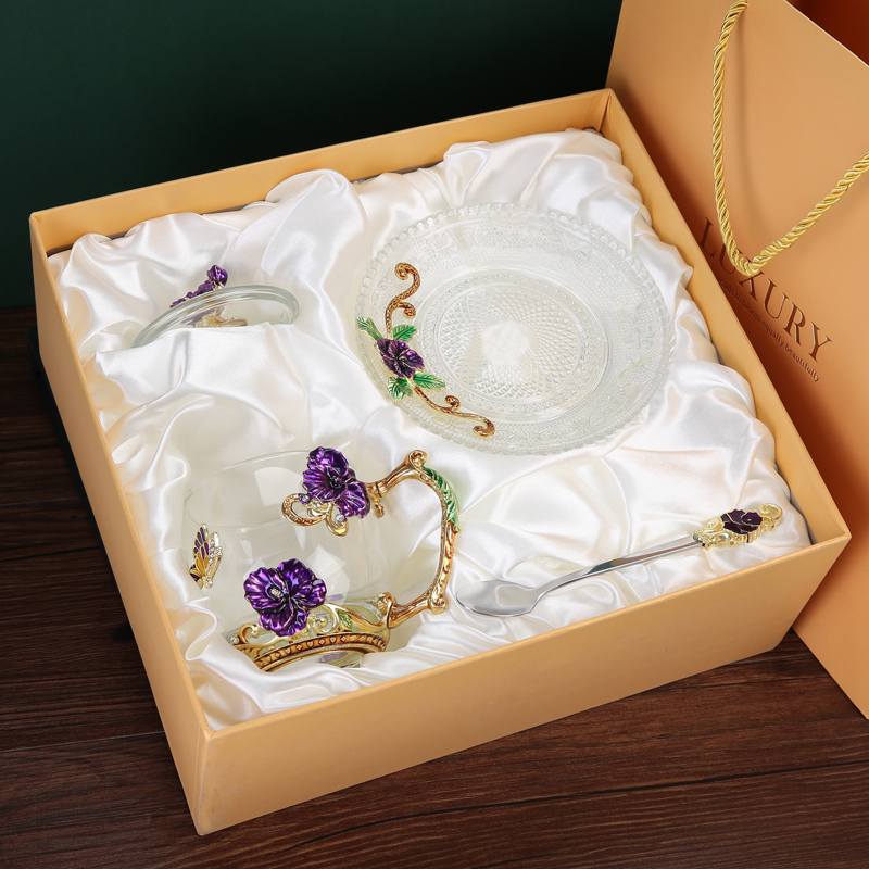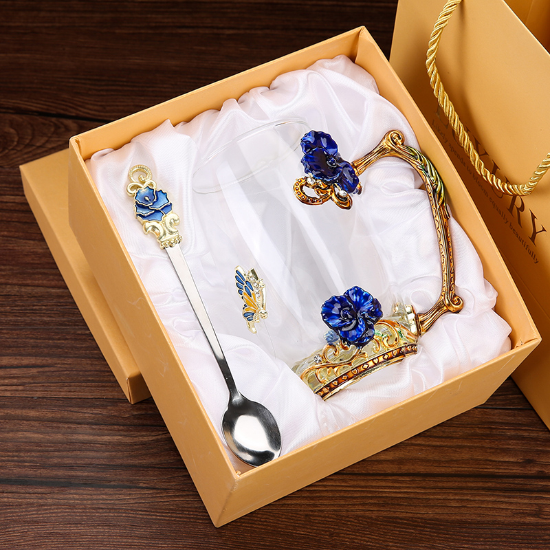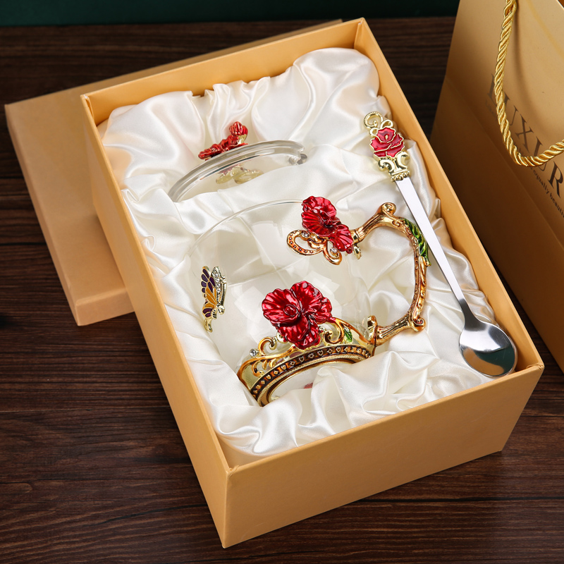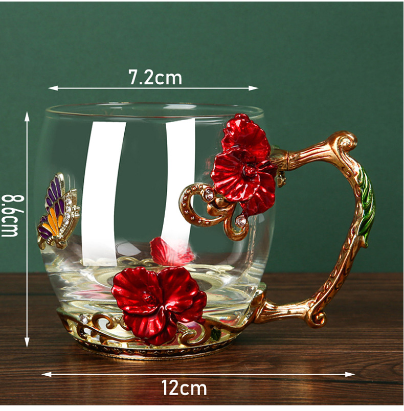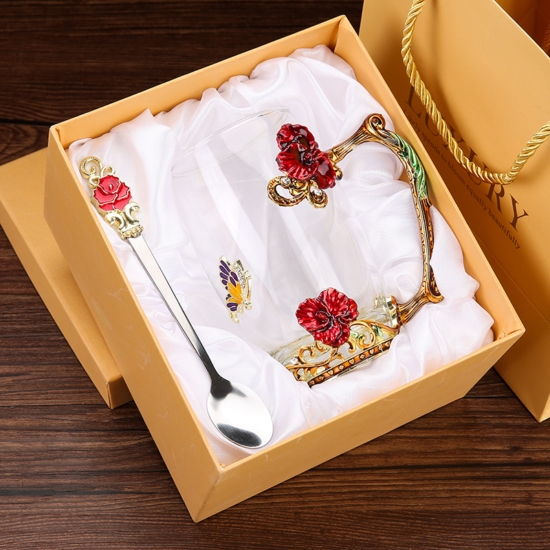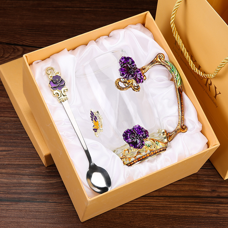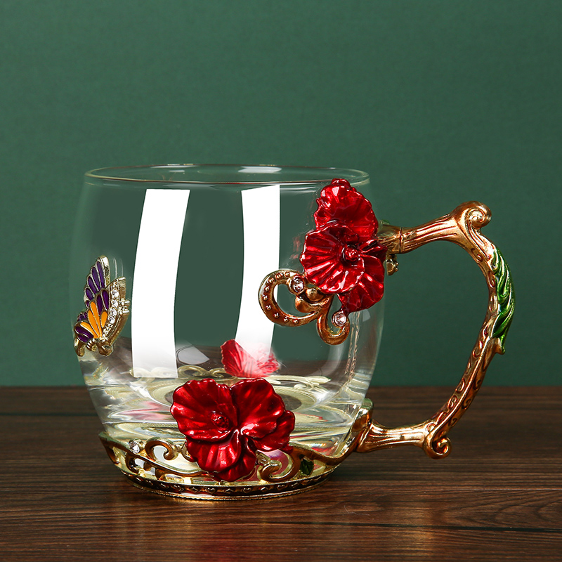 Эмалированная чашка для воды, бытовая стеклянная кофейная чашка, милая женская летняя чашка для чая с цветком, чашка для завтрака, чашка для чая с крышкой, набор