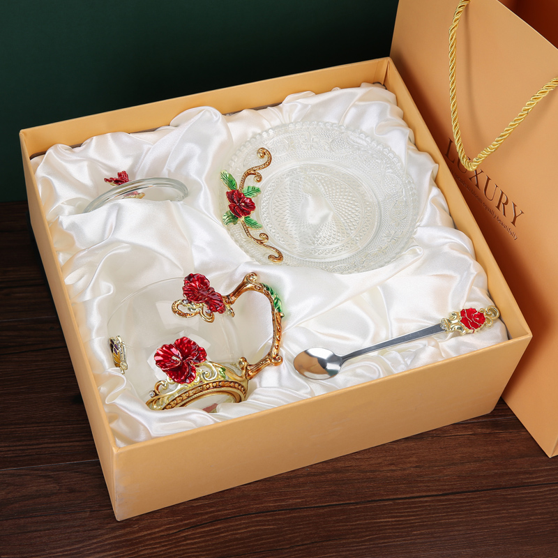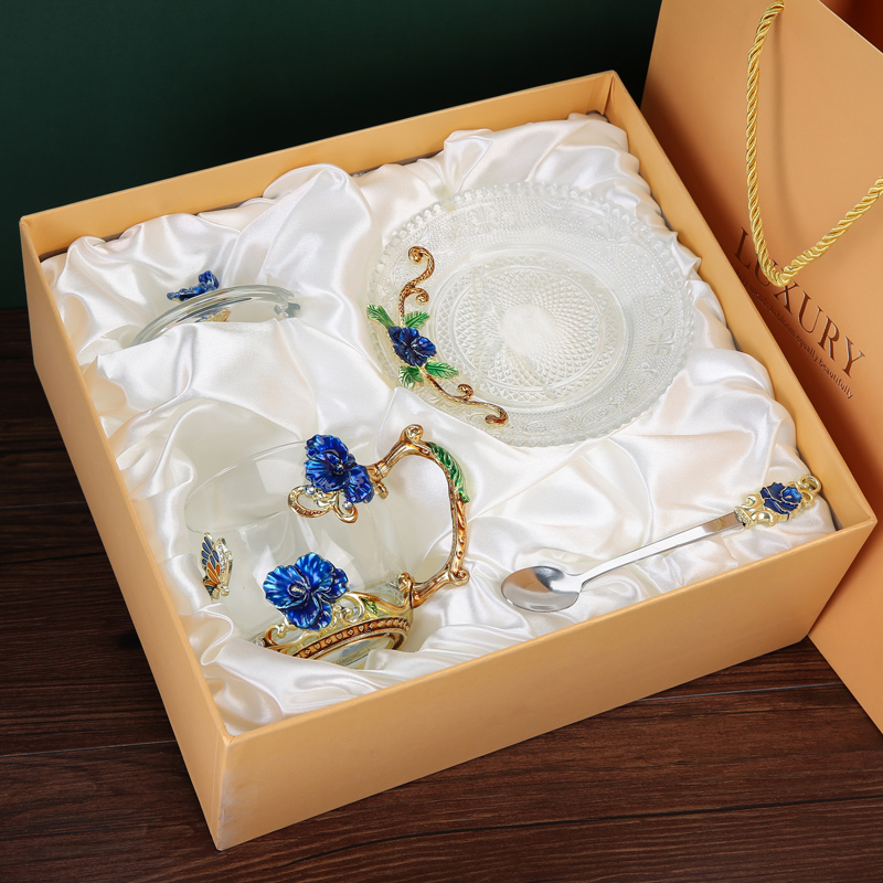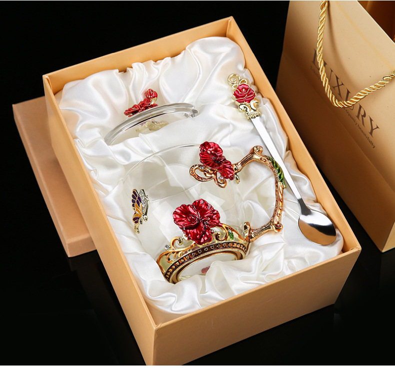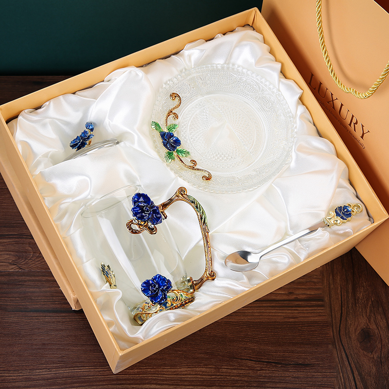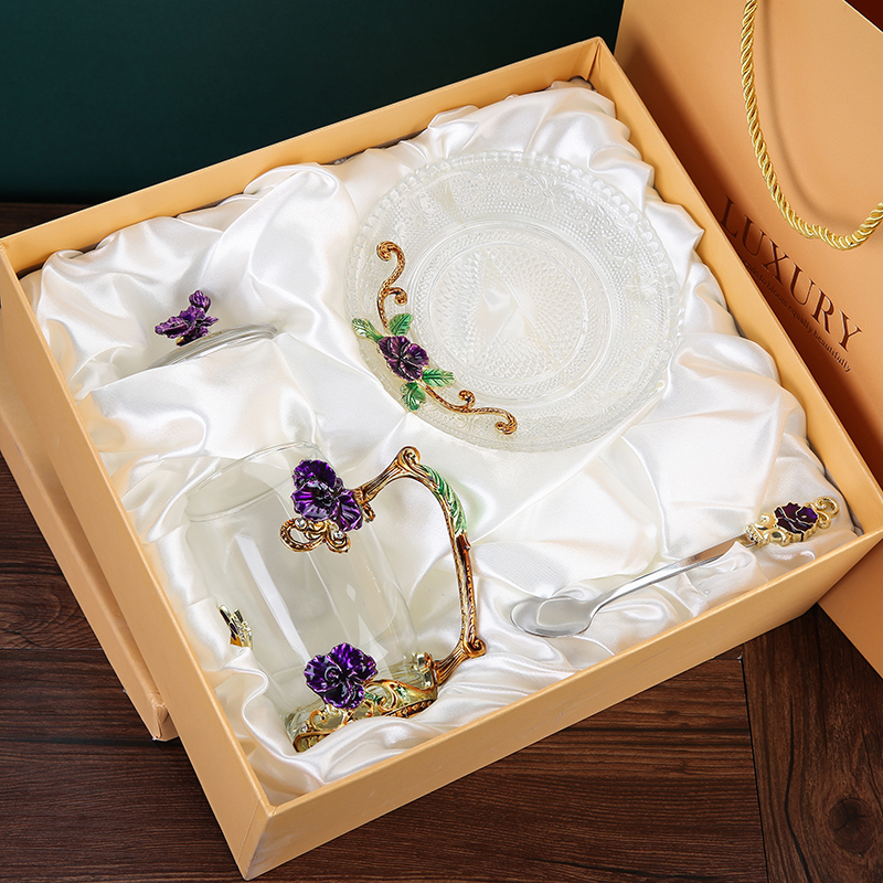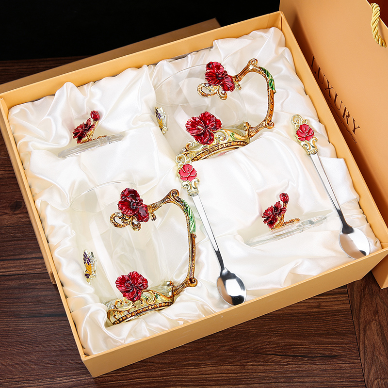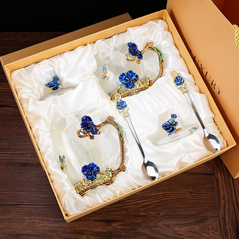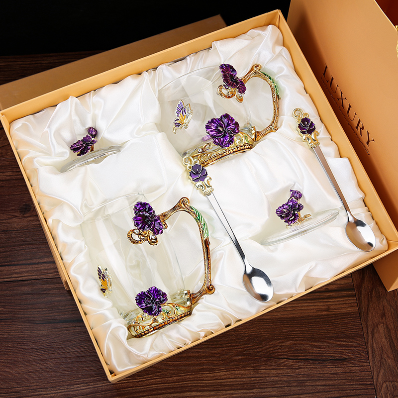 Эмалированная чашка для воды, бытовая стеклянная кофейная чашка, милая женская летняя чашка для чая с цветком, чашка для завтрака, чашка для чая с крышкой, набор