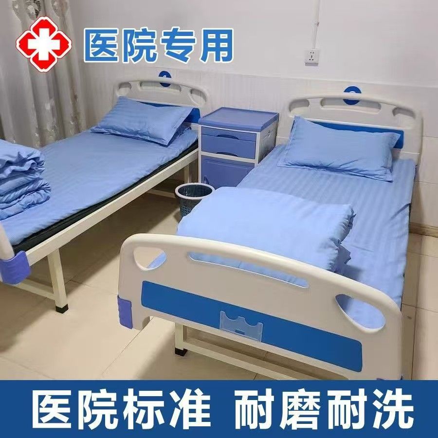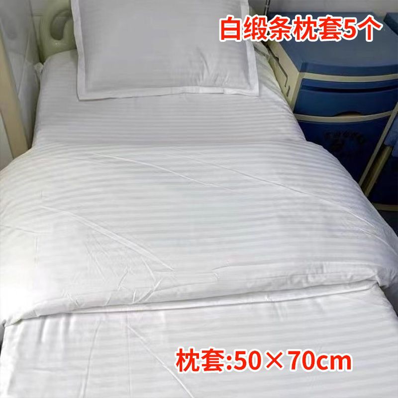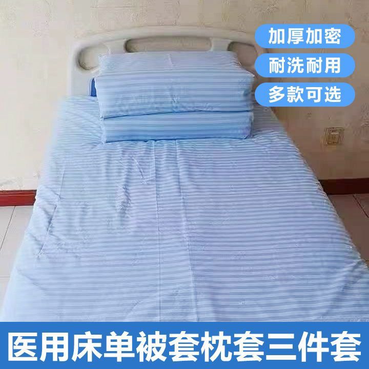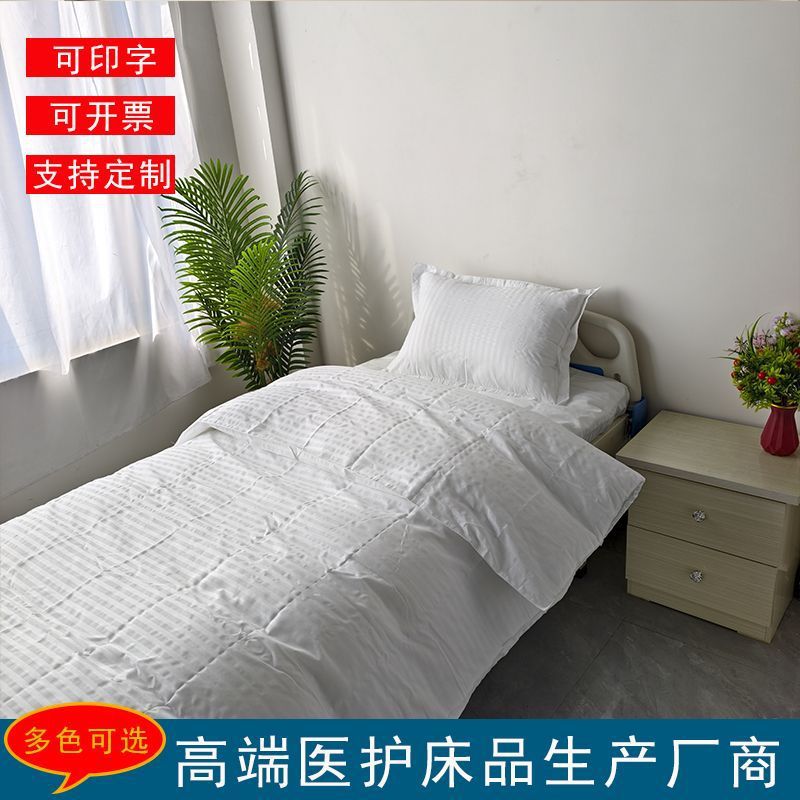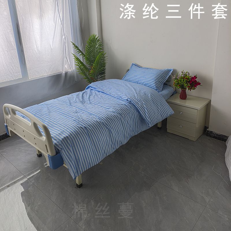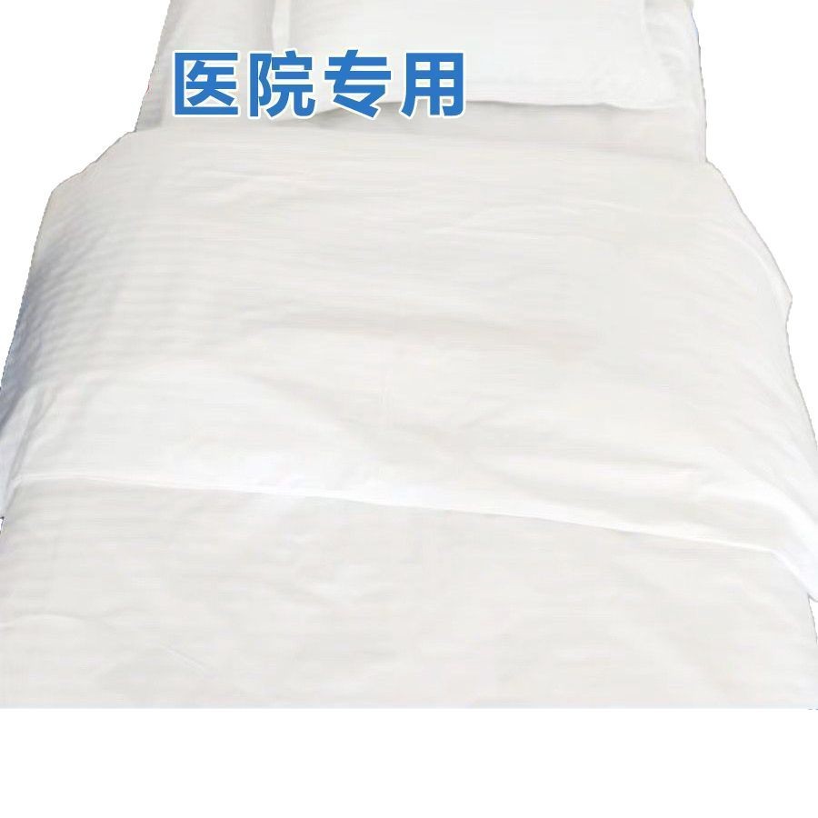 Белый клинический полиэстеровый комплект постельного белья из трех предметов для домов престарелых, больничных кроватей, зашифрованный и утолщенный для медицинского использования.