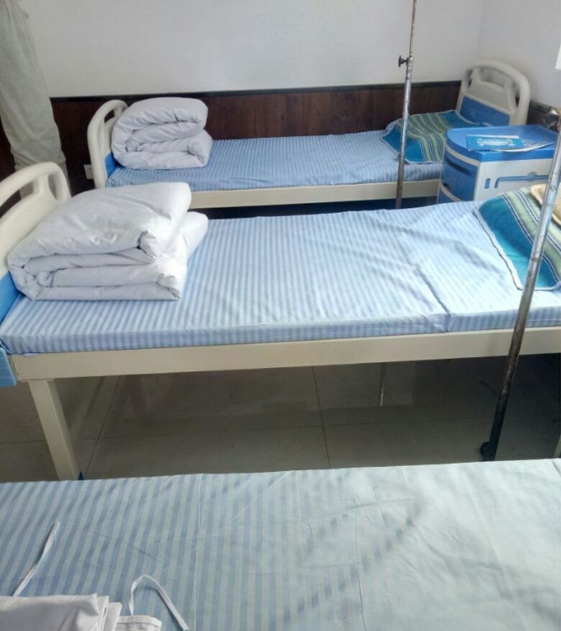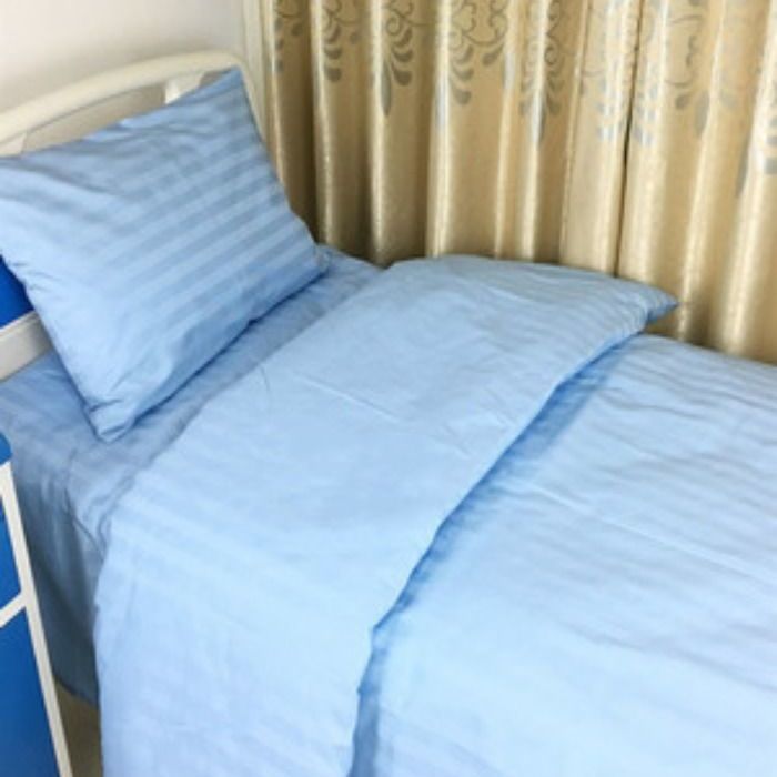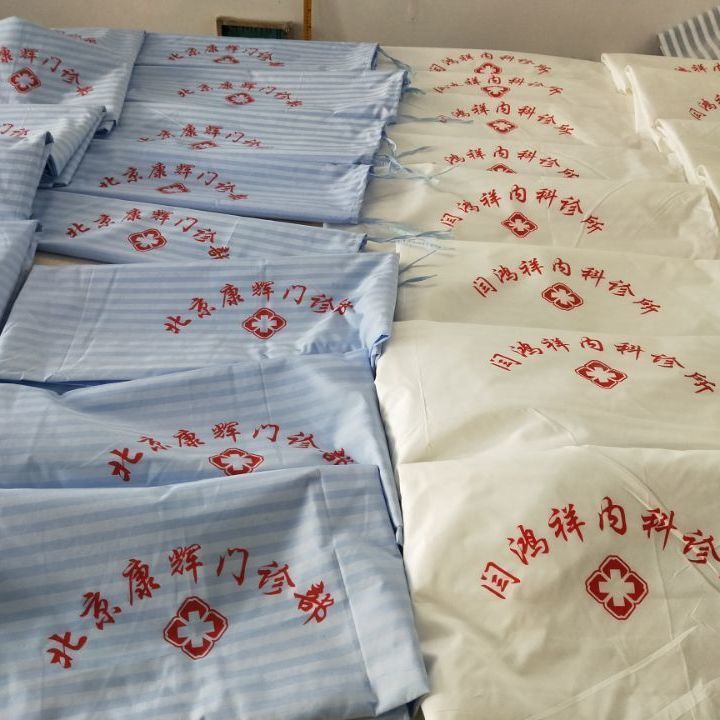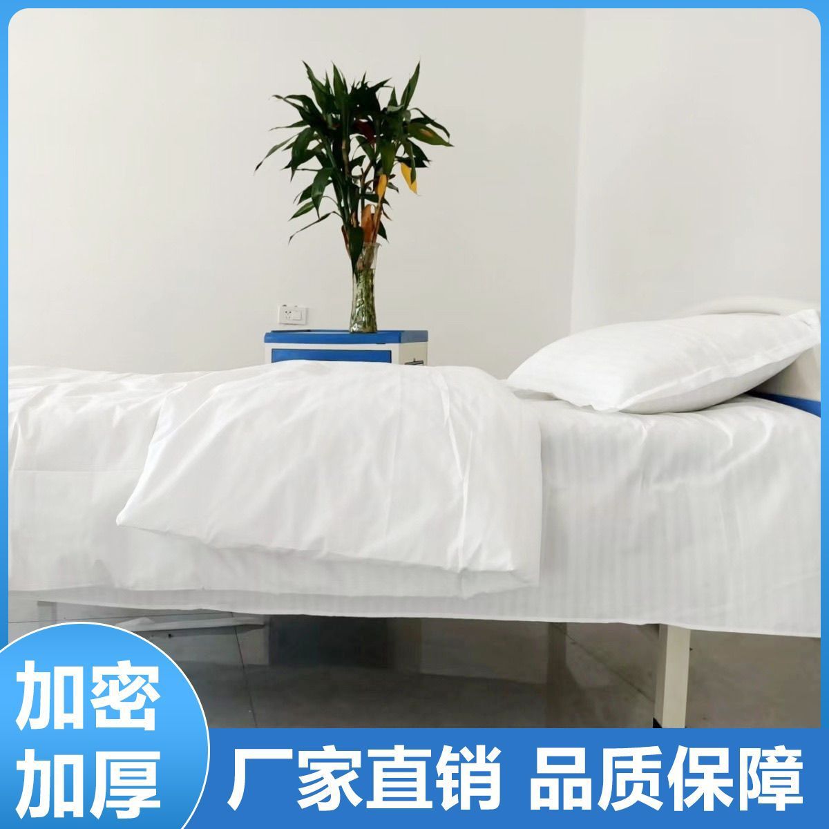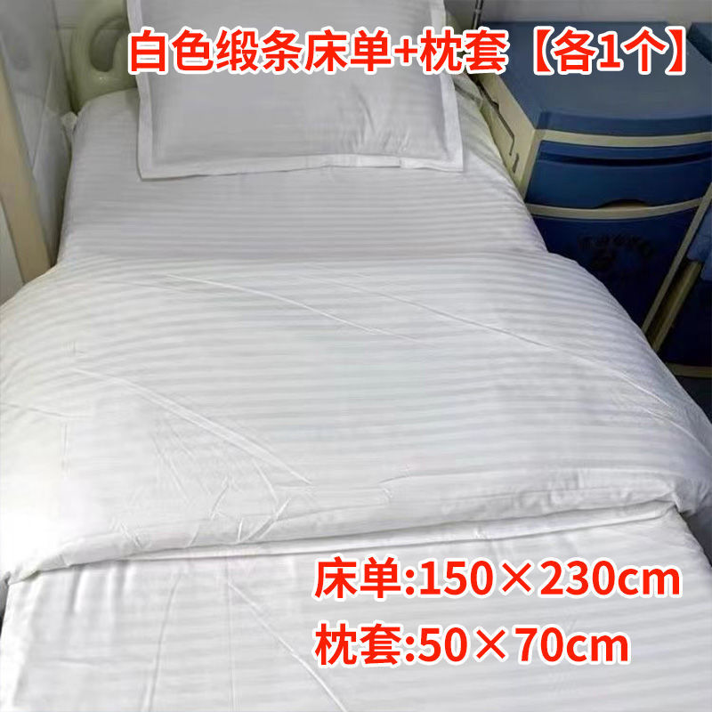 Белый клинический полиэстеровый комплект постельного белья из трех предметов для домов престарелых, больничных кроватей, зашифрованный и утолщенный для медицинского использования.