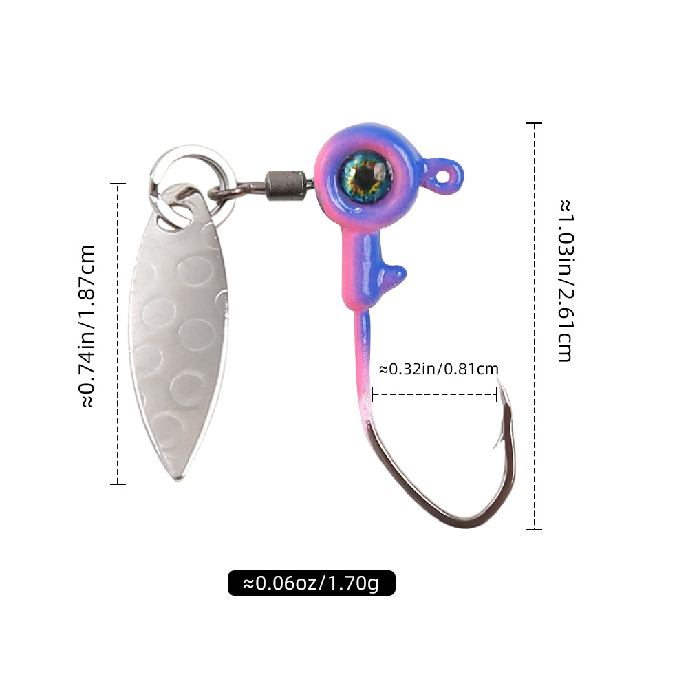 Двухцветный одноглазый крючок с орлиным клювом Luya и вращающейся блесткой, 1,7 г, противоскользящий крючок для микрорыбы с нижней частью для рыбалки, белые полоски с лошадиным ртом