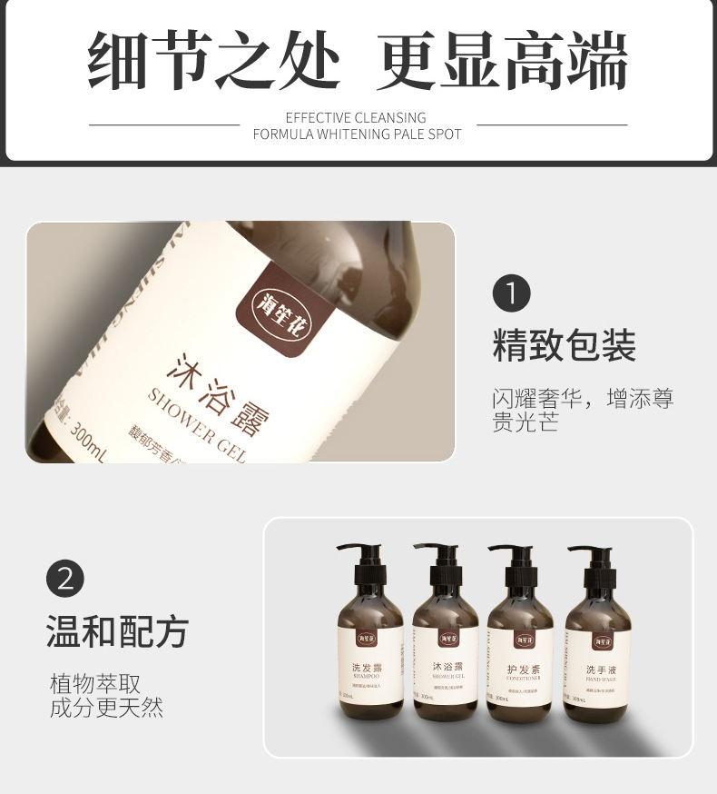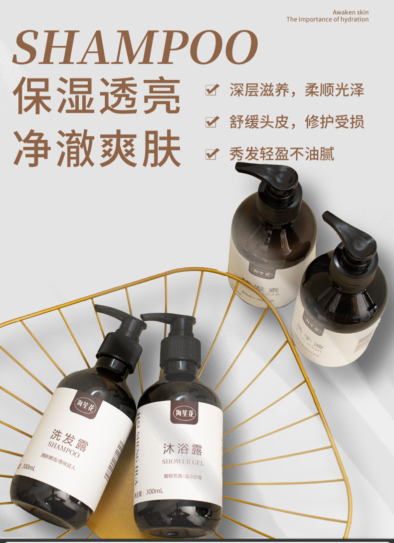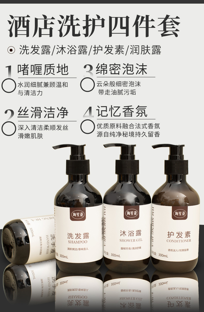 Шампунь и гель для душа для отелей, специальный бытовой шампунь для ванных центров B&B, уход в бутылках 300 мл, оптовая продажа