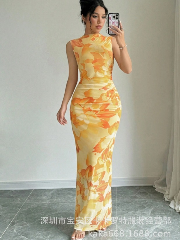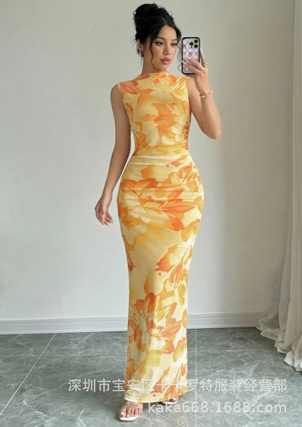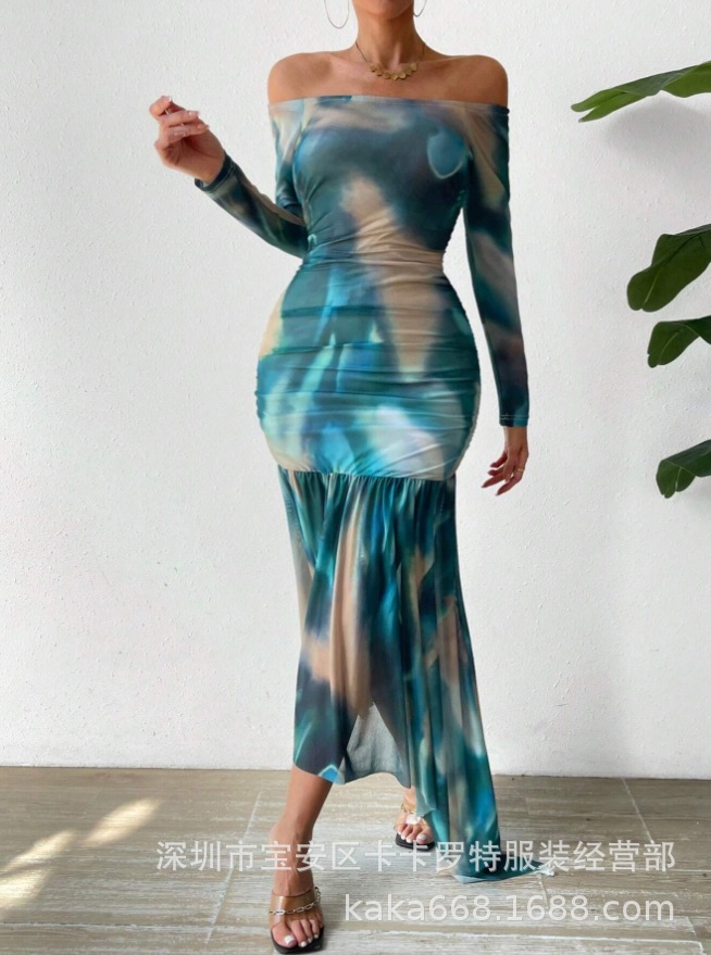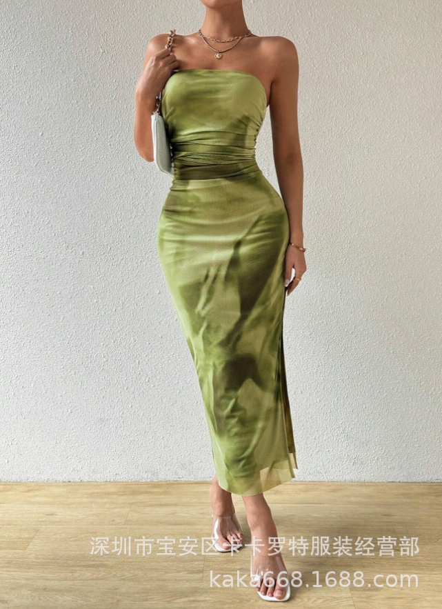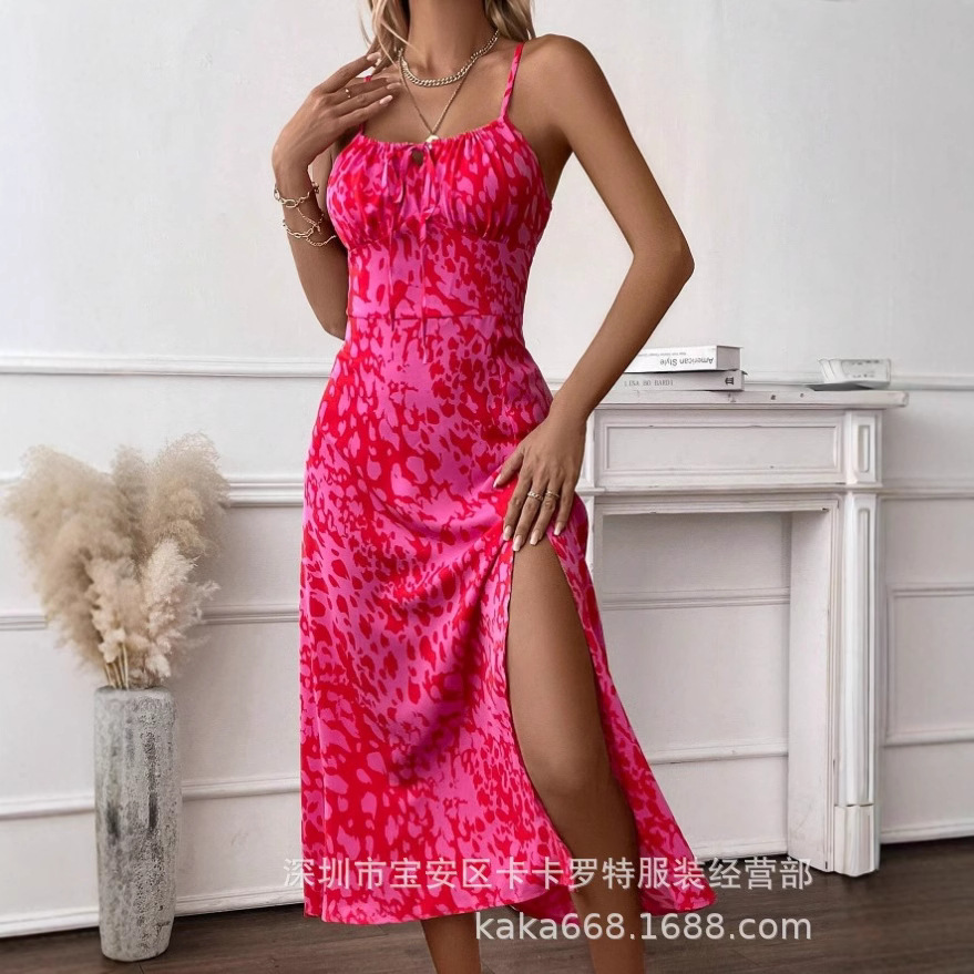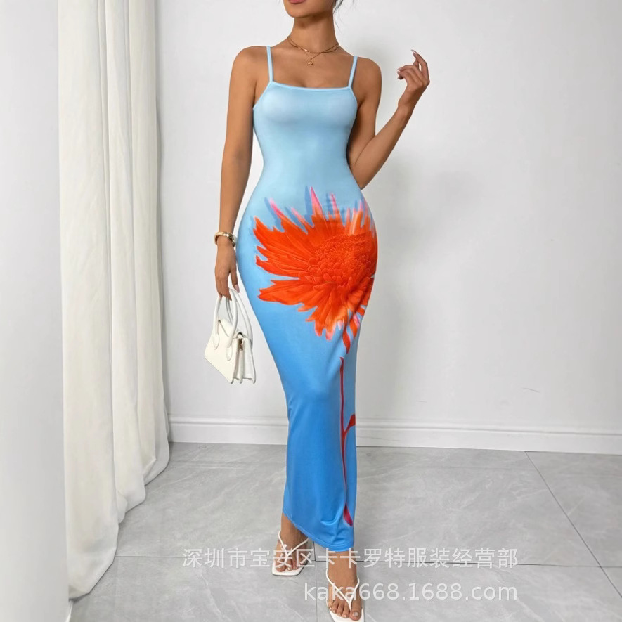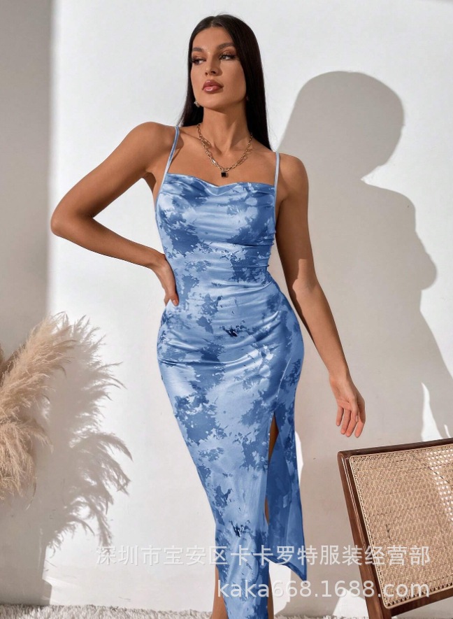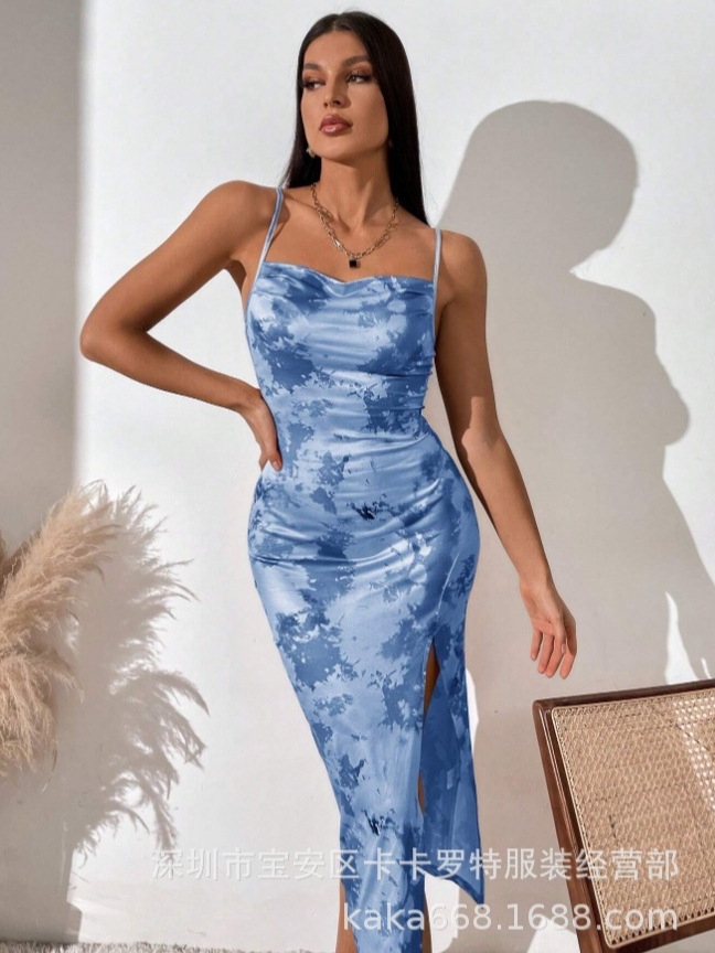 Длинное сексуальное женское платье Amazon, жилет с принтом тай-дай, юбка на подтяжках, платье, экспортное трансграничное платье