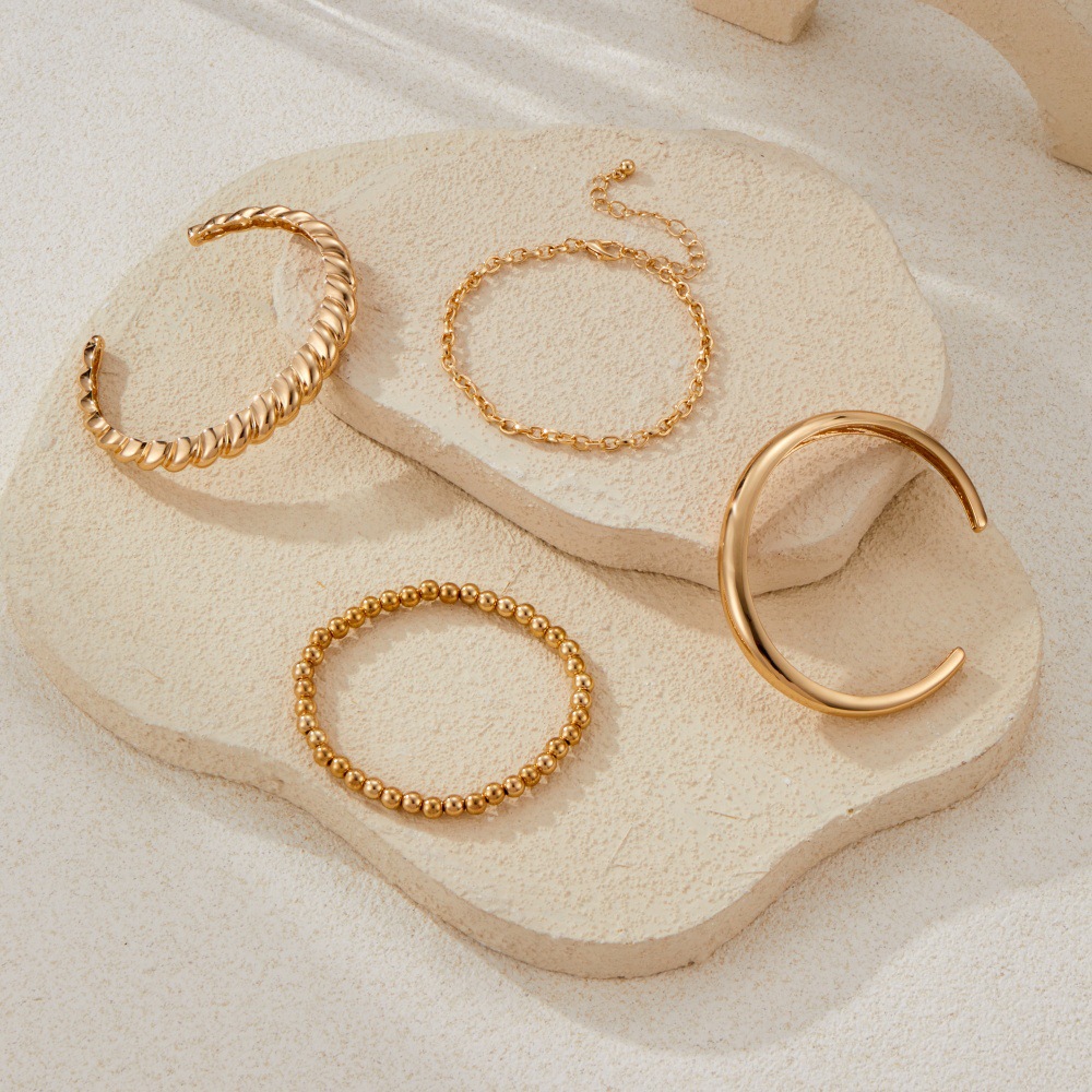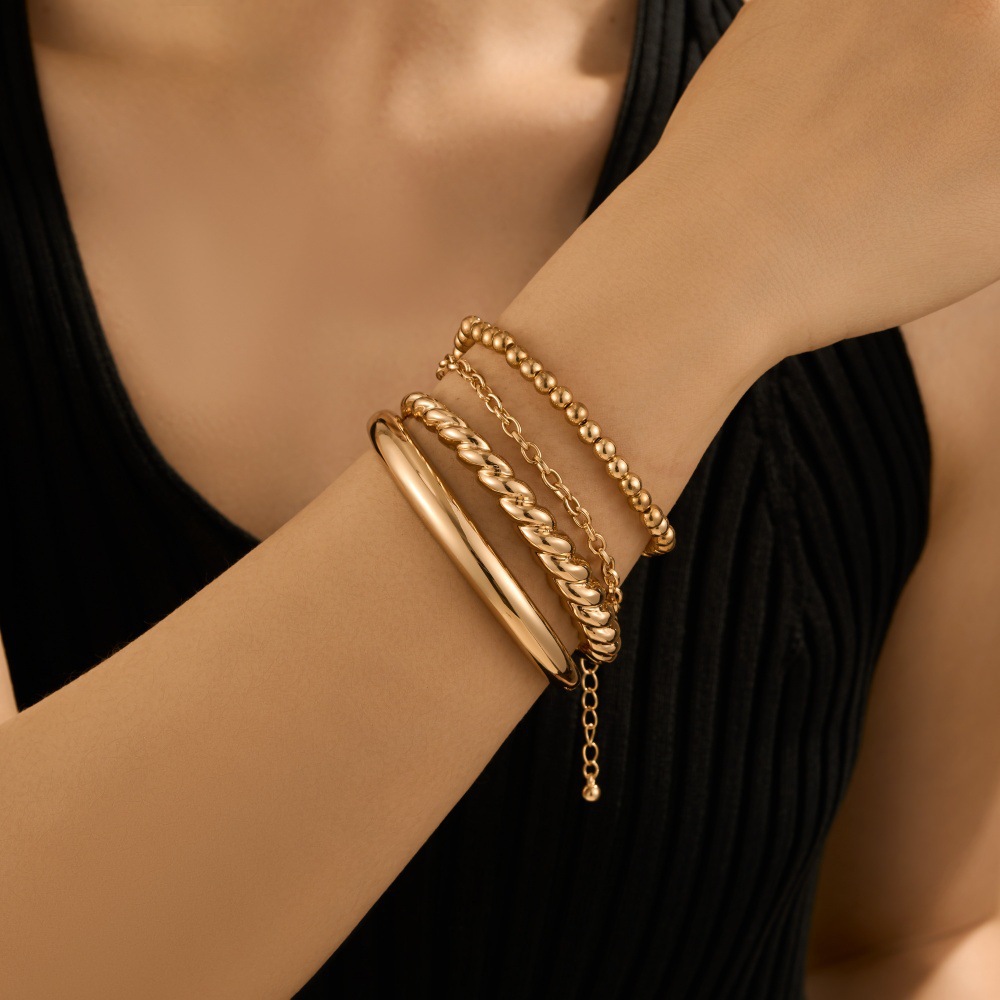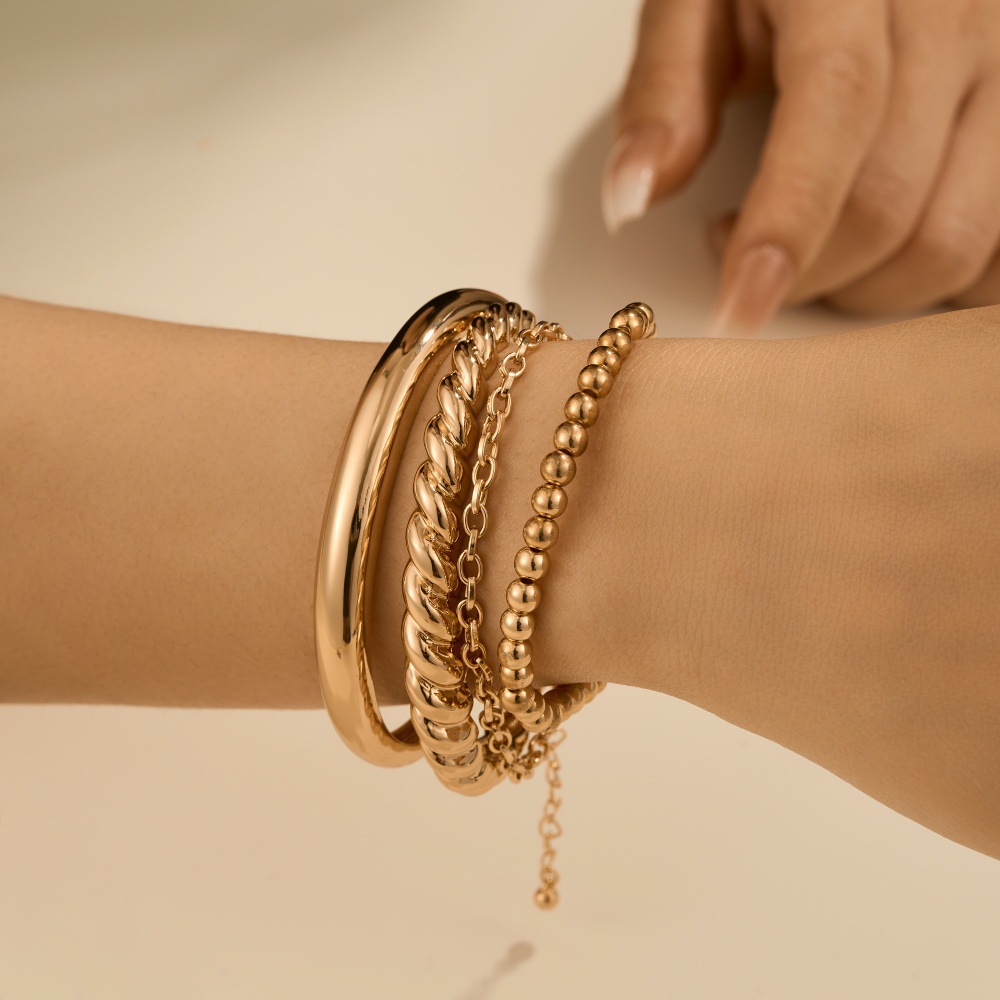 Европейские и американские трансграничные новые ювелирные изделия, 4 модных золотых браслета, набор круглых браслетов из бисера, браслет, набор из 4 предметов, прямая продажа с фабрики