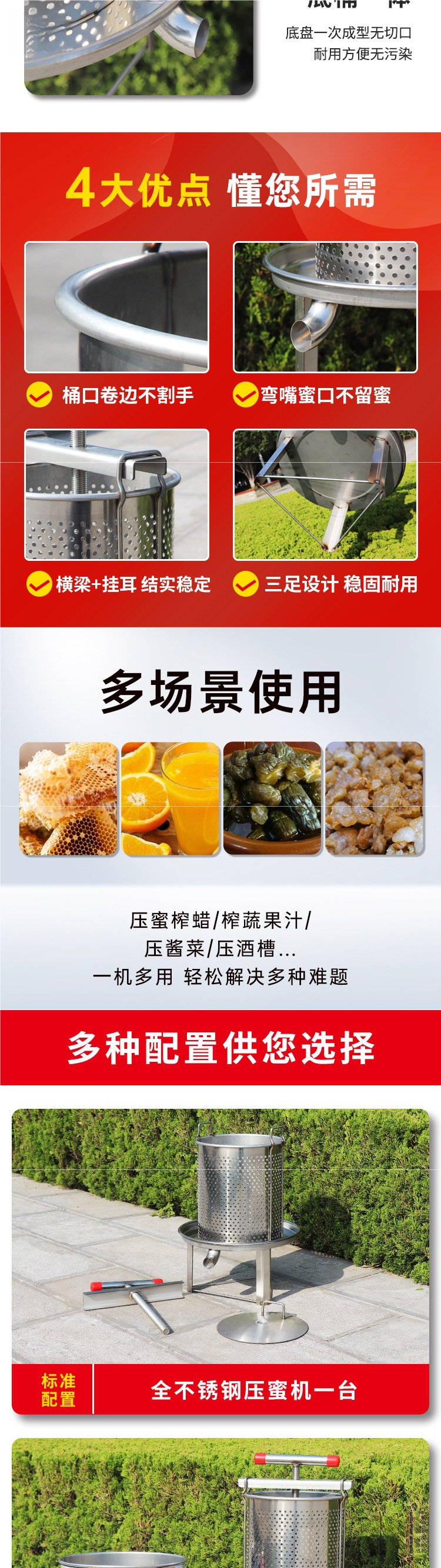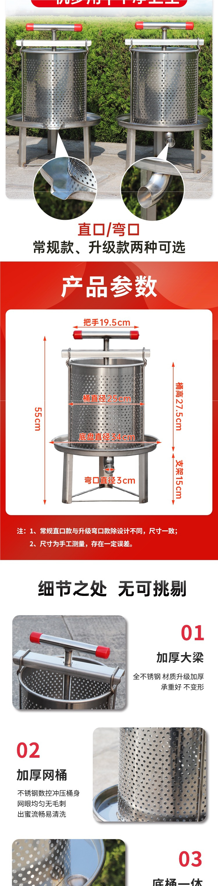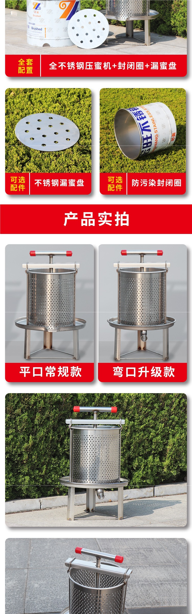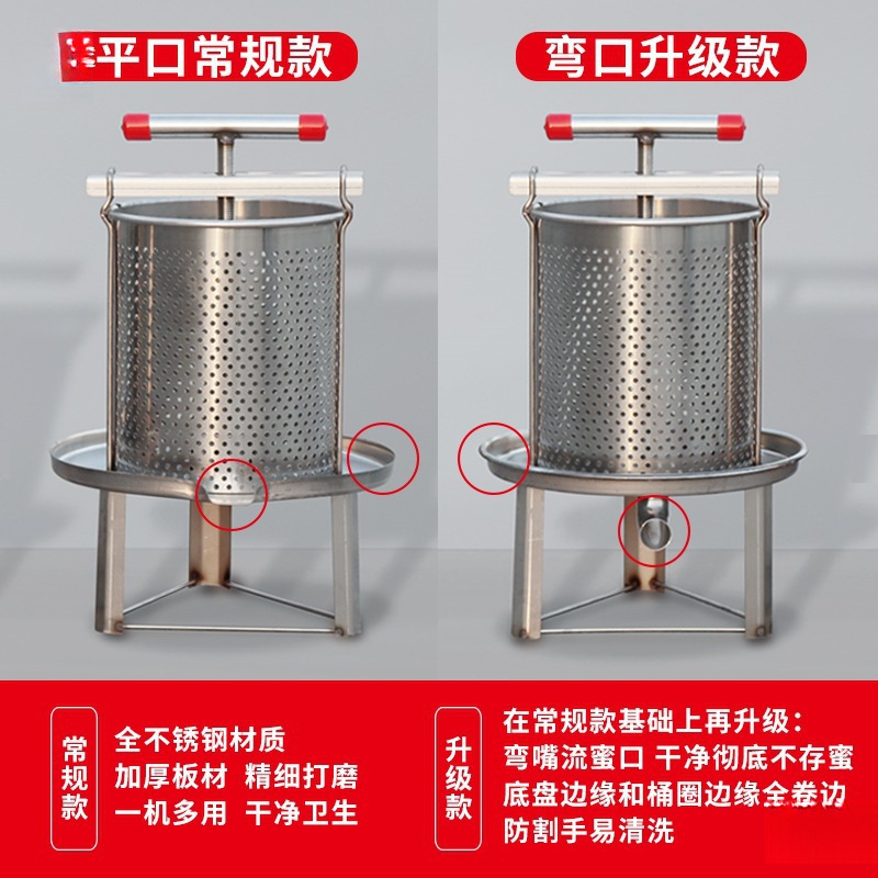 [Обычная модель] Пресс для меда с плоским горлом [поставляется с фильтром]; [Обычный стиль] Полный набор прессов для меда с плоским горлом [Бесплатно]; [Модернизированная модель] Пресс для меда с изогнутым горлом [Бесплатный фильтр]; [Модернизированная модель] Полный набор пресса для меда с изогнутым горлом [Бесплатно]; [Аксессуары] Поддон для сбора утечки меда из нержавеющей стали.; [Аксессуары] Одно уплотнительное кольцо из нержавеющей стали.