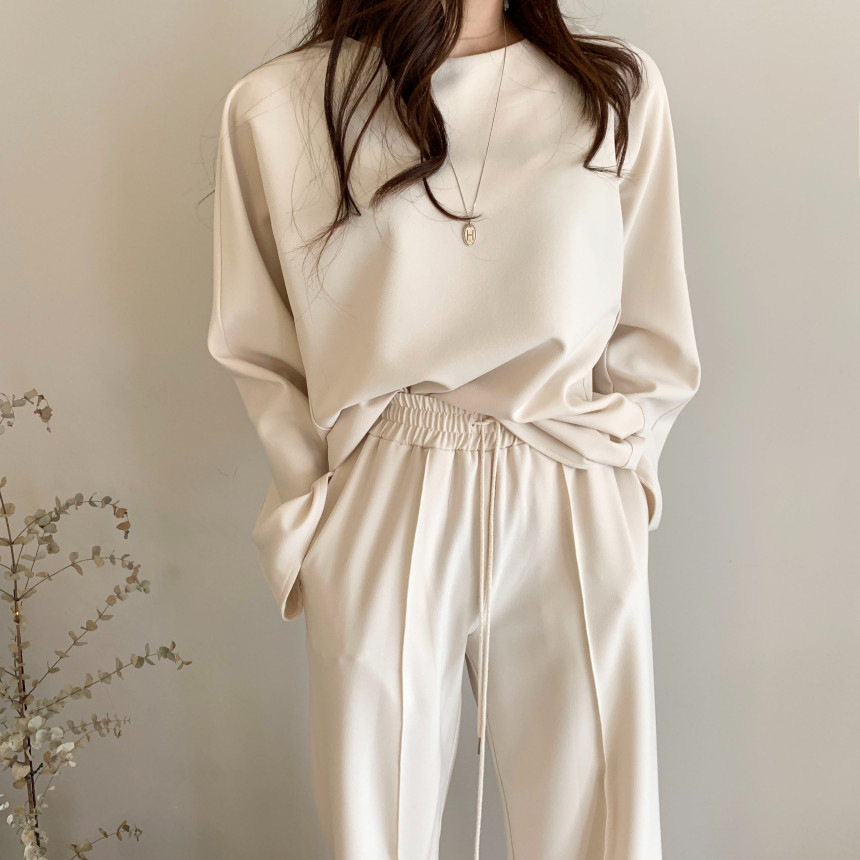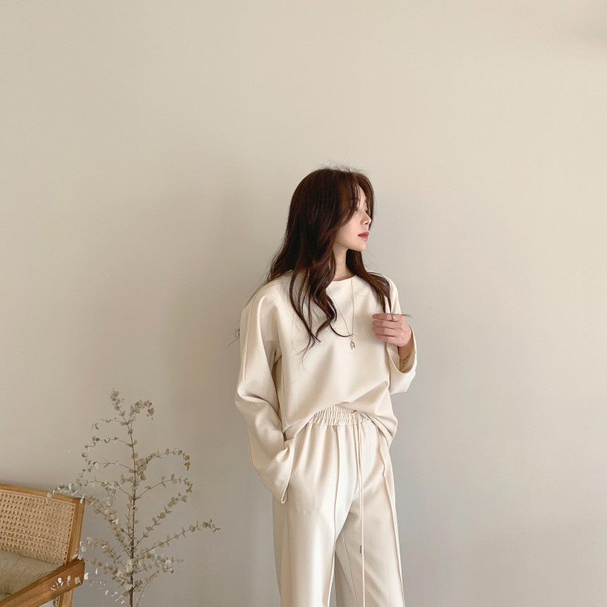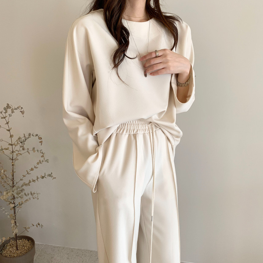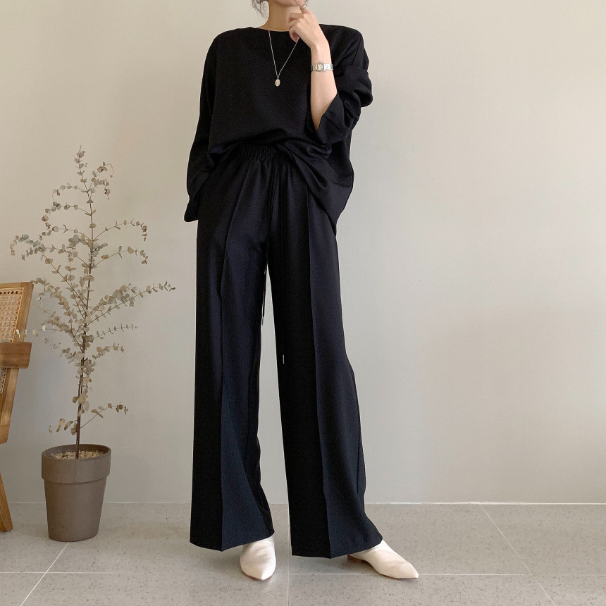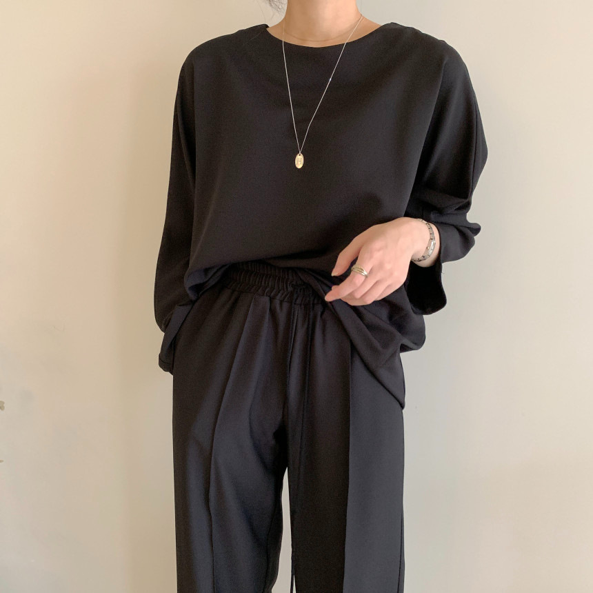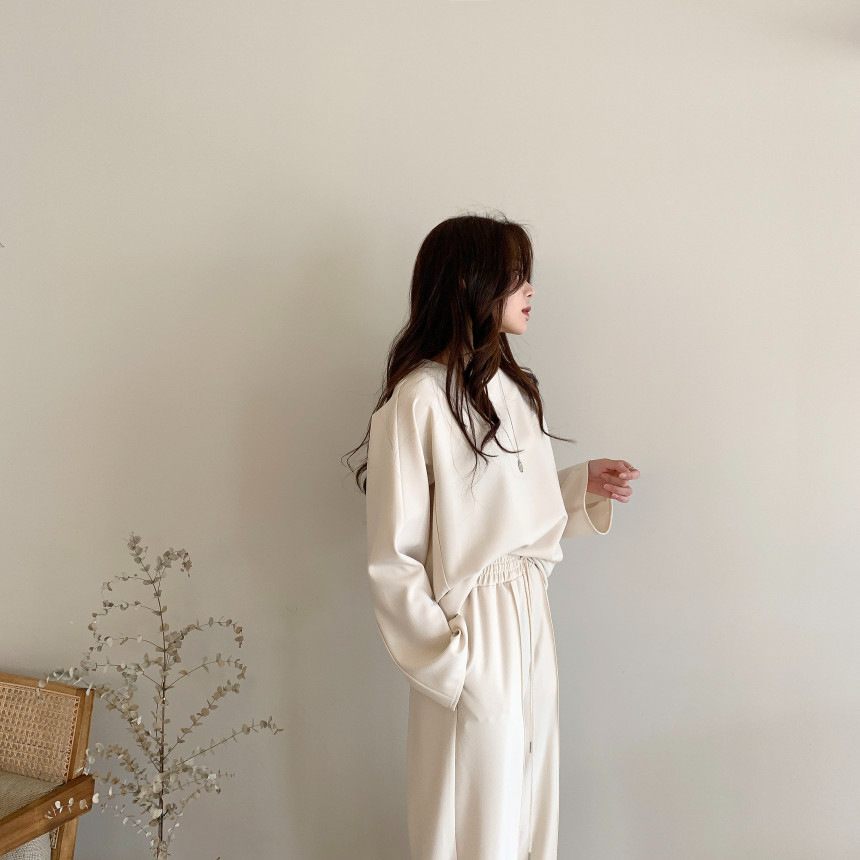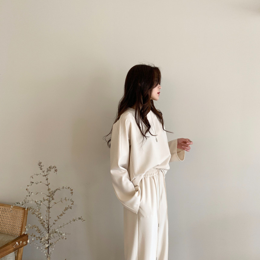 Корейский шикарный осенний простой элегантный свободный универсальный свитшот с длинными рукавами + повседневные брюки с эластичной завязкой на талии для женщин
