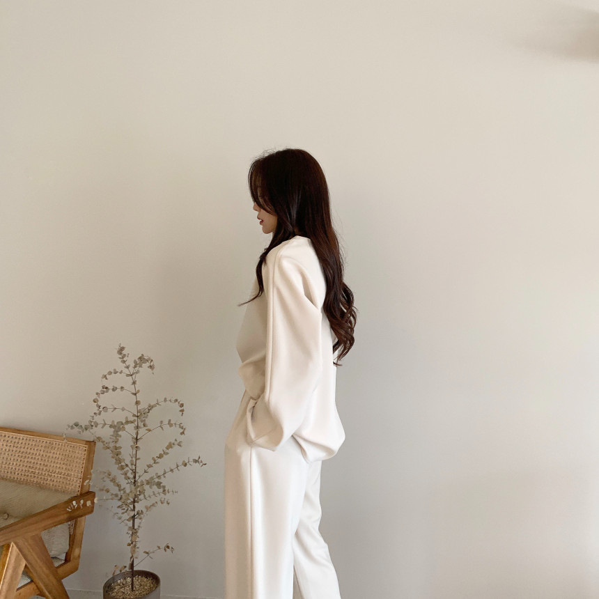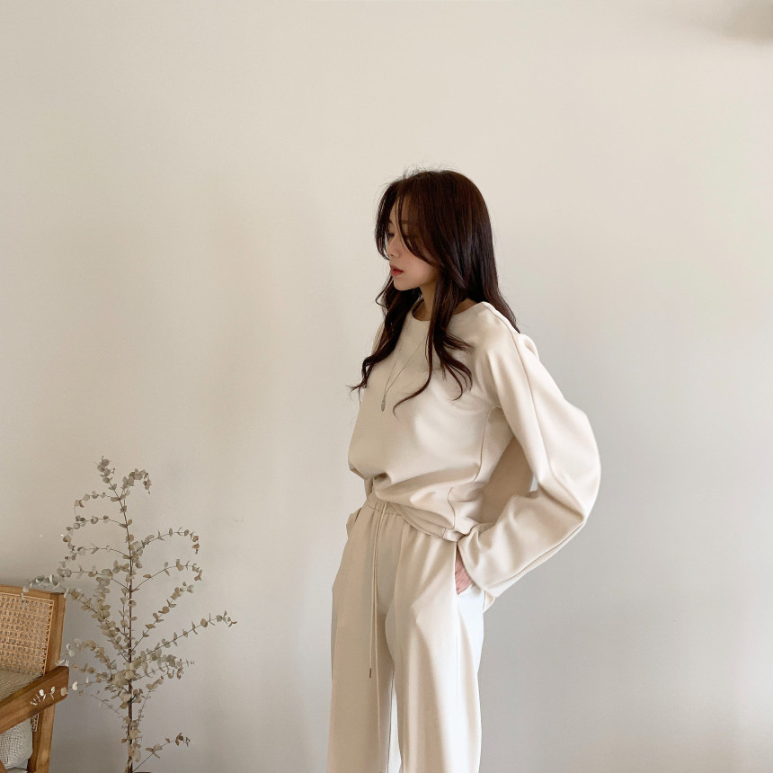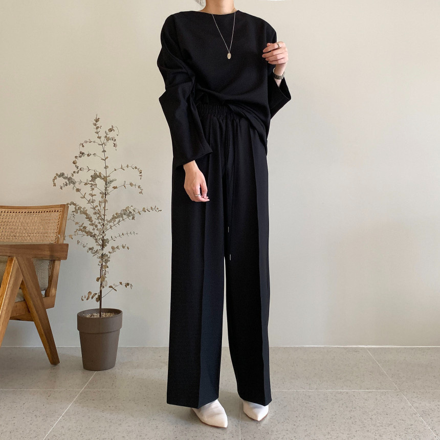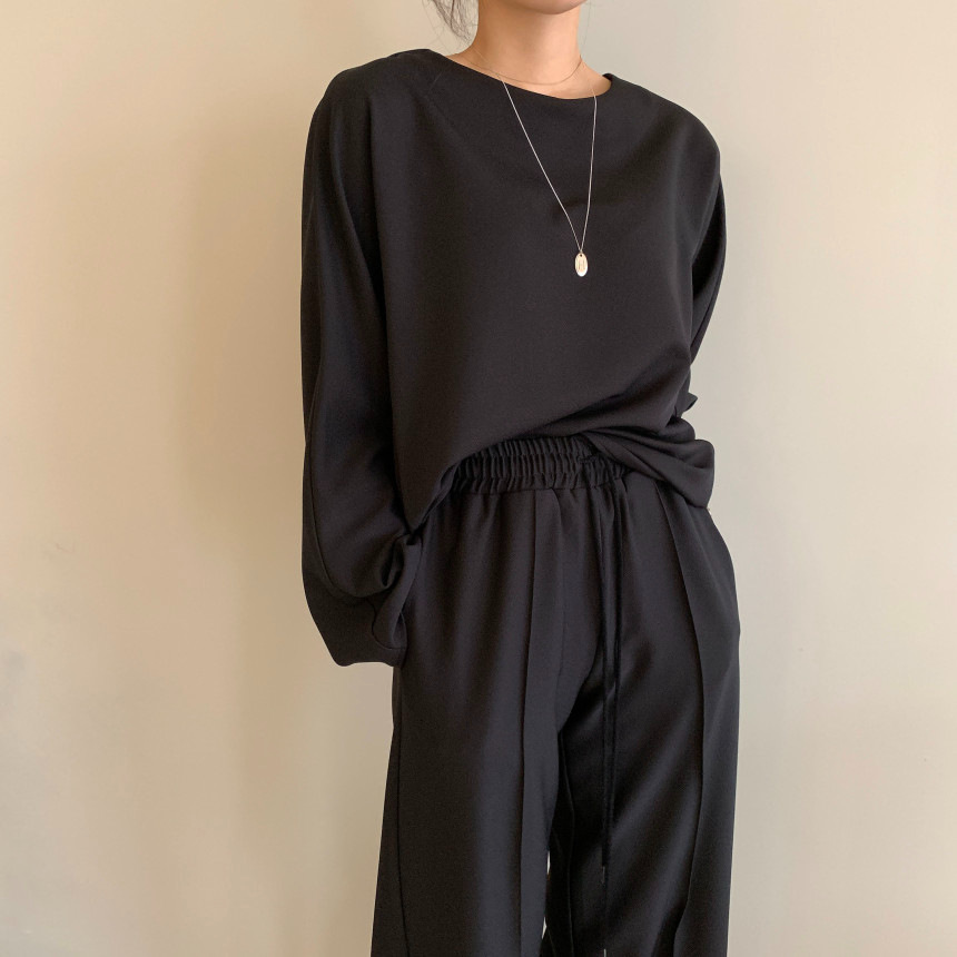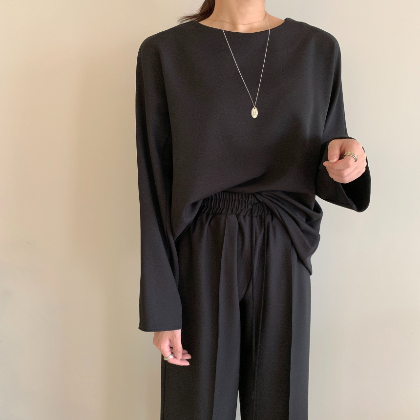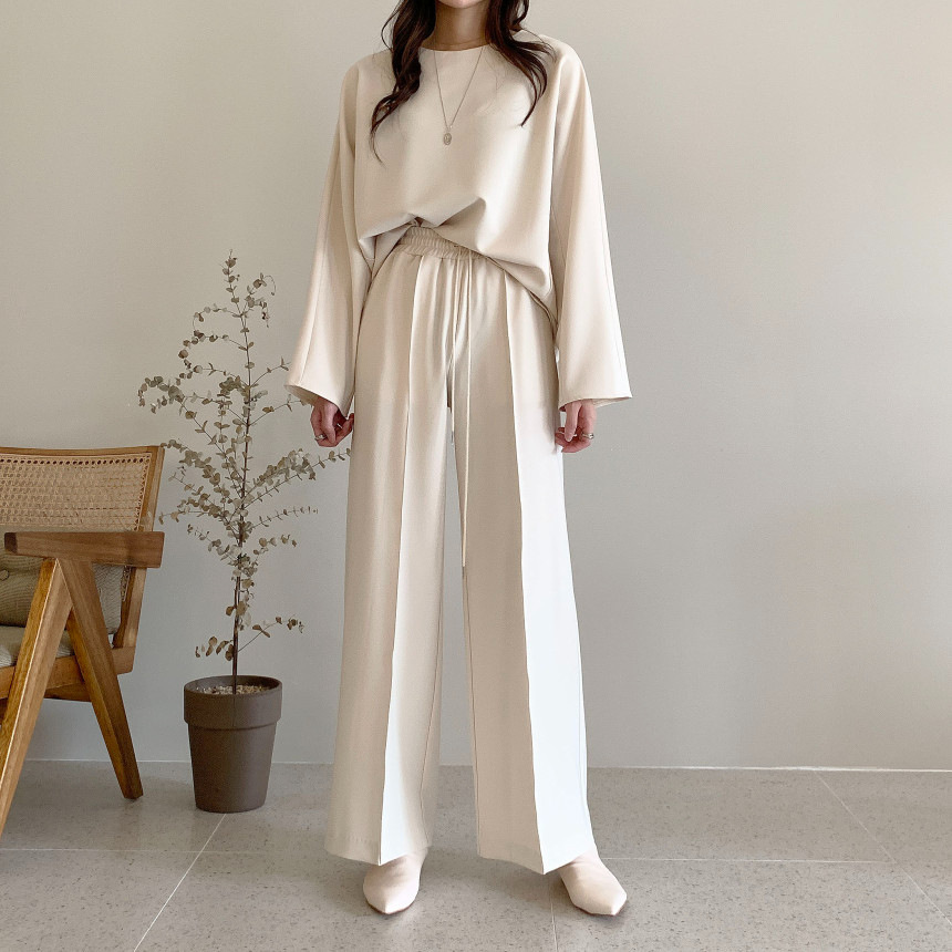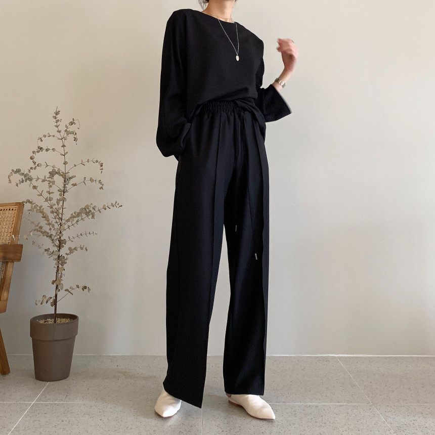 Корейский шикарный осенний простой элегантный свободный универсальный свитшот с длинными рукавами + повседневные брюки с эластичной завязкой на талии для женщин