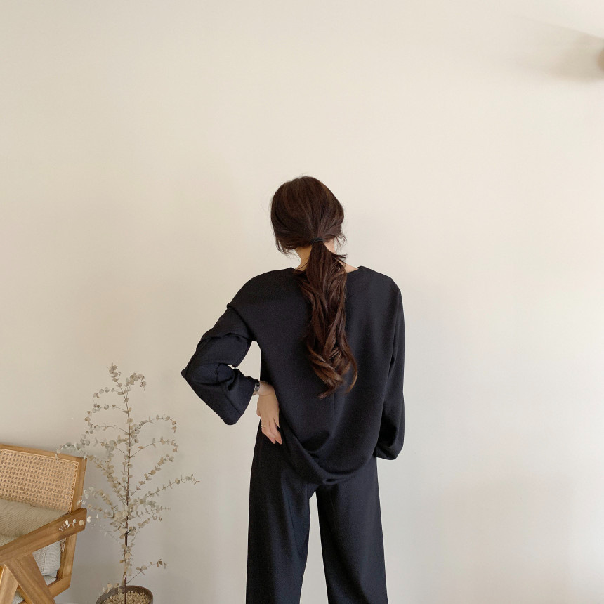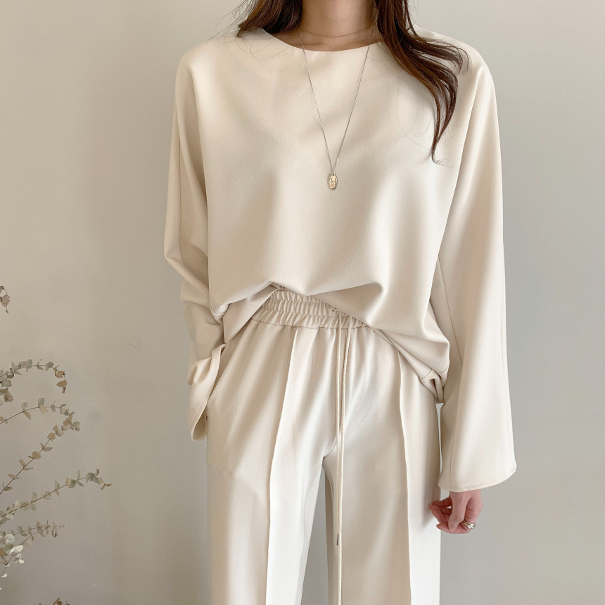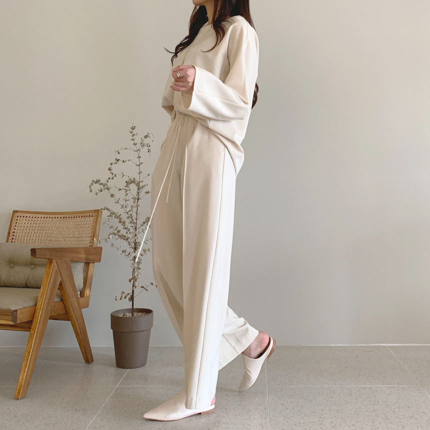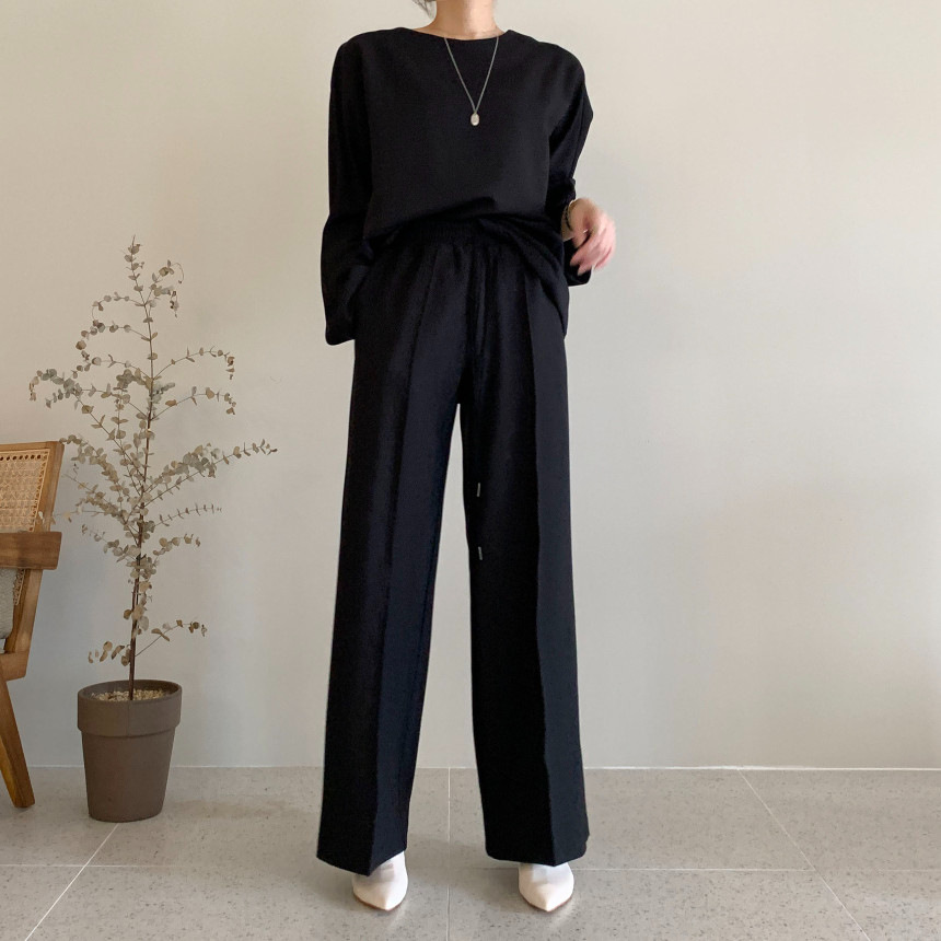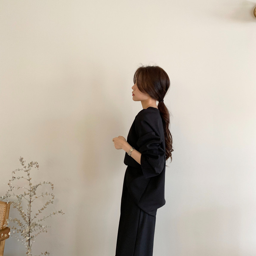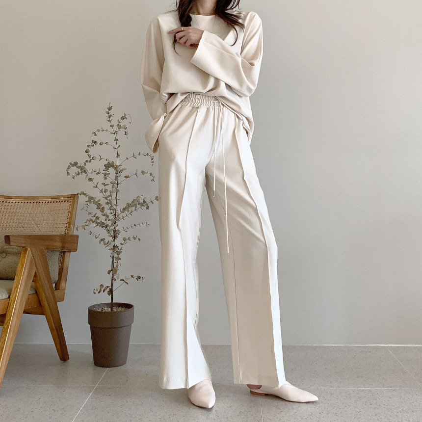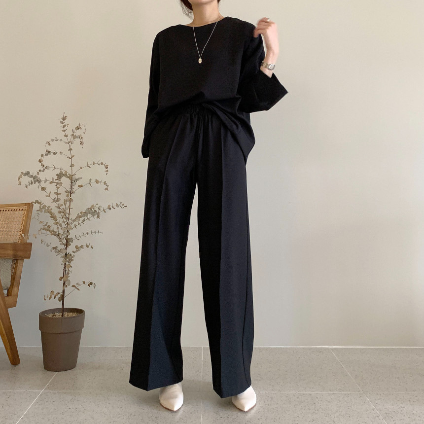 Корейский шикарный осенний простой элегантный свободный универсальный свитшот с длинными рукавами + повседневные брюки с эластичной завязкой на талии для женщин