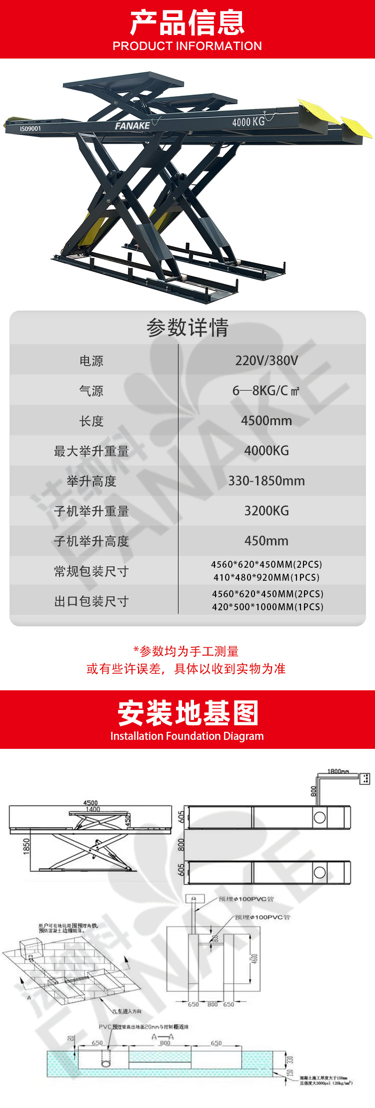 Подземный ножничный подъемник грузоподъемностью 4 тонны, подземный ножничный подъемник, завод по производству 3D-станков для регулировки развал-схождения на четыре колеса